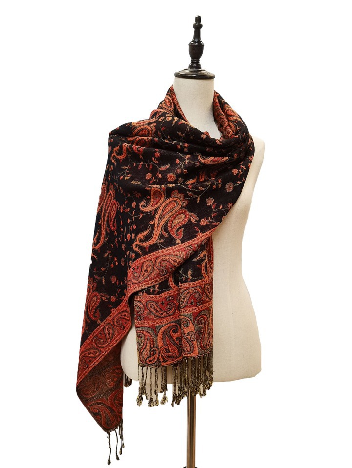 민족 스타일 스카프 에어컨 대형 목도리 스카프 자카드 술 봄과 여름 긴 스카프 여성의 양면 파시미나
