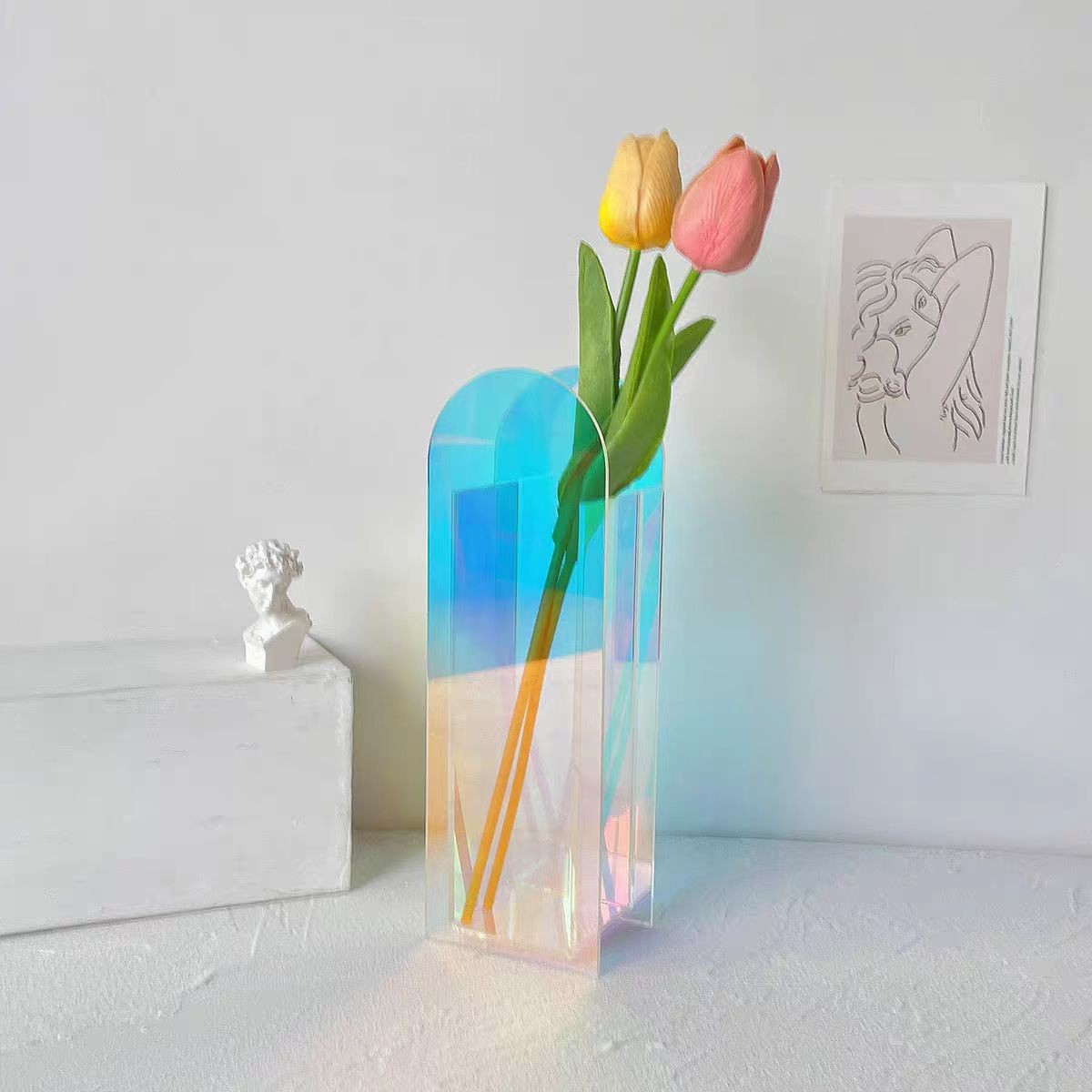 인스 스타일 아크릴 거울 꽃병 수경재배 꽃꽂이 장식품 컬러 아크릴 탁상용 꽃병