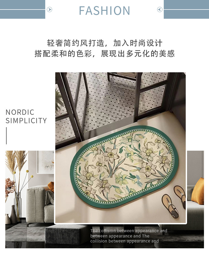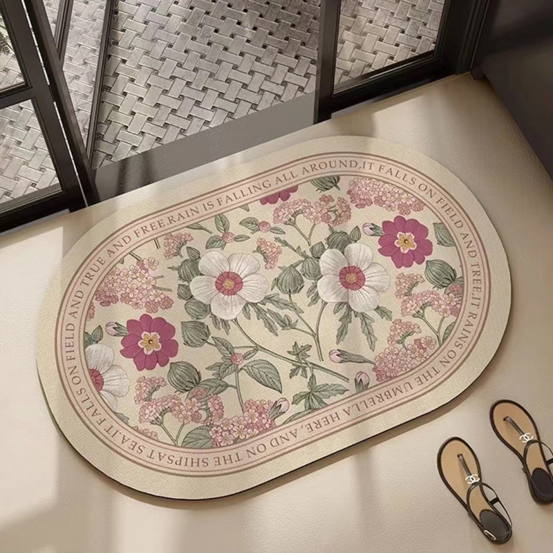 빠른 건조 부드러운 diatom 진흙 바닥 매트 가정용 욕실 문 흡수성 바닥 매트 미국 복고풍 꽃 욕실 미끄럼 방지 매트
