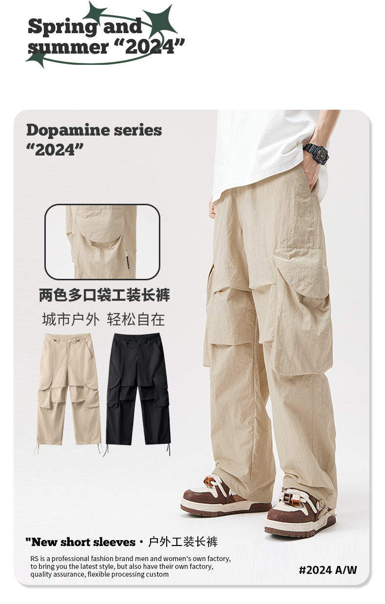 【재고정리】트렌디 브랜드 직조 작업복 바지 방수 바지 와이드 팬츠 남성용 산악 스타일