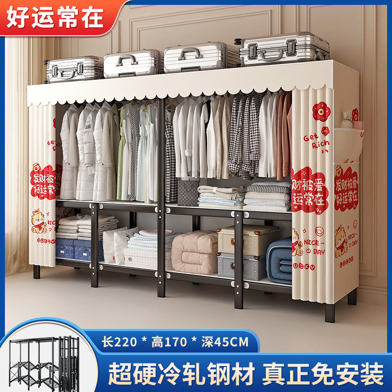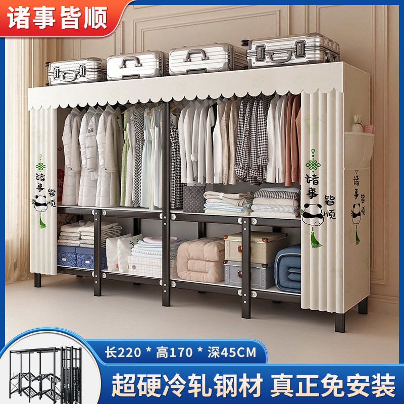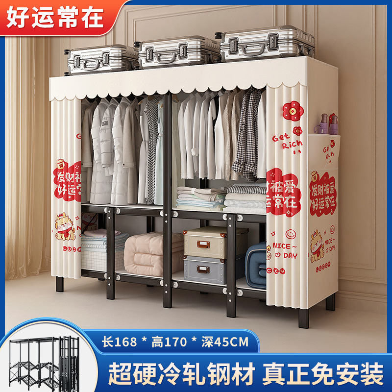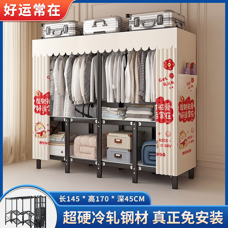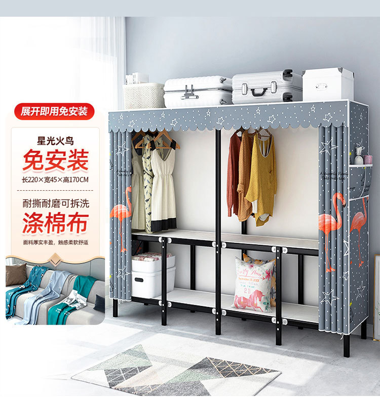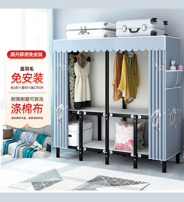 설치가 필요 없는 접이식 옷장, 두꺼운 스틸 프레임 패브릭 옷장, 휴대용 옷장, 옷걸이, 수납장스토어 가기