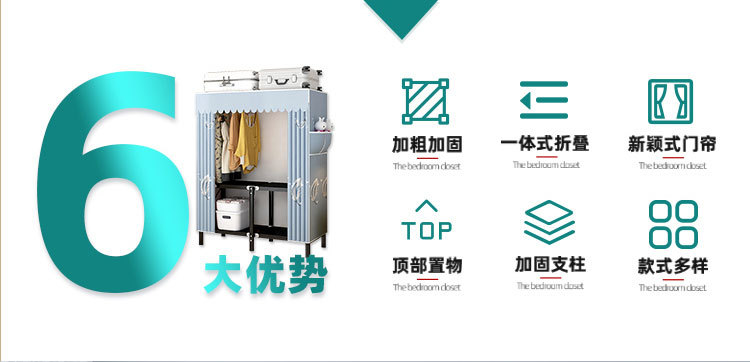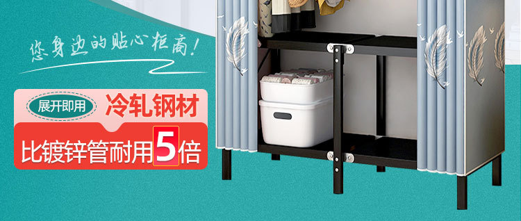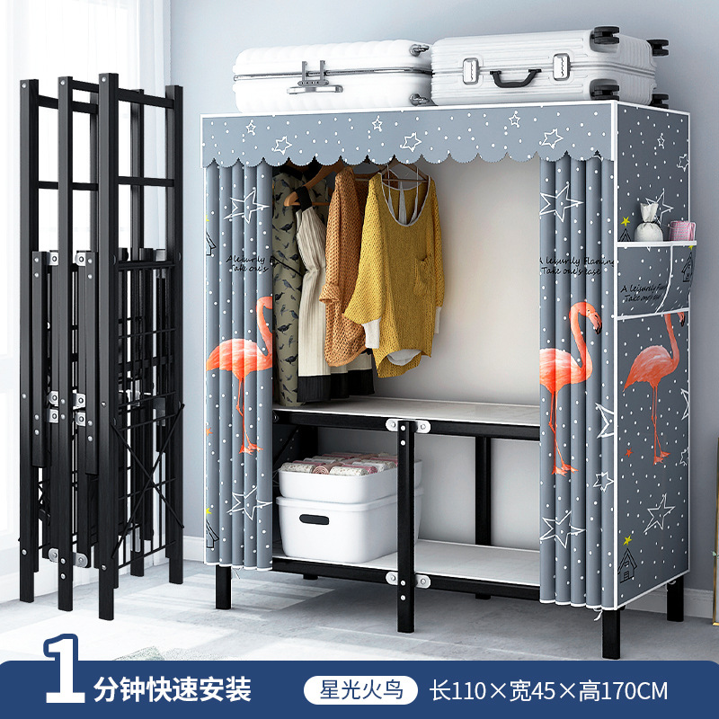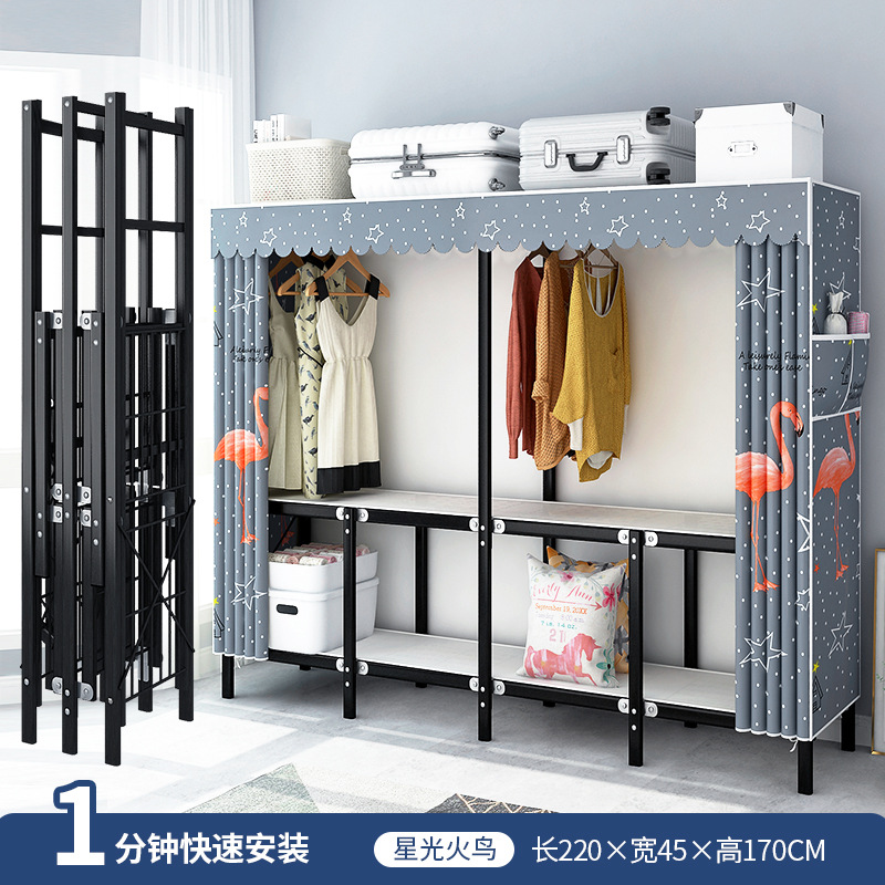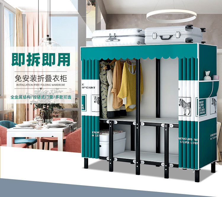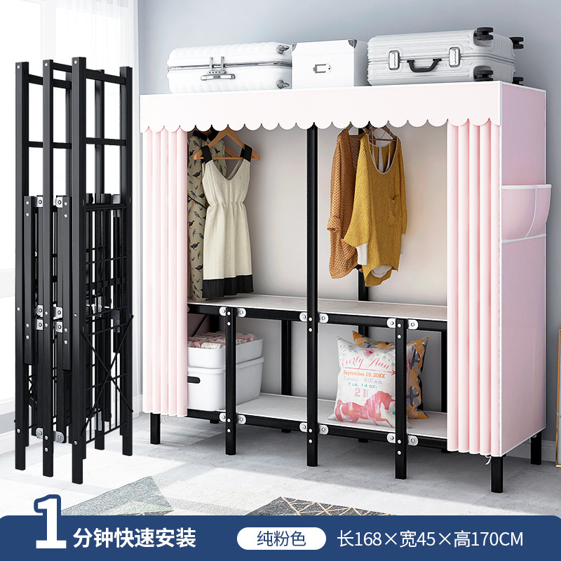 설치가 필요 없는 접이식 옷장, 두꺼운 스틸 프레임 패브릭 옷장, 휴대용 옷장, 옷걸이, 수납장