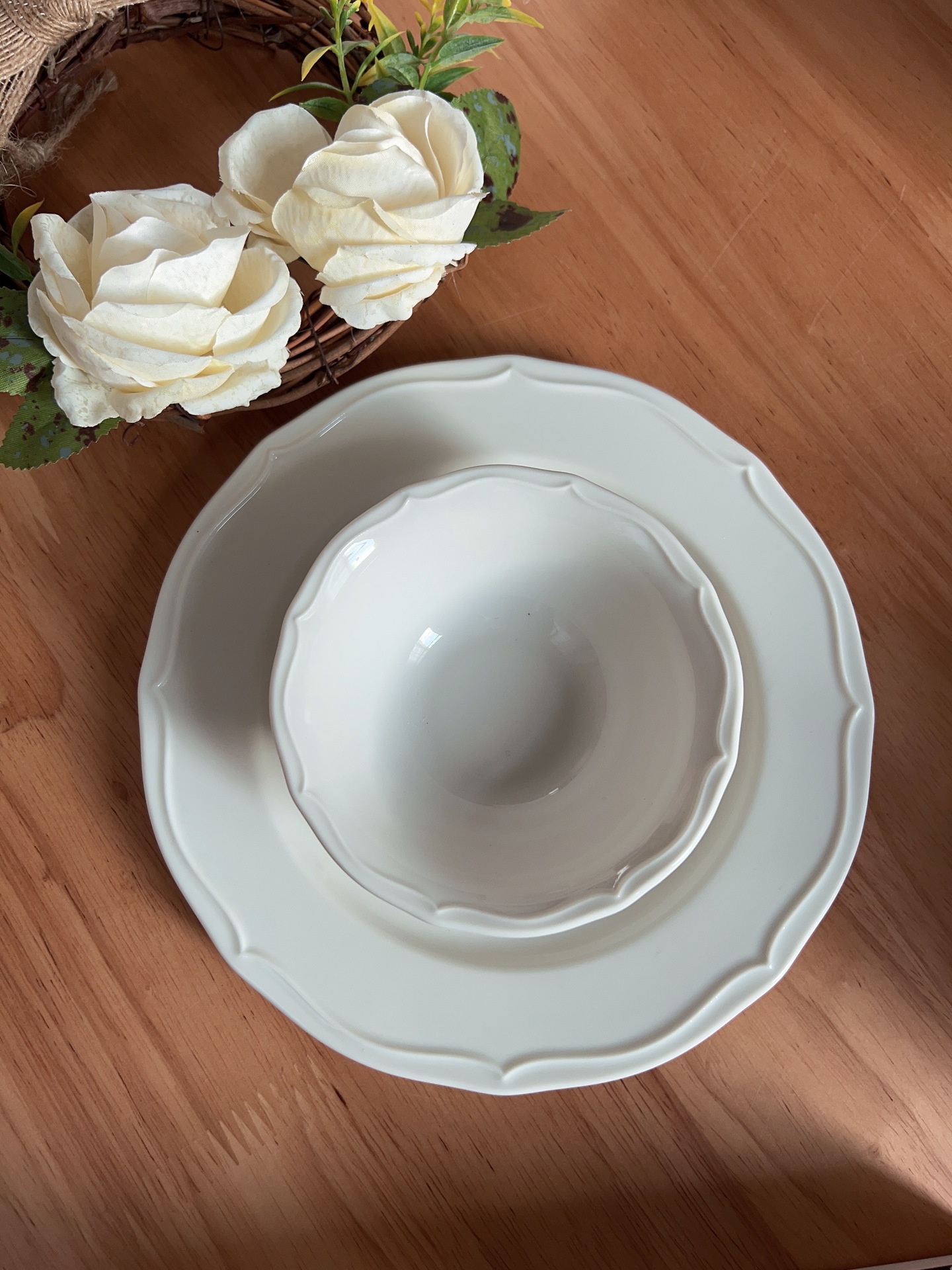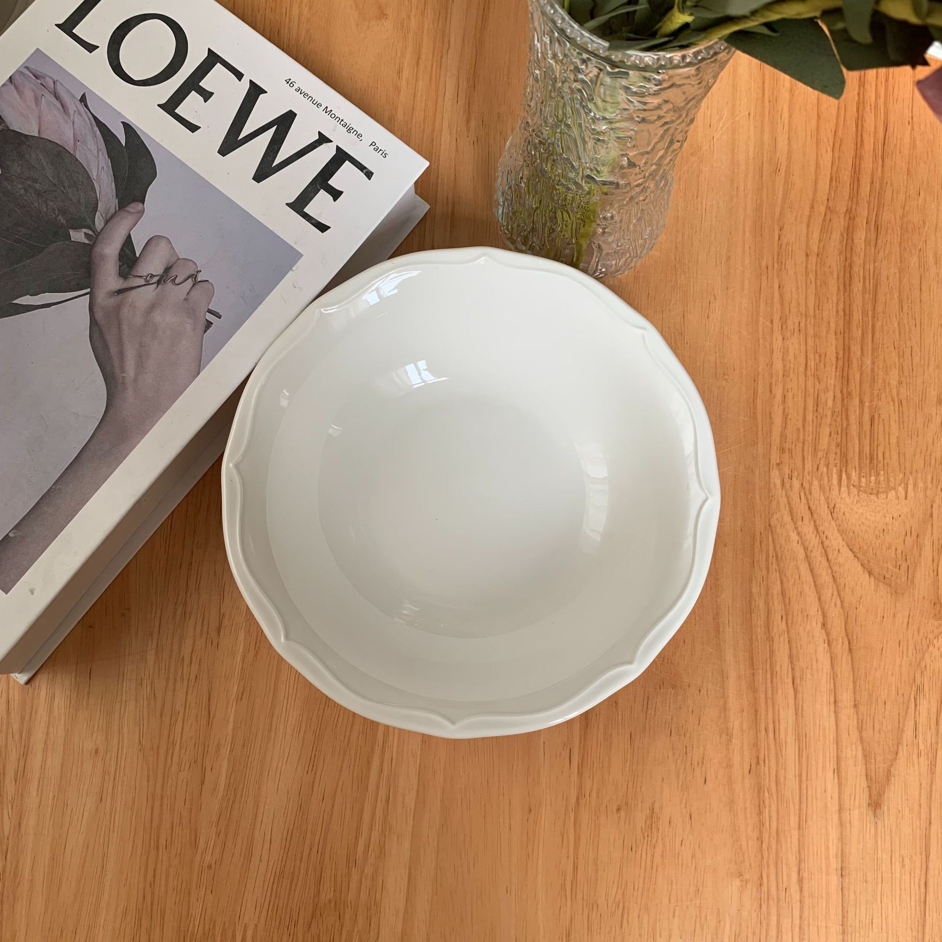 유럽 스타일 레트로 간단한 세라믹 플랫 플레이트 딥 볼 프랑스 순수 화이트 서양 푸드 플레이트 케이크 디저트 플레이트 살라 보울 인