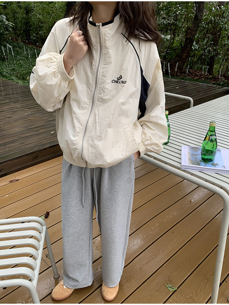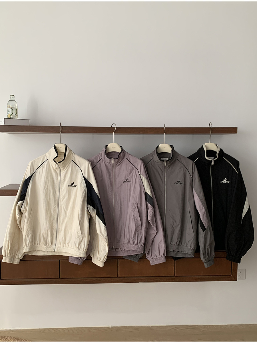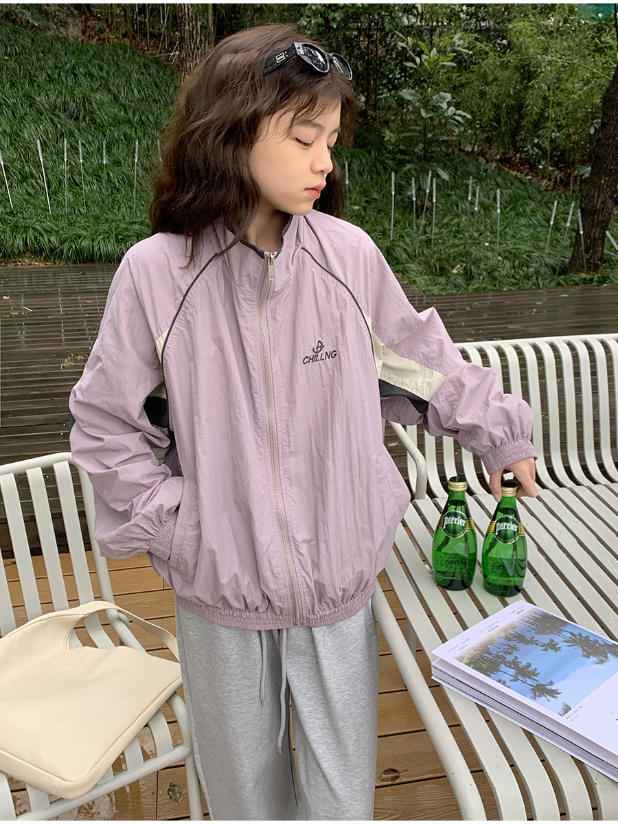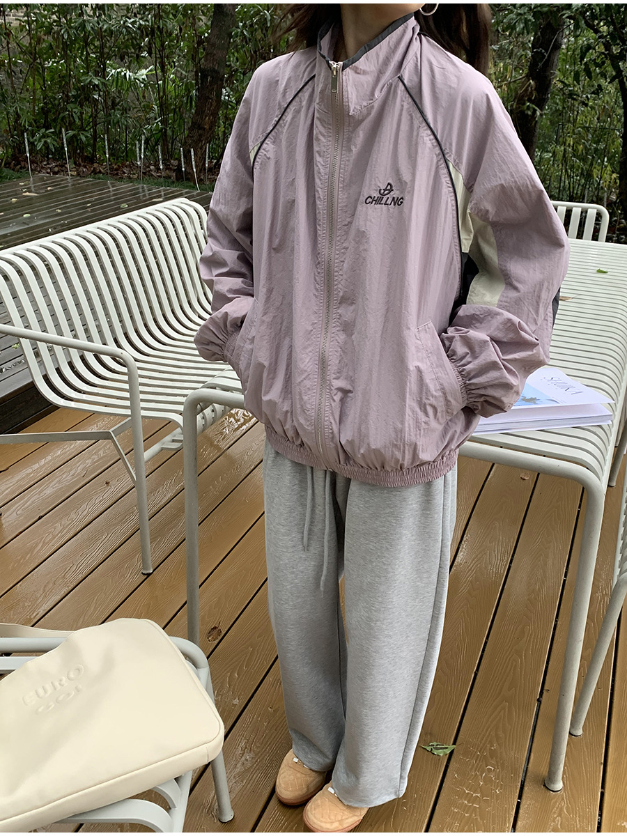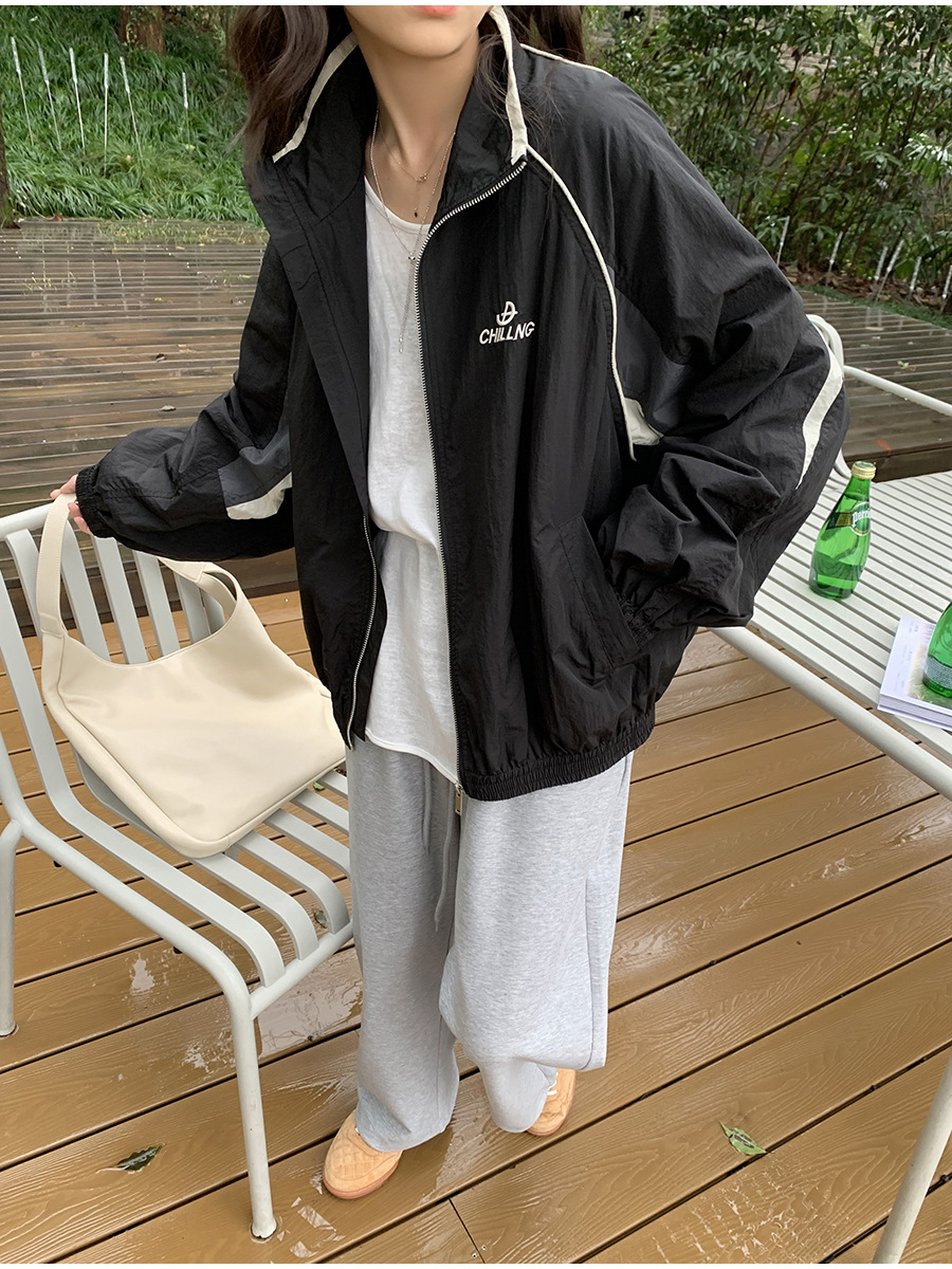 리노 배색 재킷 여성용 2025 봄 신상 한국 스타일 루즈핏 아웃도어 캐주얼 지퍼 스탠드 칼라 외투스토어 가기