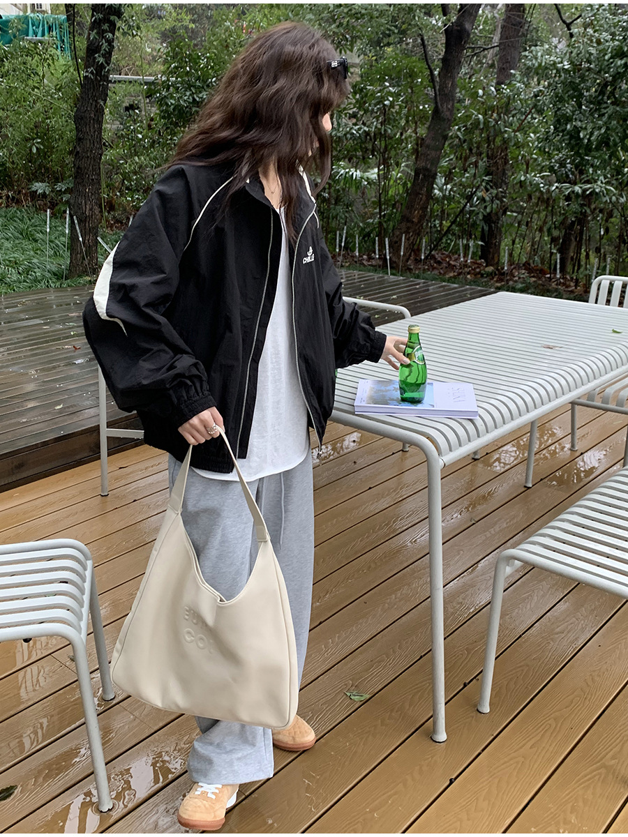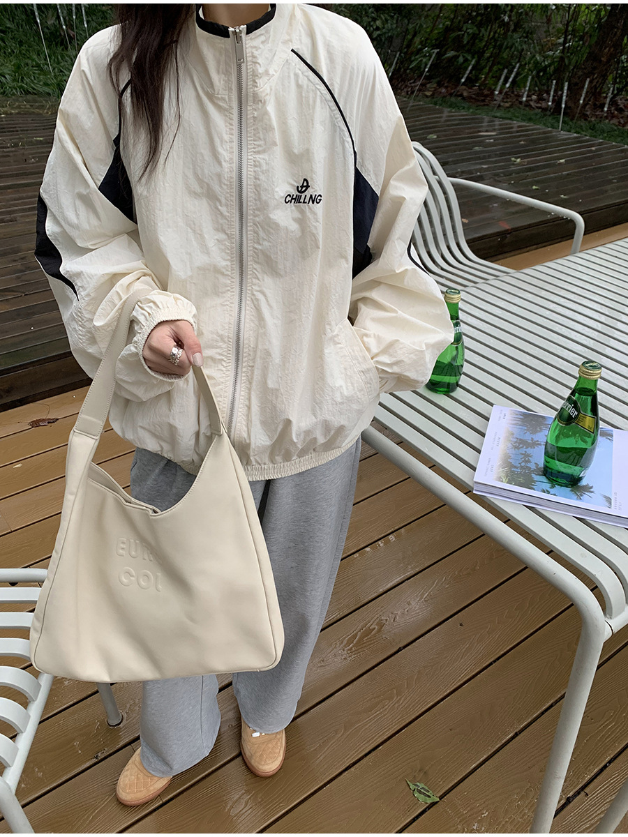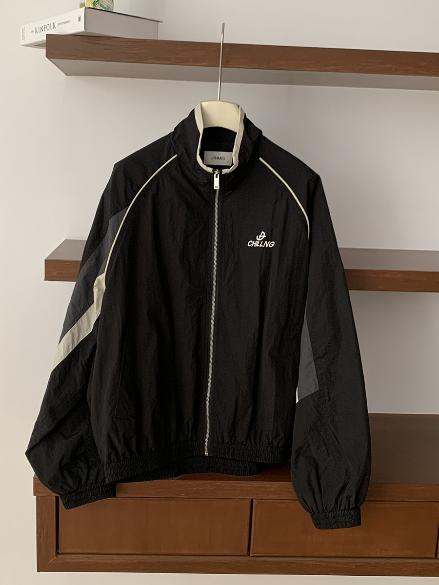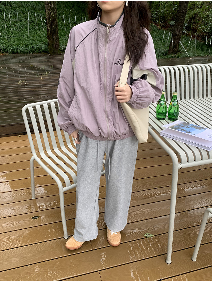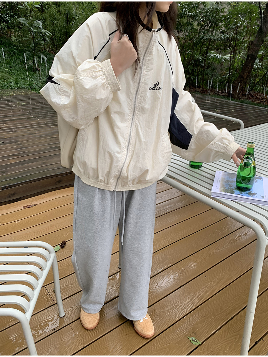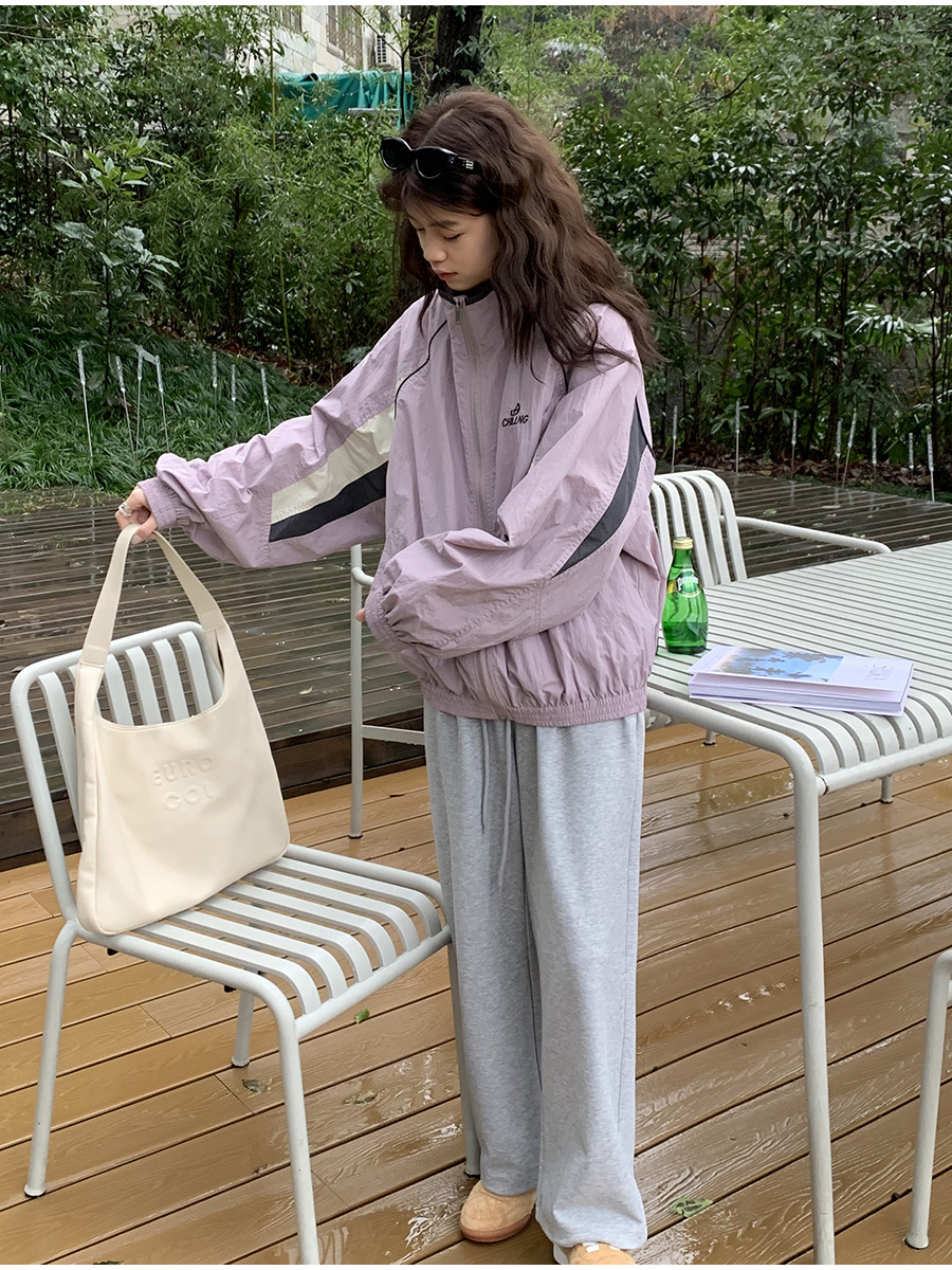 리노 배색 재킷 여성용 2025 봄 신상 한국 스타일 루즈핏 아웃도어 캐주얼 지퍼 스탠드 칼라 외투스토어 가기