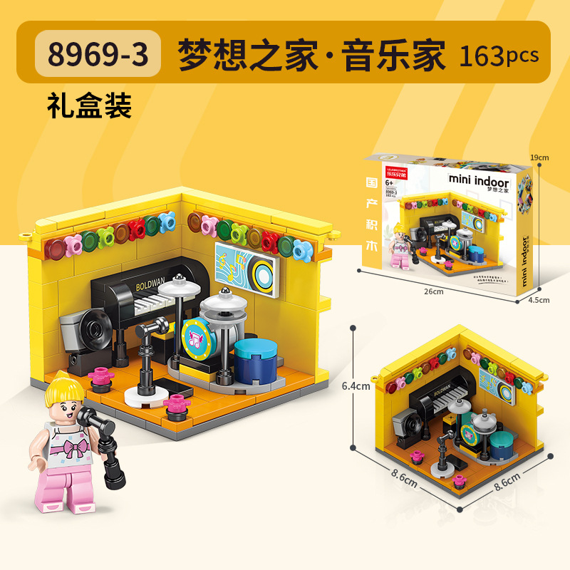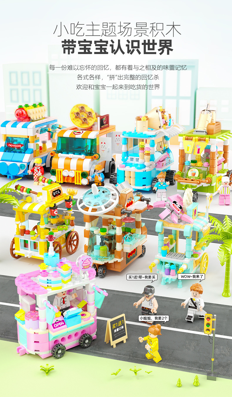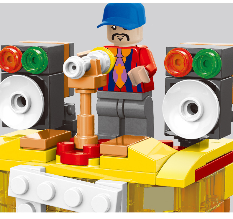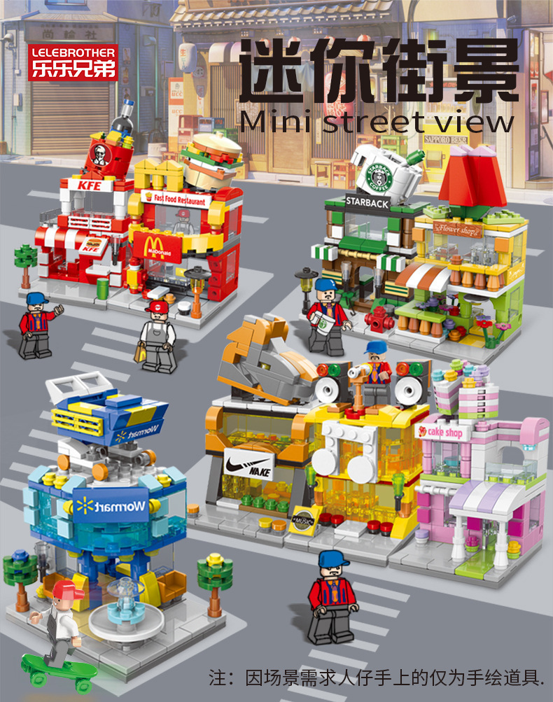 작은 입자와 호환되는 스트리트 뷰 스낵 거리 음악 높은 빌딩 블록 박스 어린이 교육 공간 조립 장난감 소년과 소녀