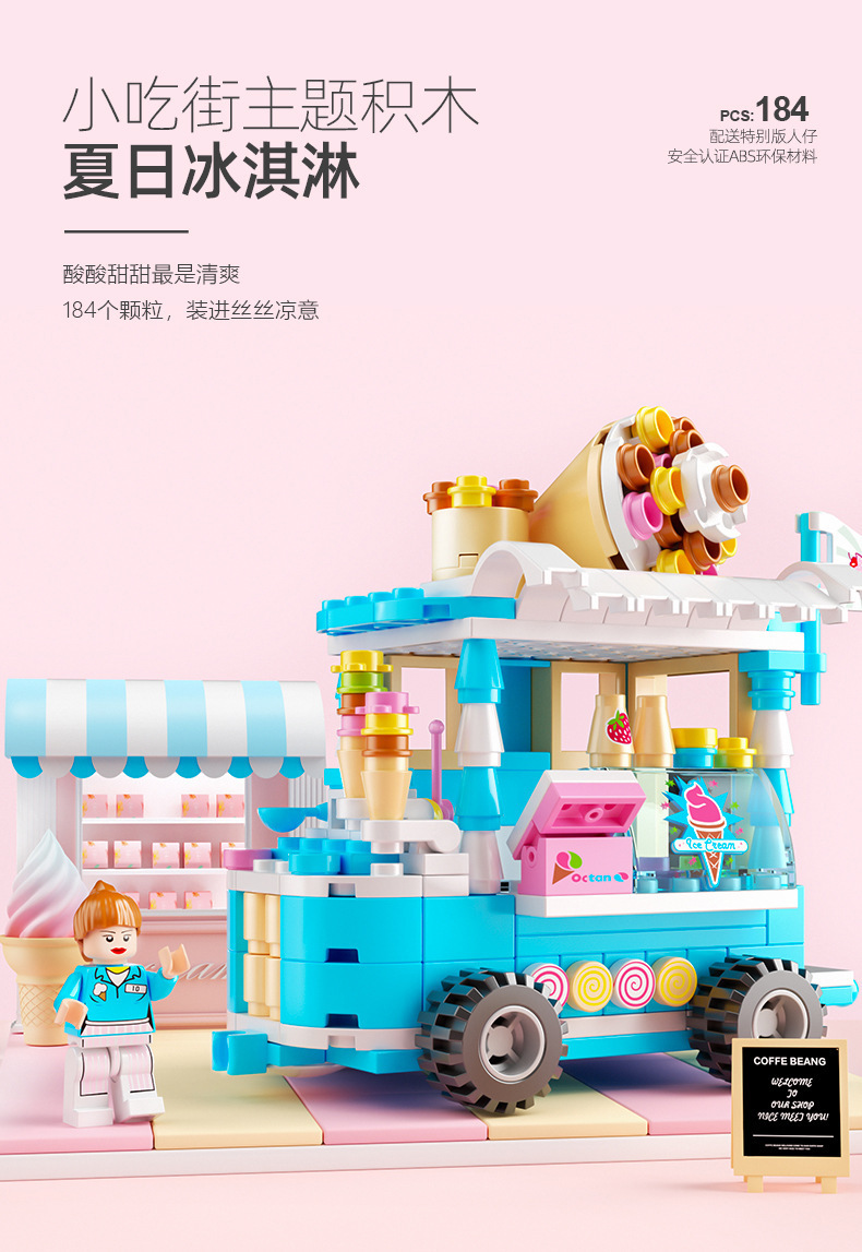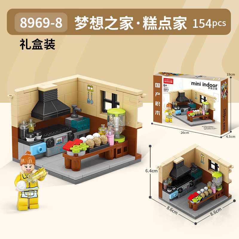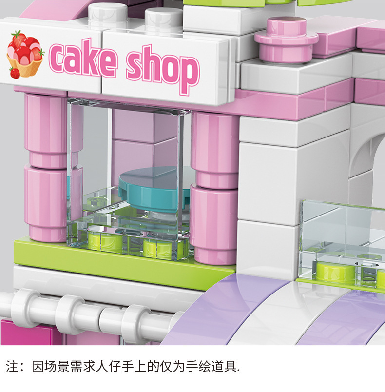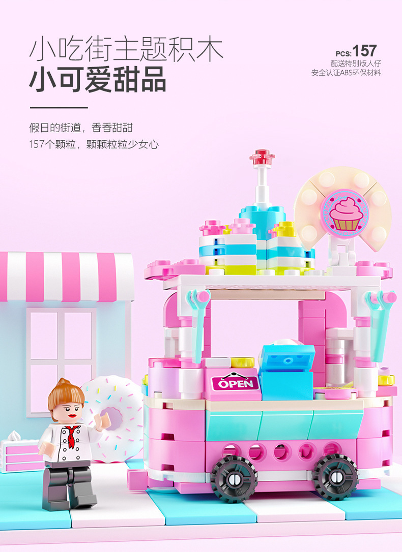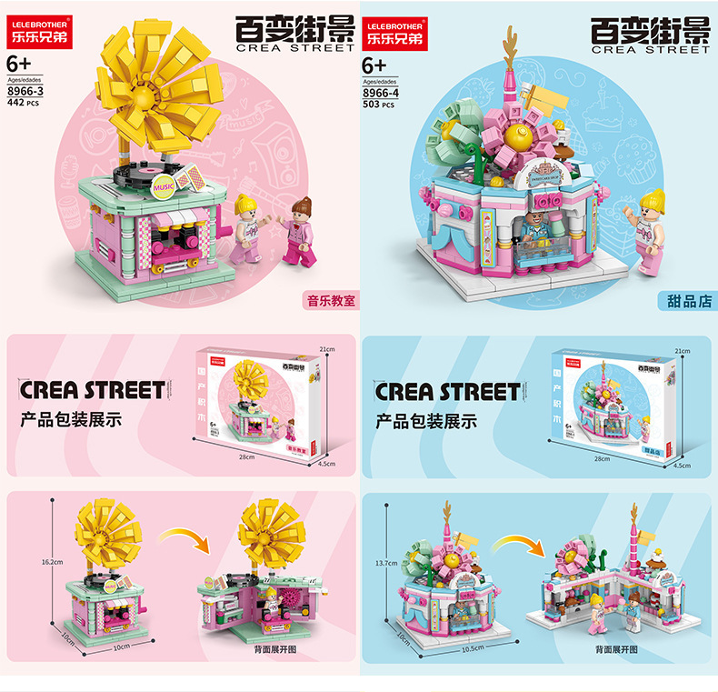 작은 입자와 호환되는 스트리트 뷰 스낵 거리 음악 높은 빌딩 블록 박스 어린이 교육 공간 조립 장난감 소년과 소녀