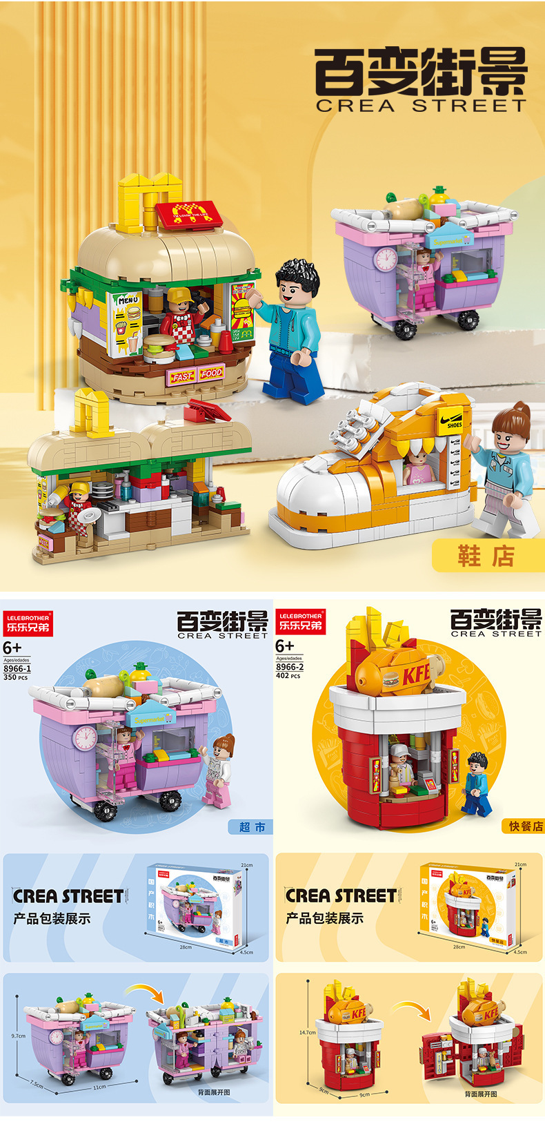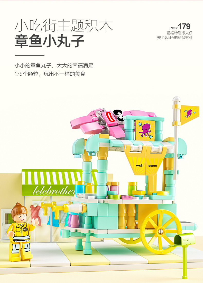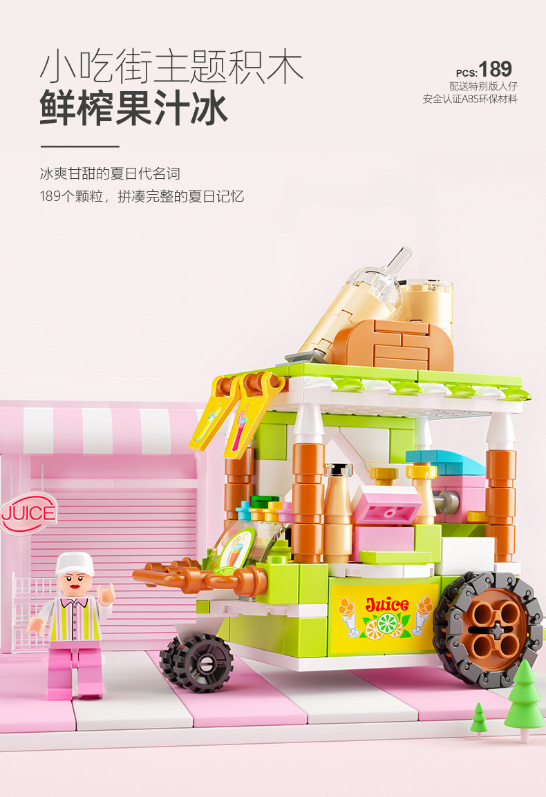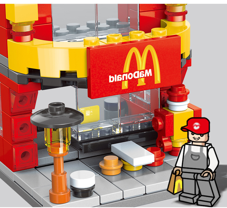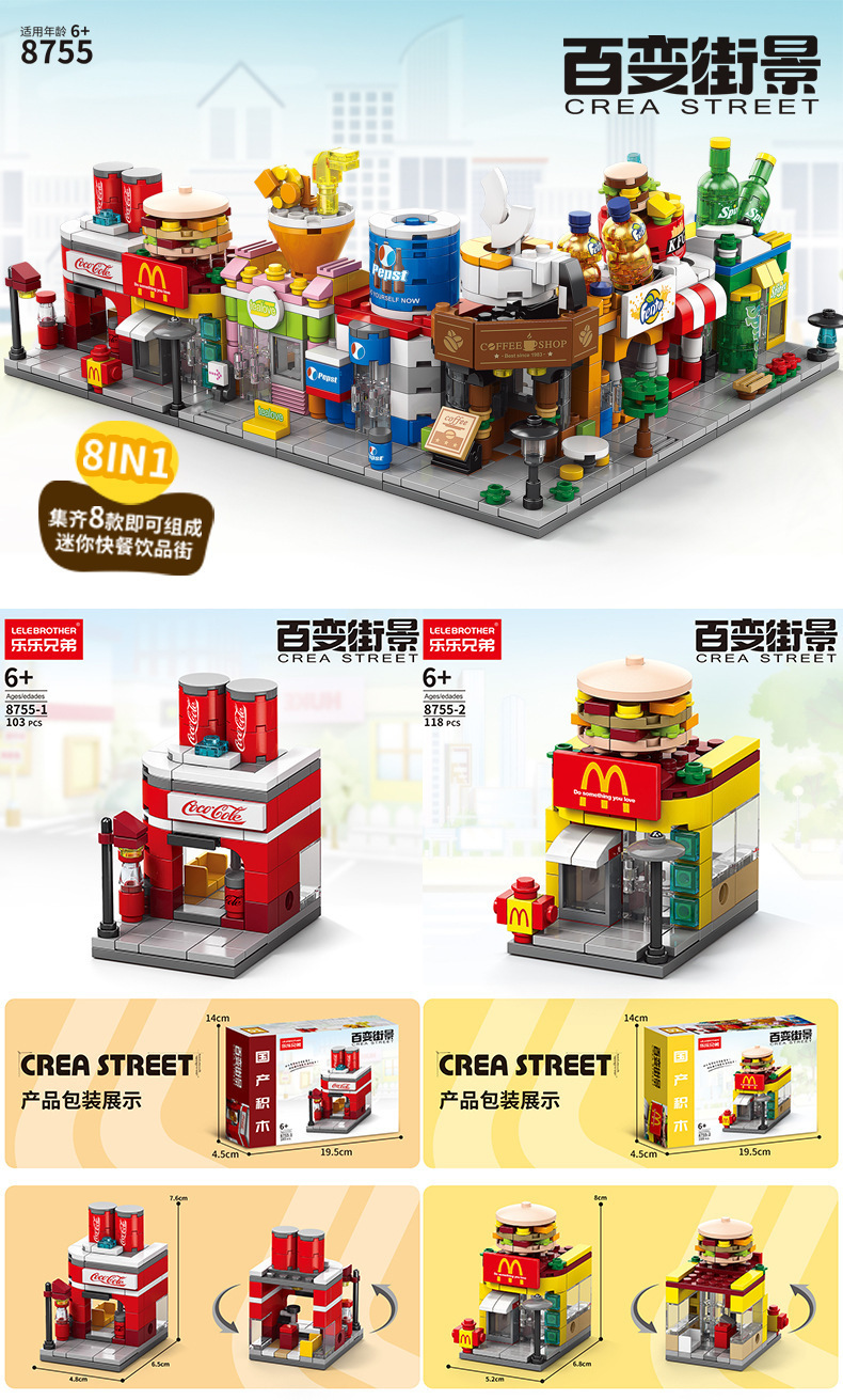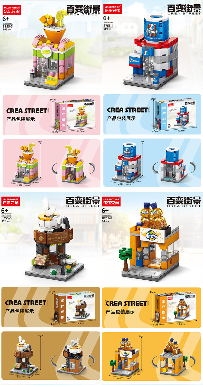 작은 입자와 호환되는 스트리트 뷰 스낵 거리 음악 높은 빌딩 블록 박스 어린이 교육 공간 조립 장난감 소년과 소녀스토어 가기