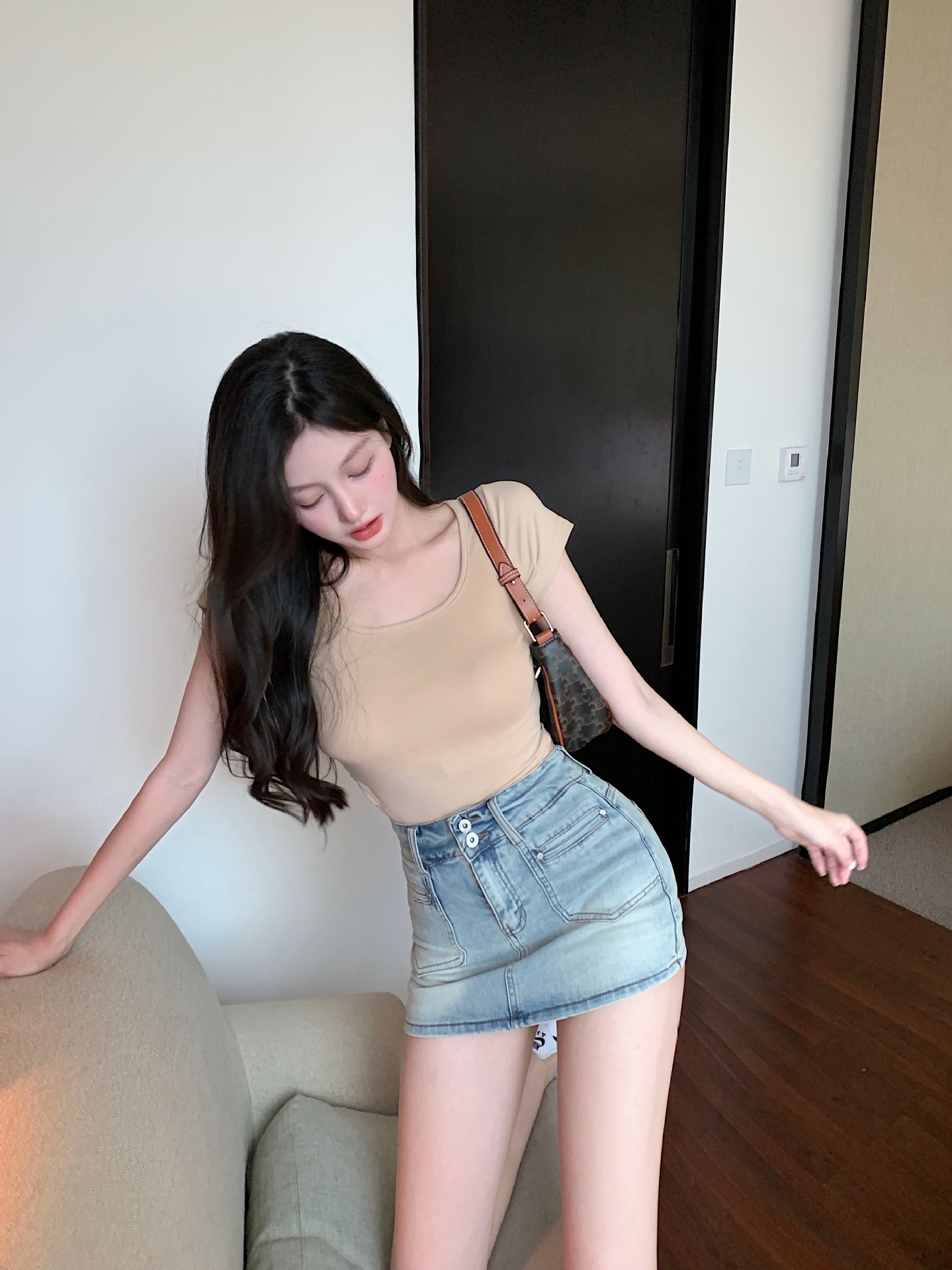 인터넷 유명인과 같은 스타일 2025 봄 신상 틈새 시장 핫걸 포켓 장식 워싱 데님 미니스커트
