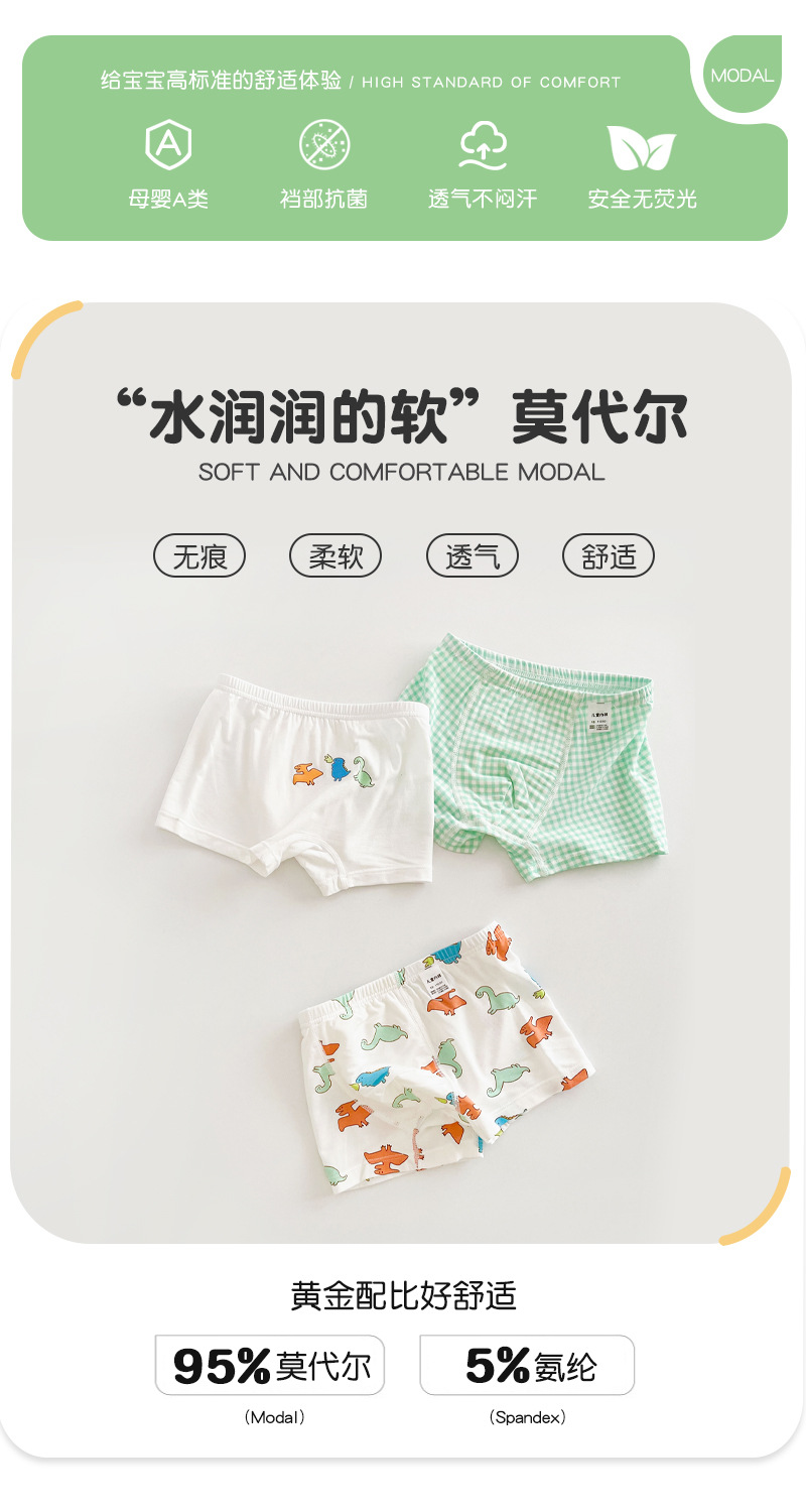 소년 속옷 클래스 2024 봄과 여름 아기 복서 반바지 어린이 모달 소년 소년 복서 반바지스토어 가기
