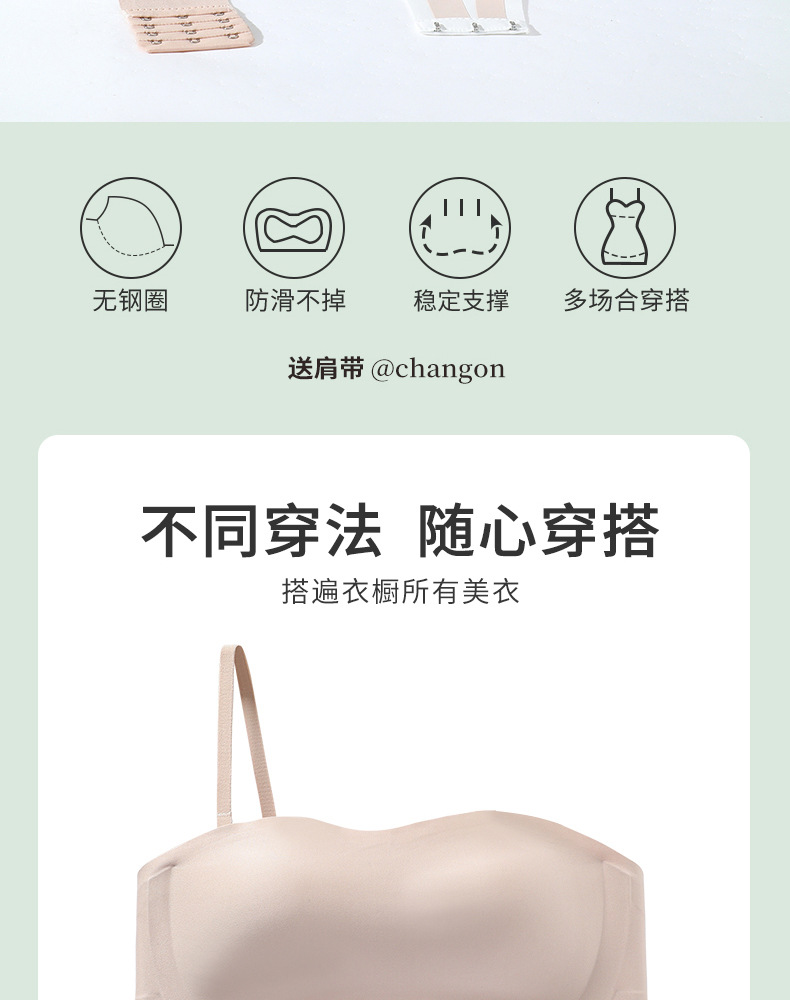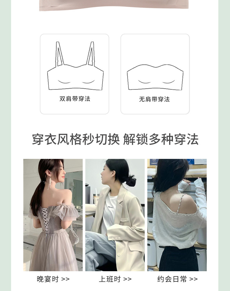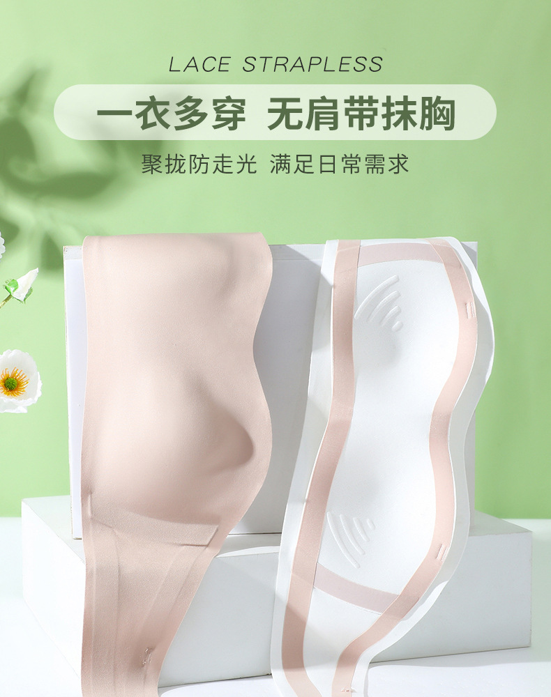 여성용 끈이없는 속옷 어깨 빛 노출 가벼운 산소 누드 느낌 통기성 통합 컵 양방향 착용 미끄럼 방지 속옷 가슴 지원 사이드 컬렉션