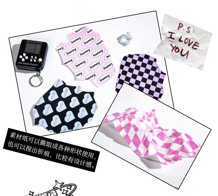 Yuxian 비 끈적 끈적한 소재 종이 달콤한 전기 웨이브 달콤한 시원한 시리즈 눈물 줄 수있는 미국 스타일 저널 DIY 풍경베이스 종이