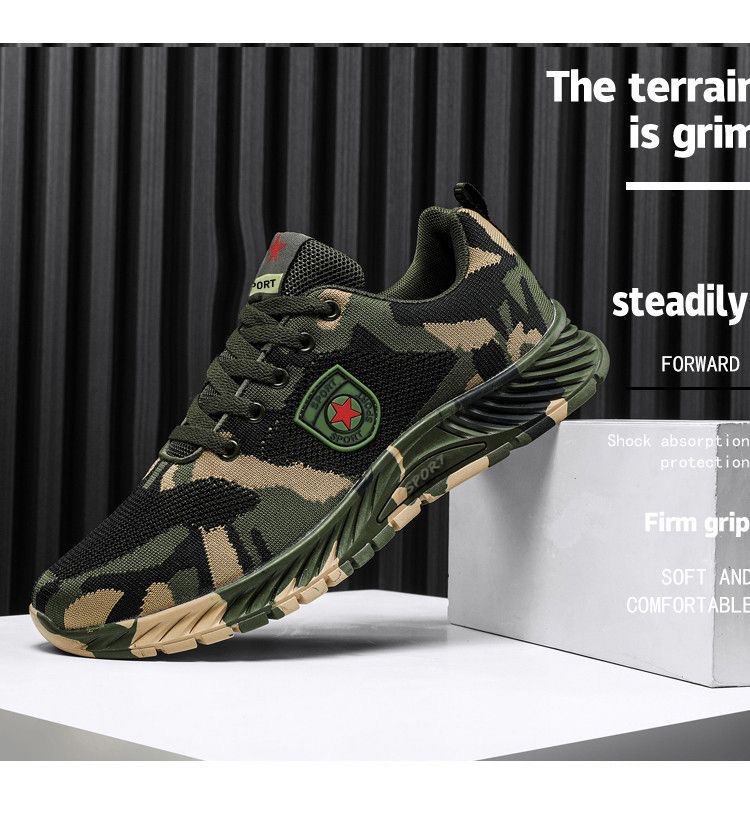 2024 봄 새로운 캐주얼 남성 신발 비행 짠 통기성 다재다능한 남녀 같은 스타일 커플 신발 위장 신발 작업 신발스토어 가기