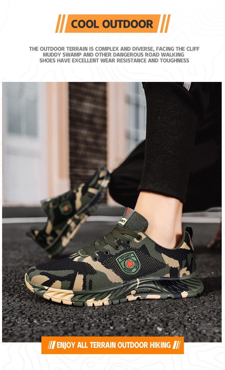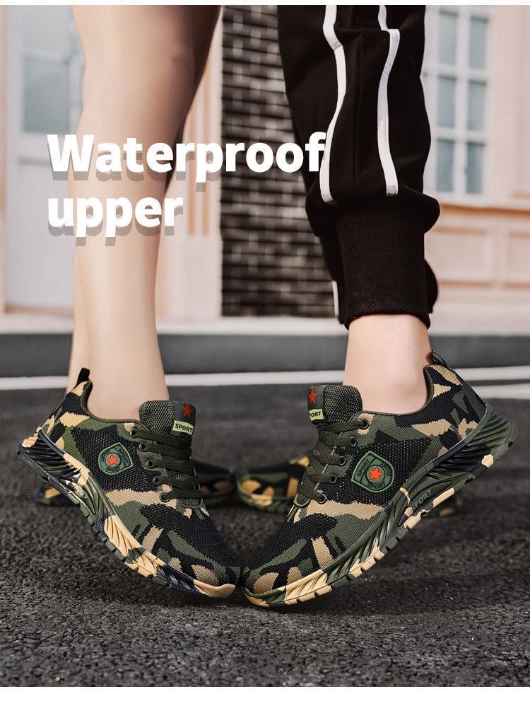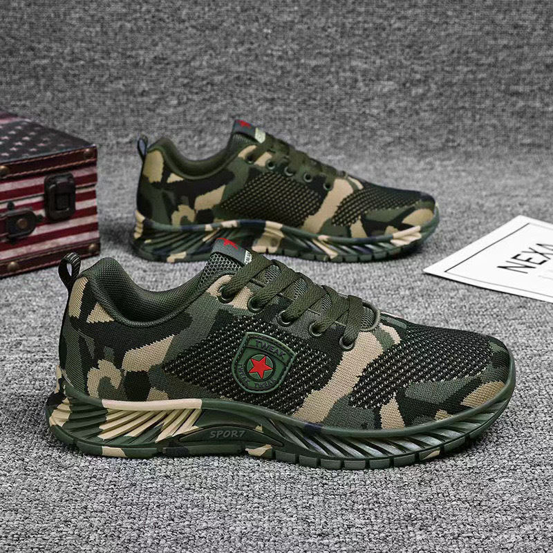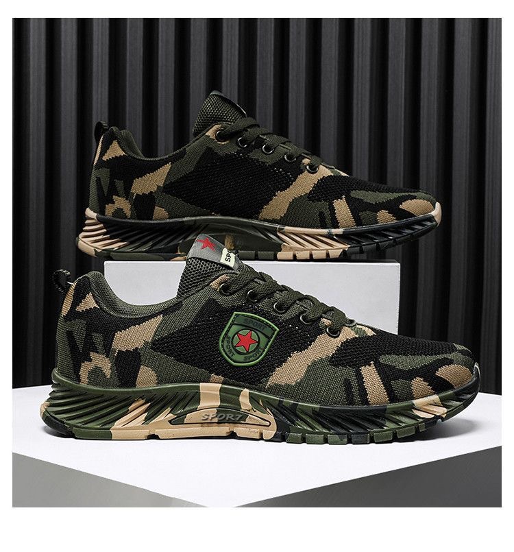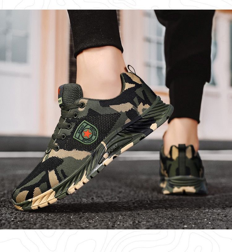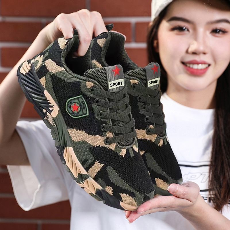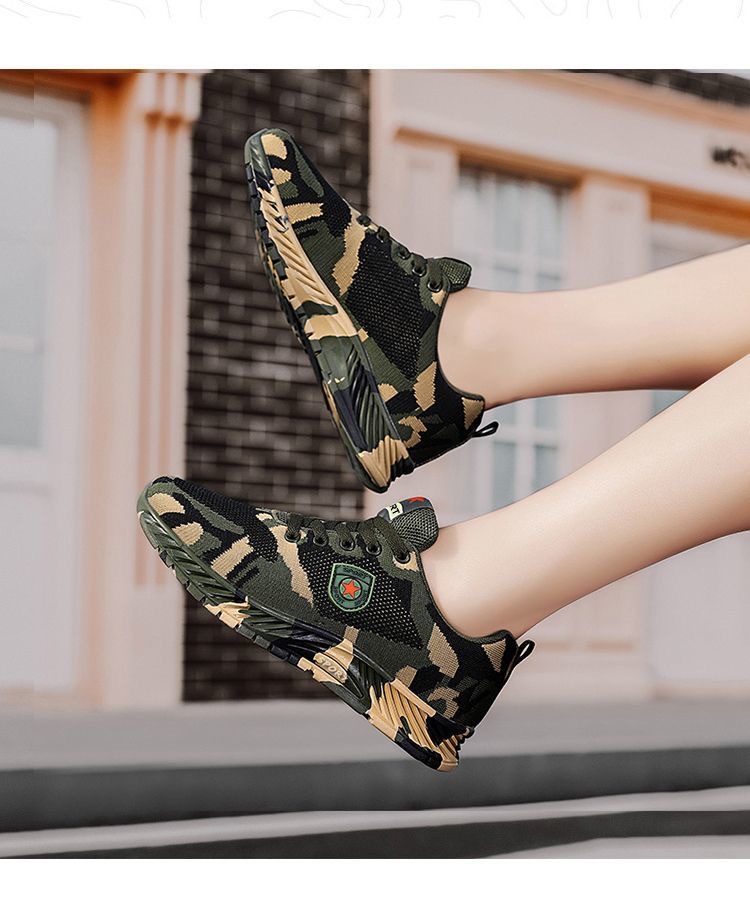 2024 봄 새로운 캐주얼 남성 신발 비행 짠 통기성 다재다능한 남녀 같은 스타일 커플 신발 위장 신발 작업 신발