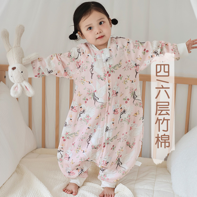 아기 대나무면 거즈 침낭 A형 아기 온도조절 홈웨어 어린이 수면용 발차기 방지 이불 봄여름용 침낭