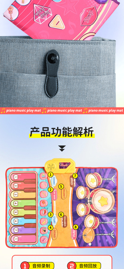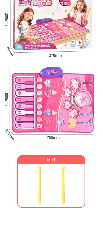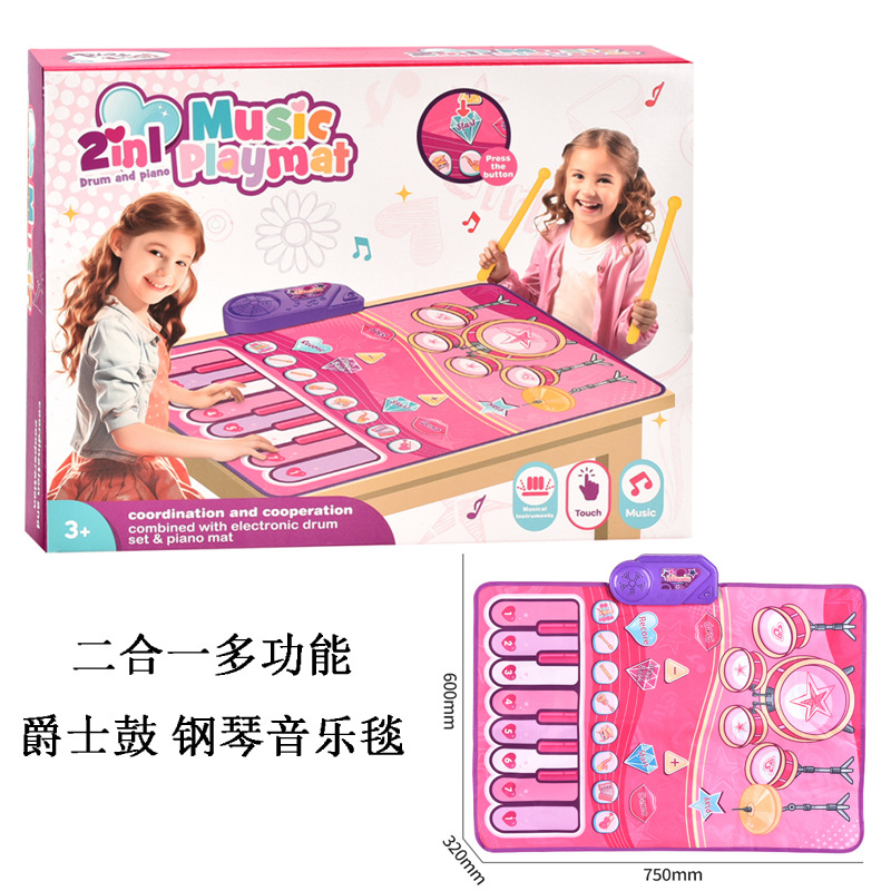 국경 간 어린이 재즈 드럼 음악 담요 공룡 사운드 퍼즐 다기능 페달 피아노 게임 담요 부모 자식 장난감스토어 가기