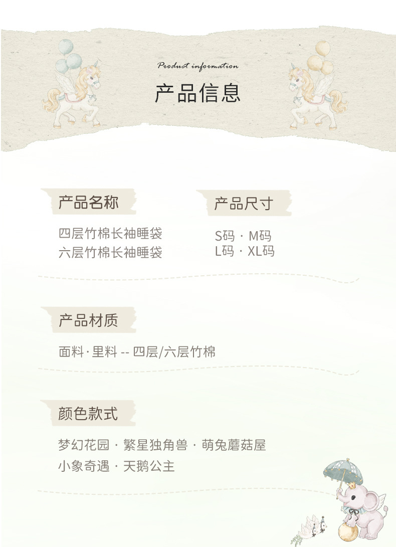• 꼬마 코끼리의 모험 - 업그레이드된 6겹 천죽 긴팔 (실내 온도 20-24도 권장) ℃ )