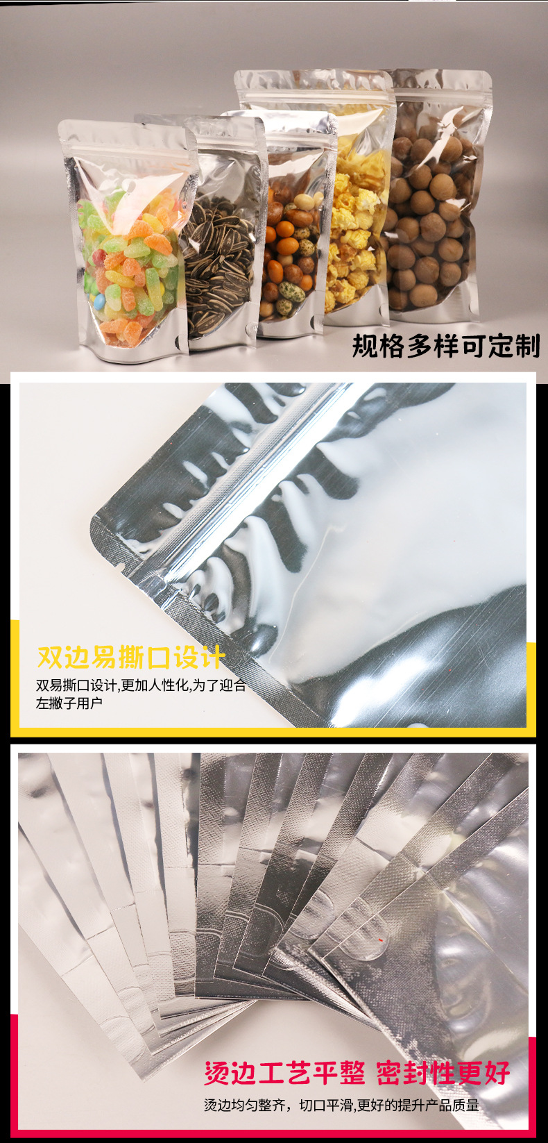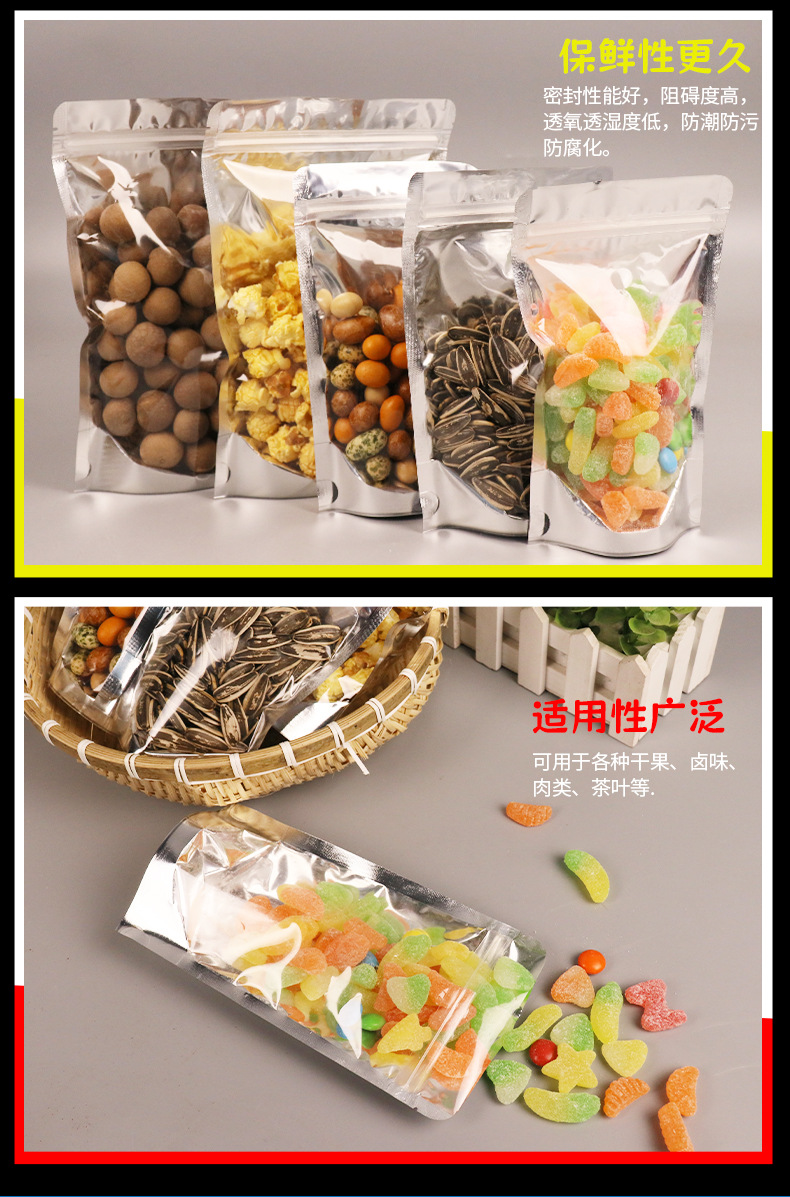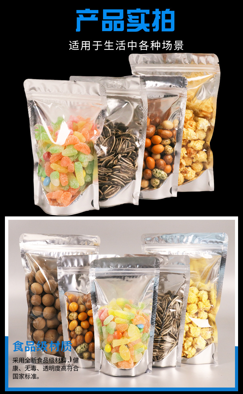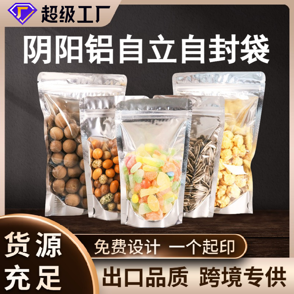 재고 알루미늄 호일 플라스틱 포장 가방 도매 반투명 음양 자체 밀봉 가방 스낵 식품 지퍼 가방