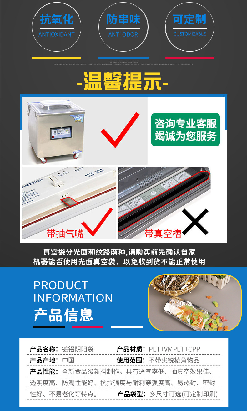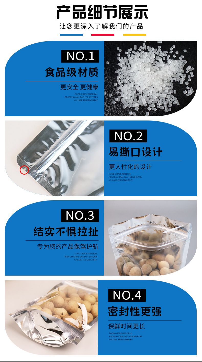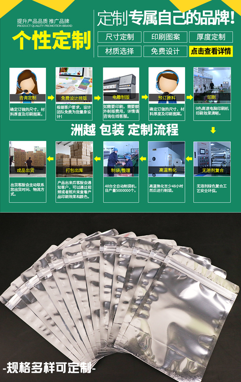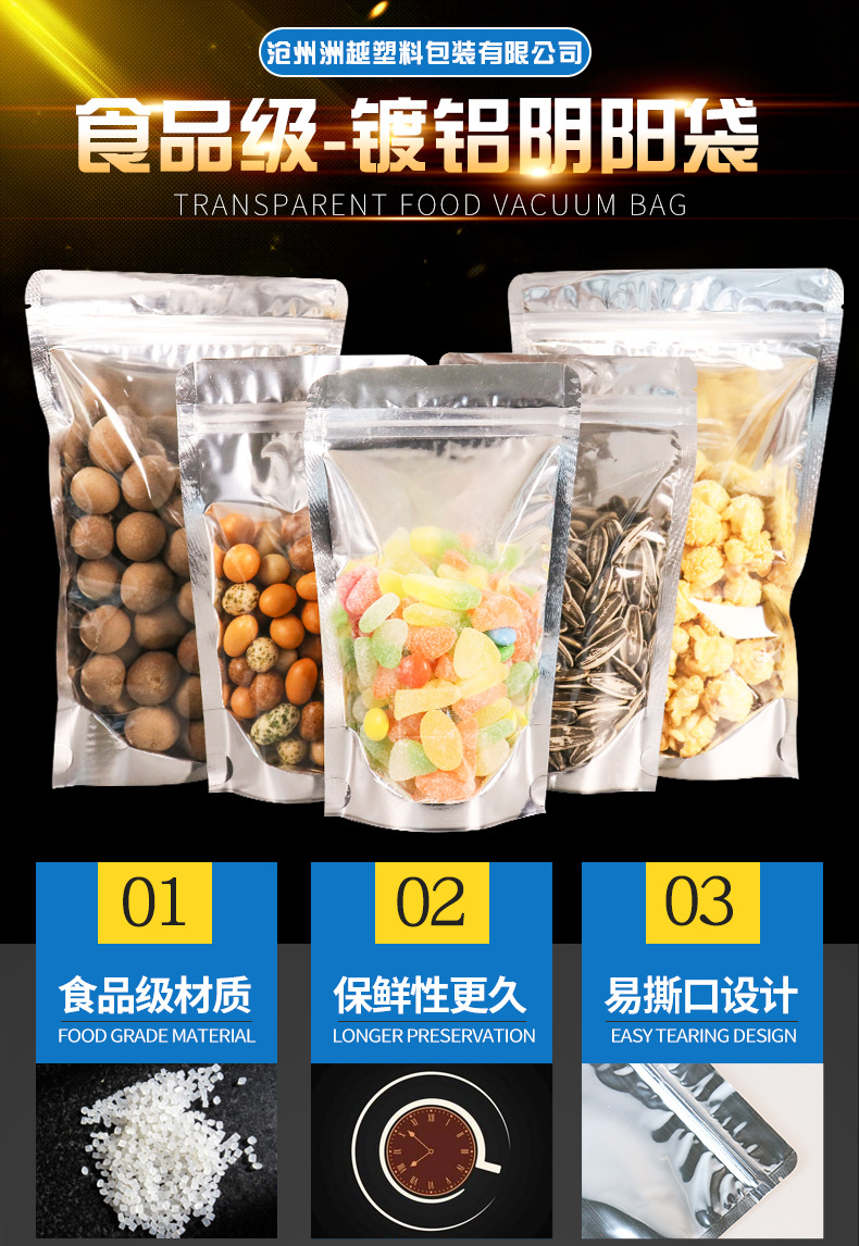 재고 알루미늄 호일 플라스틱 포장 가방 도매 반투명 음양 자체 밀봉 가방 스낵 식품 지퍼 가방