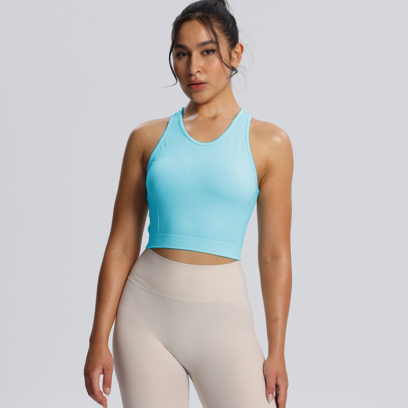 국경 간 원활한 니트 요가 스포츠 조끼 봄과 여름 스트레치 아름다운 뒤 I-캐릭터 섹시한 피트니스 속옷 여성 외복스토어 가기