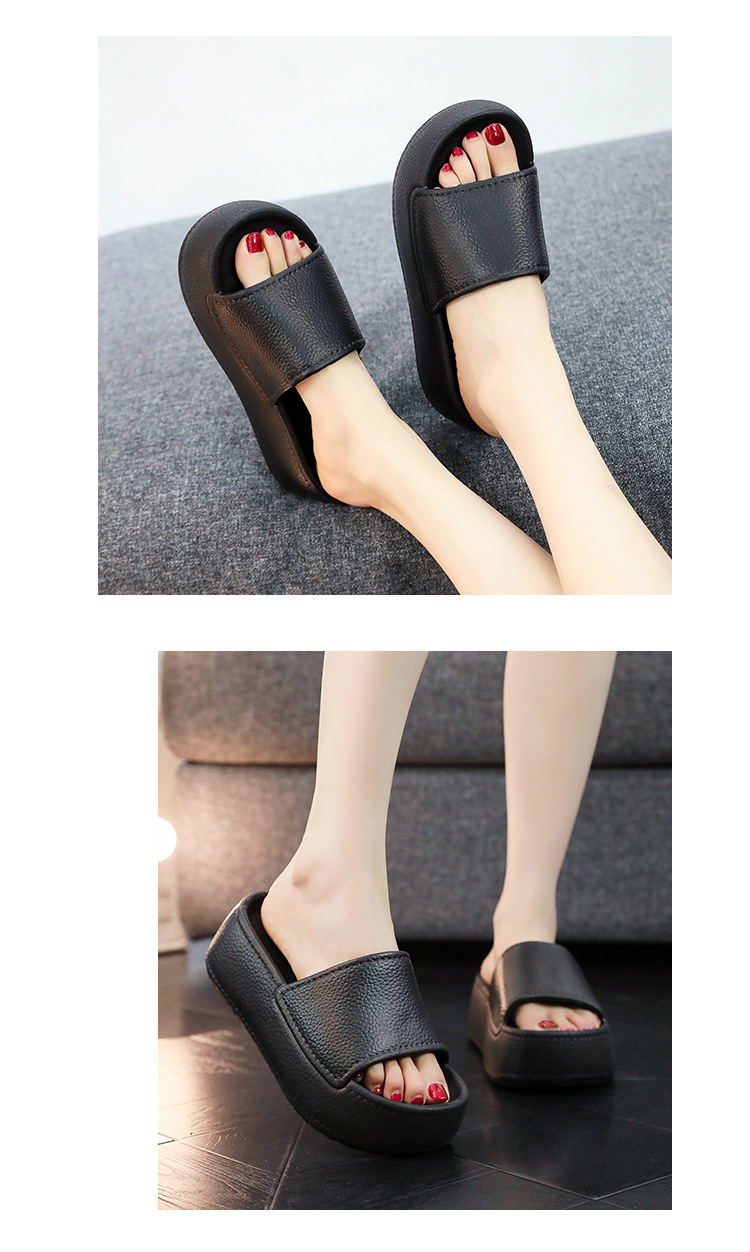여성의 두꺼운 밑창 슬리퍼 2024 여름 새로운 인기 야외 패션 하이힐 머핀 비치 캐주얼 방수 샌들