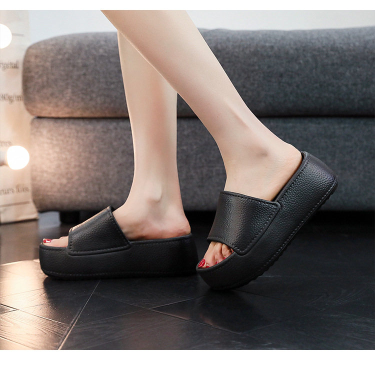 여성의 두꺼운 밑창 슬리퍼 2024 여름 새로운 인기 야외 패션 하이힐 머핀 비치 캐주얼 방수 샌들스토어 가기