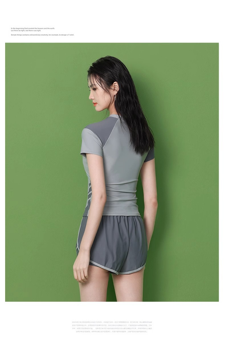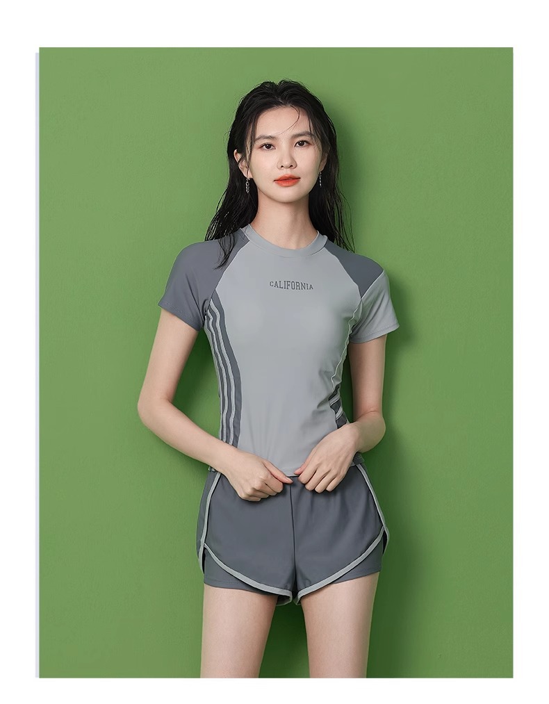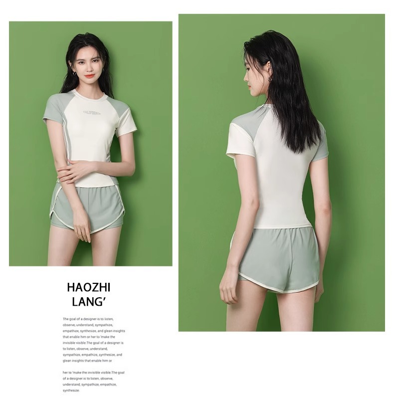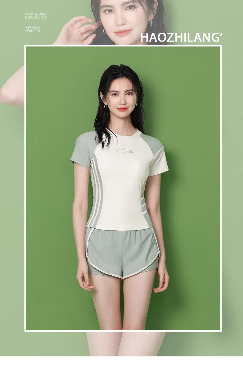 Haozhilang 2024 새로운 투피스 수영복 여성의 보수적 인 수영복 벨리 커버 슬리밍 수영복 스포츠 투피스 세트 도매스토어 가기