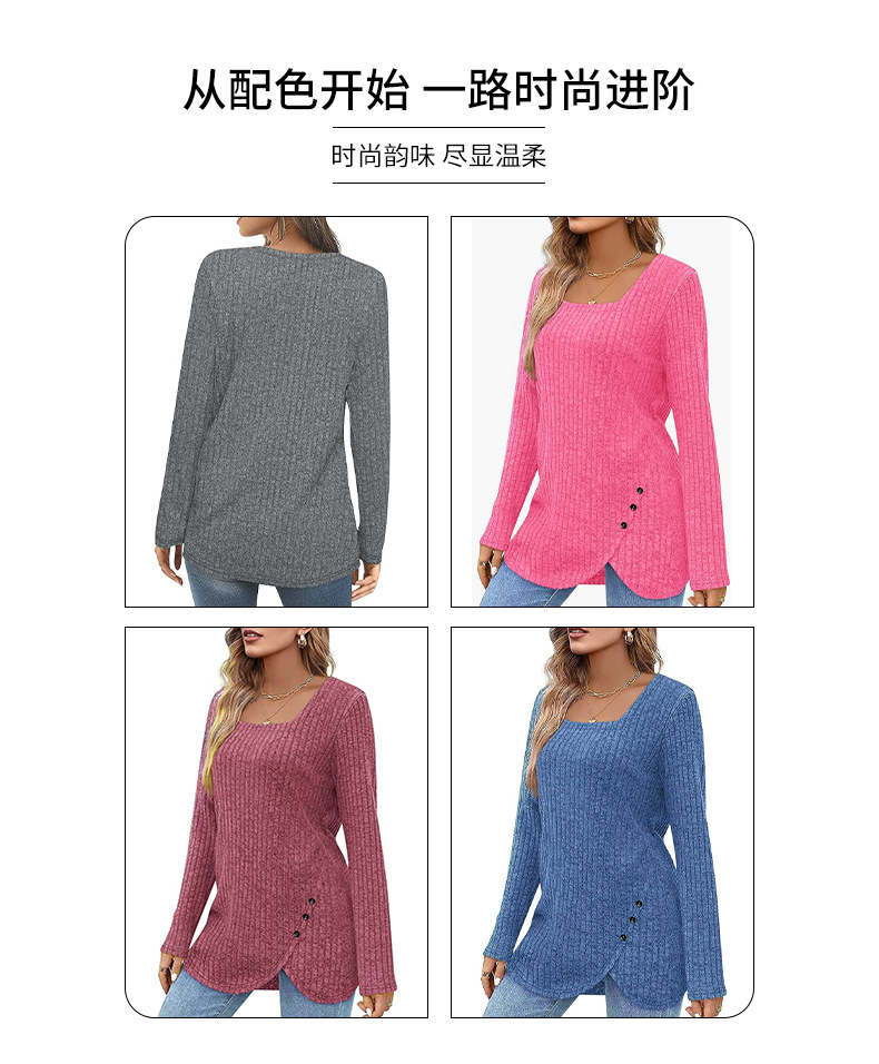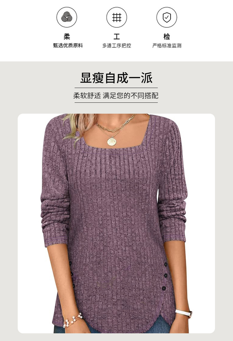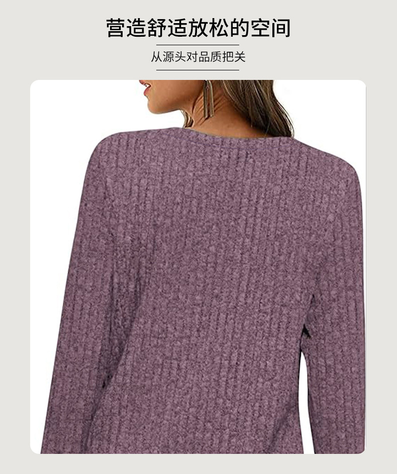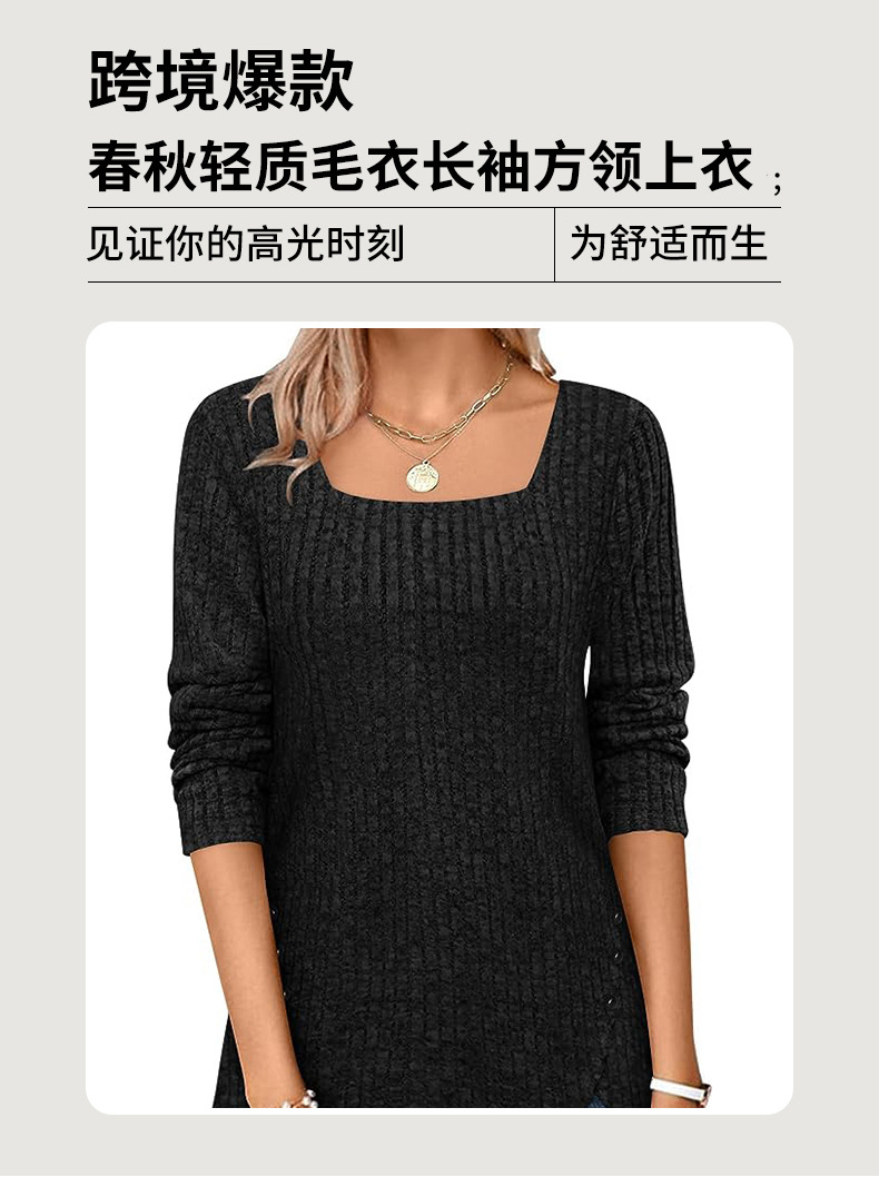 跨境欧美女式春秋毛衣轻质长袖方领坑条上衣短袖时尚宽松时尚百搭,重量:210-250克