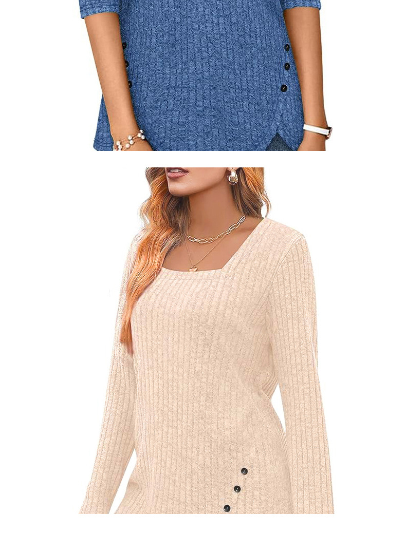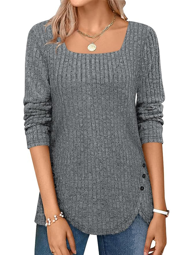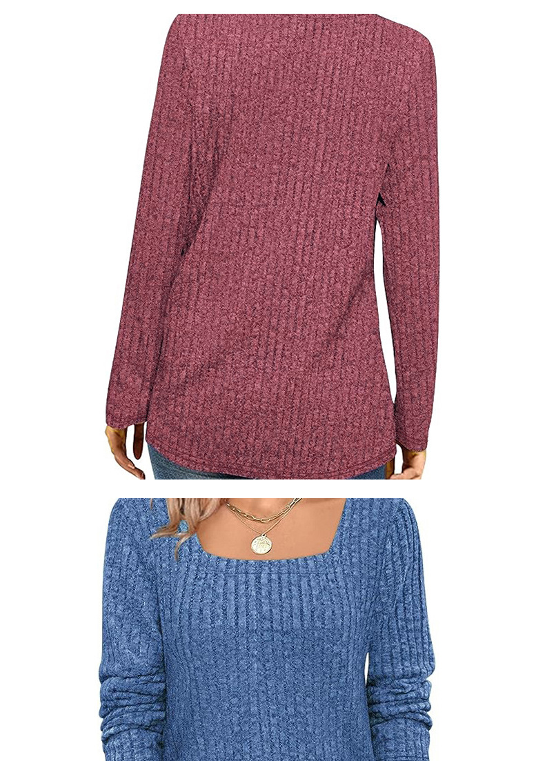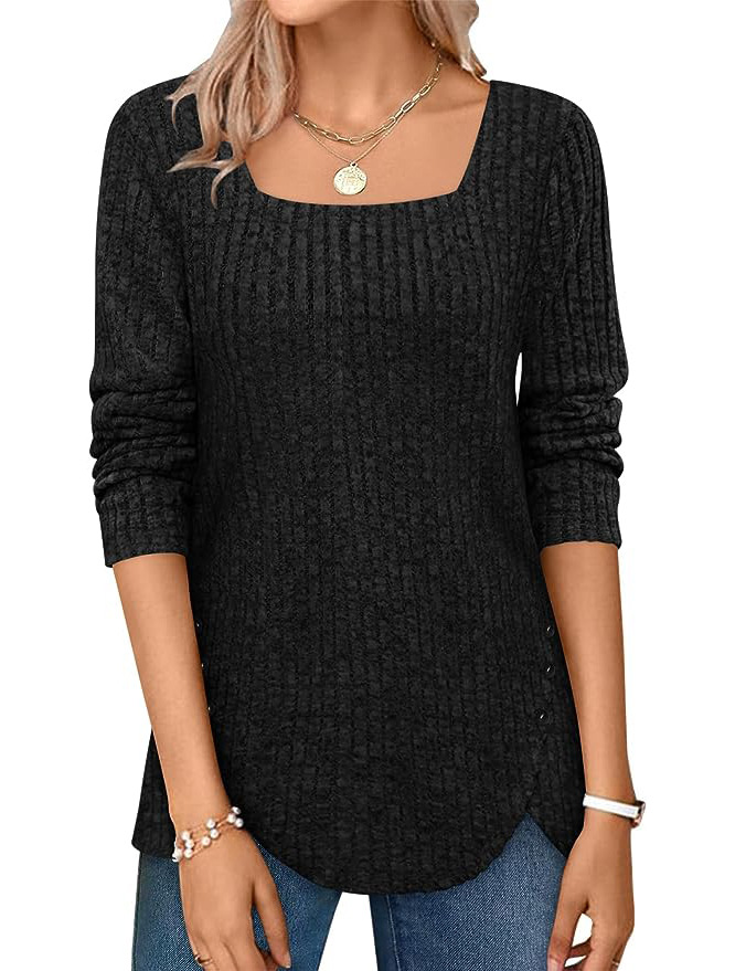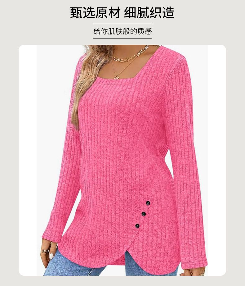 跨境欧美女式春秋毛衣轻质长袖方领坑条上衣短袖时尚宽松时尚百搭,重量:210-250克
