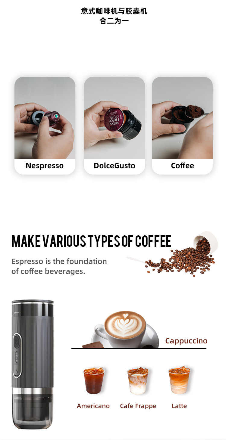 국경 무선 난방 휴대용 캡슐 커피 기계 이탈리아 자동 야외 자동차 휴대용 휴대용 커피 분말
