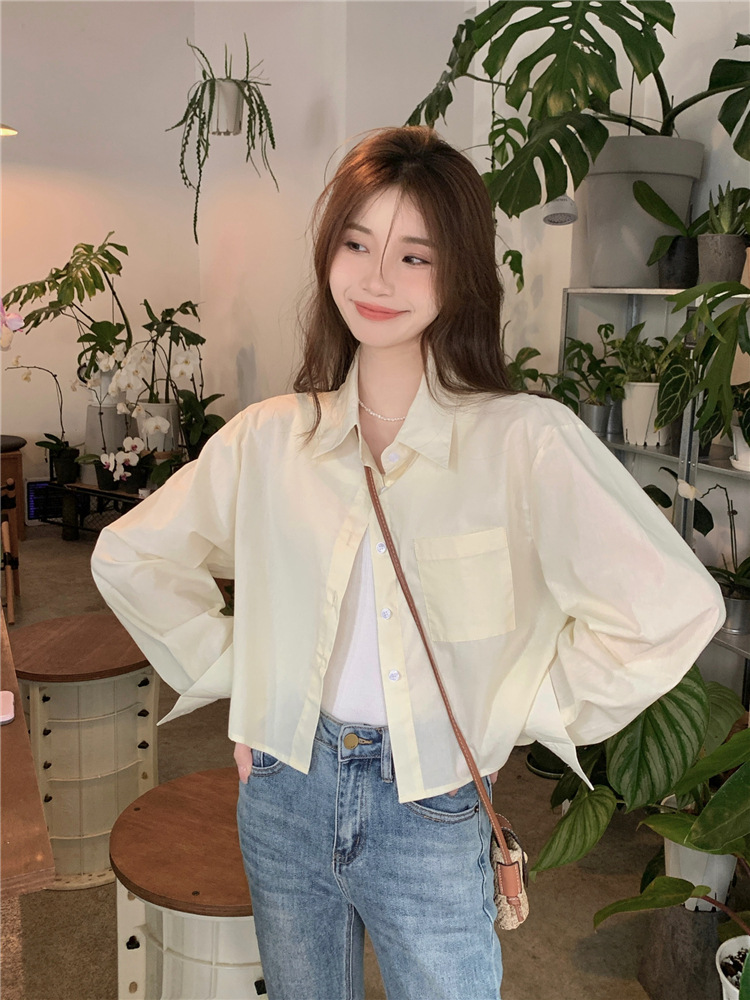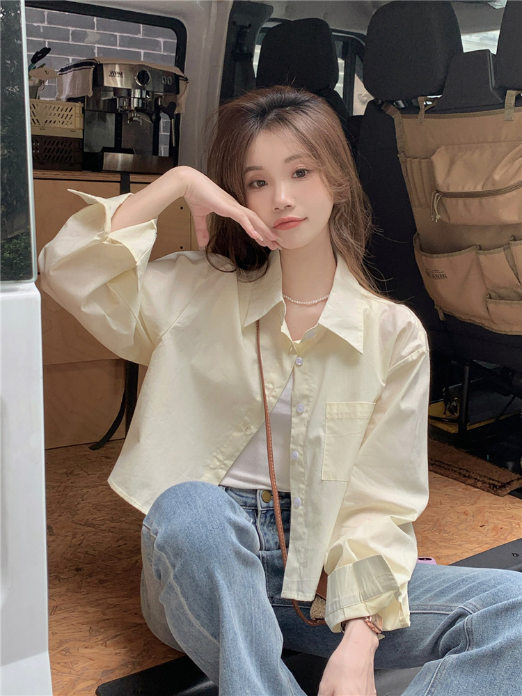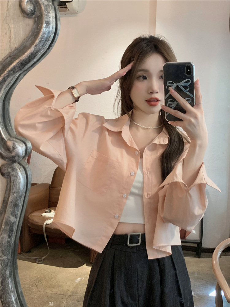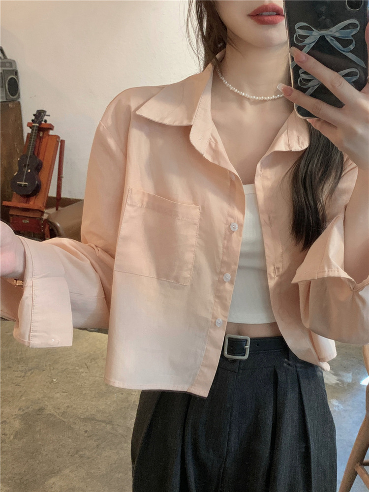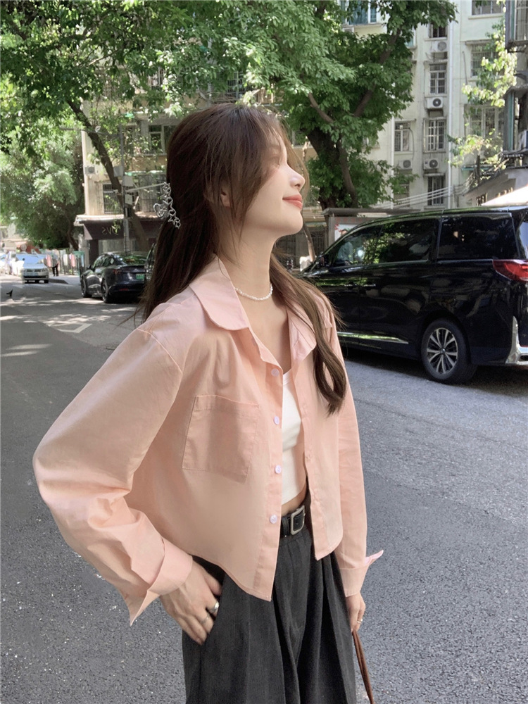 진짜 샷 심플한 디자인 짧은 셔츠 여성 한국 스타일 셔츠 코트 2024 봄 새로운 올 매칭 탑 60404