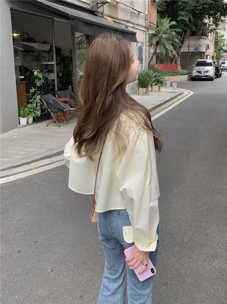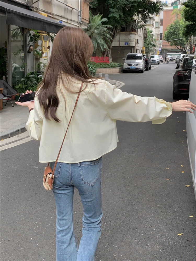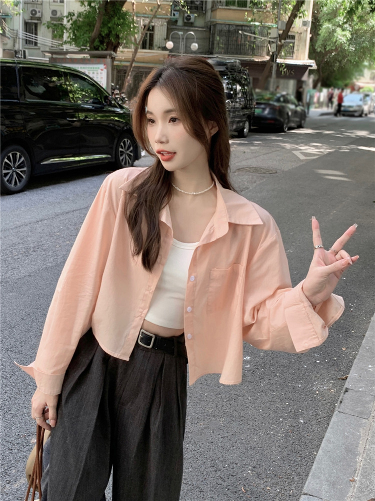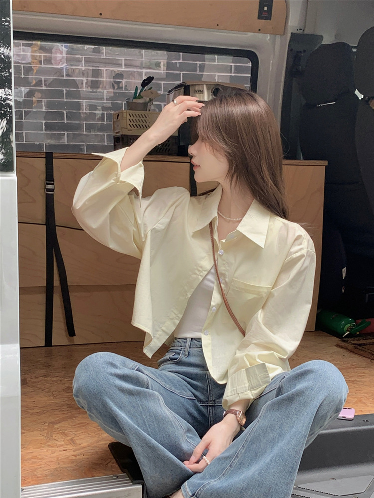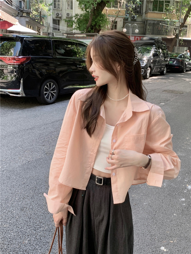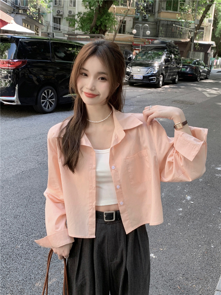 진짜 샷 심플한 디자인 짧은 셔츠 여성 한국 스타일 셔츠 코트 2024 봄 새로운 올 매칭 탑 60404
