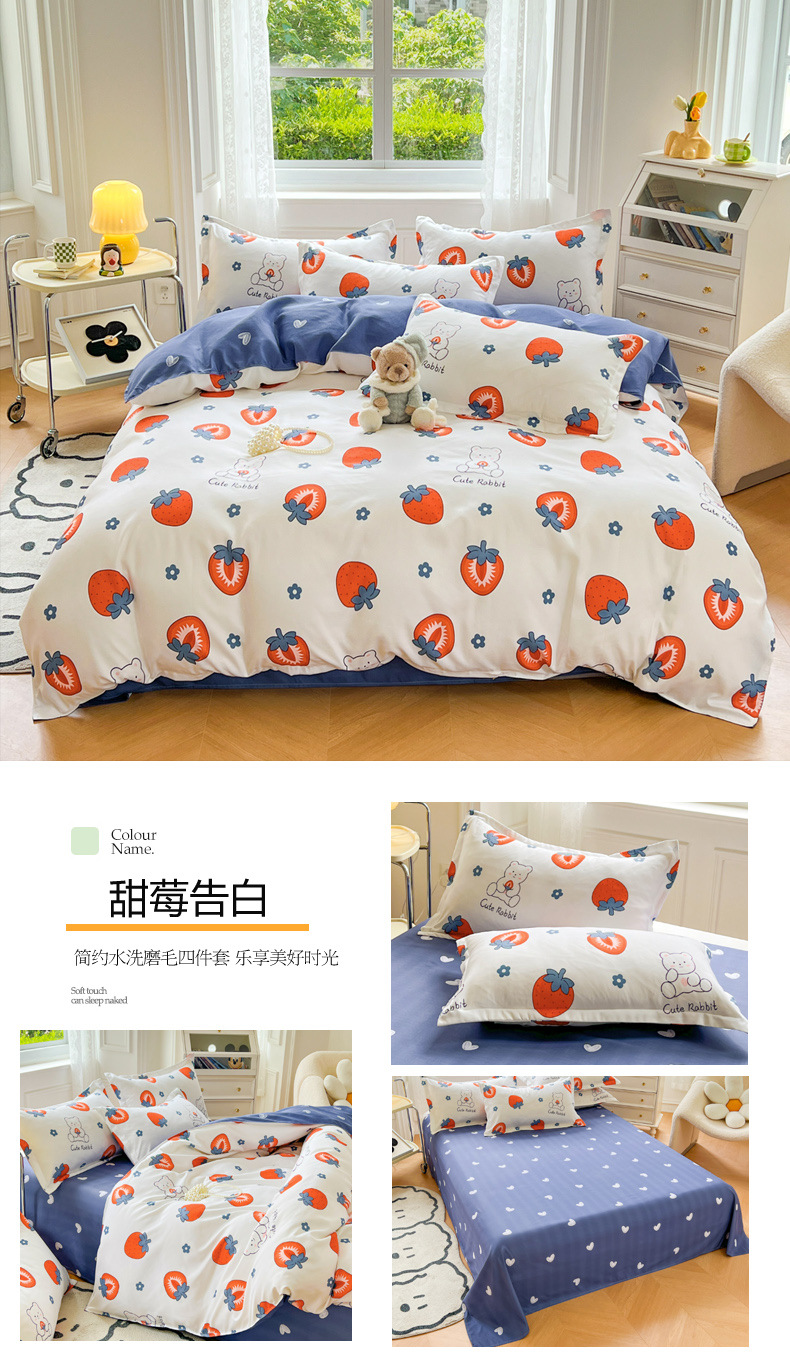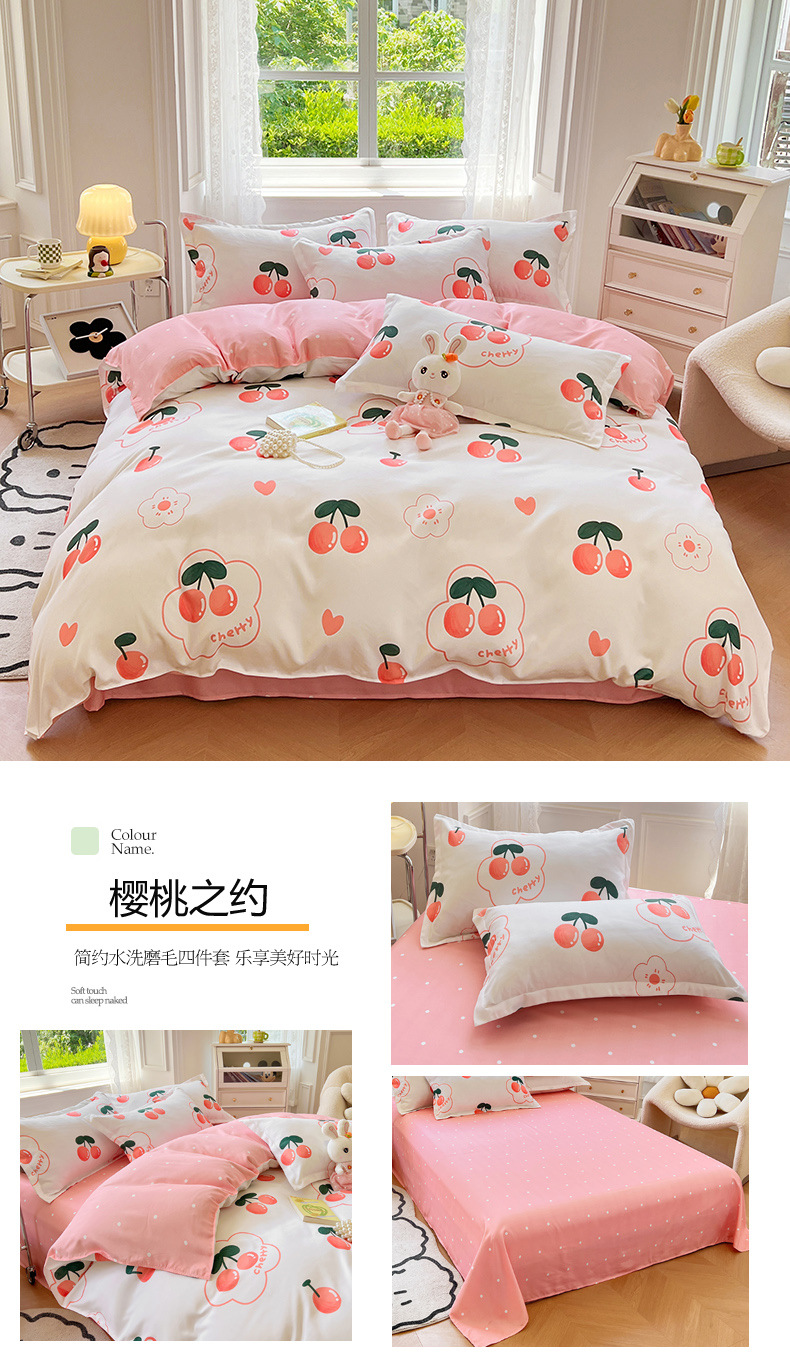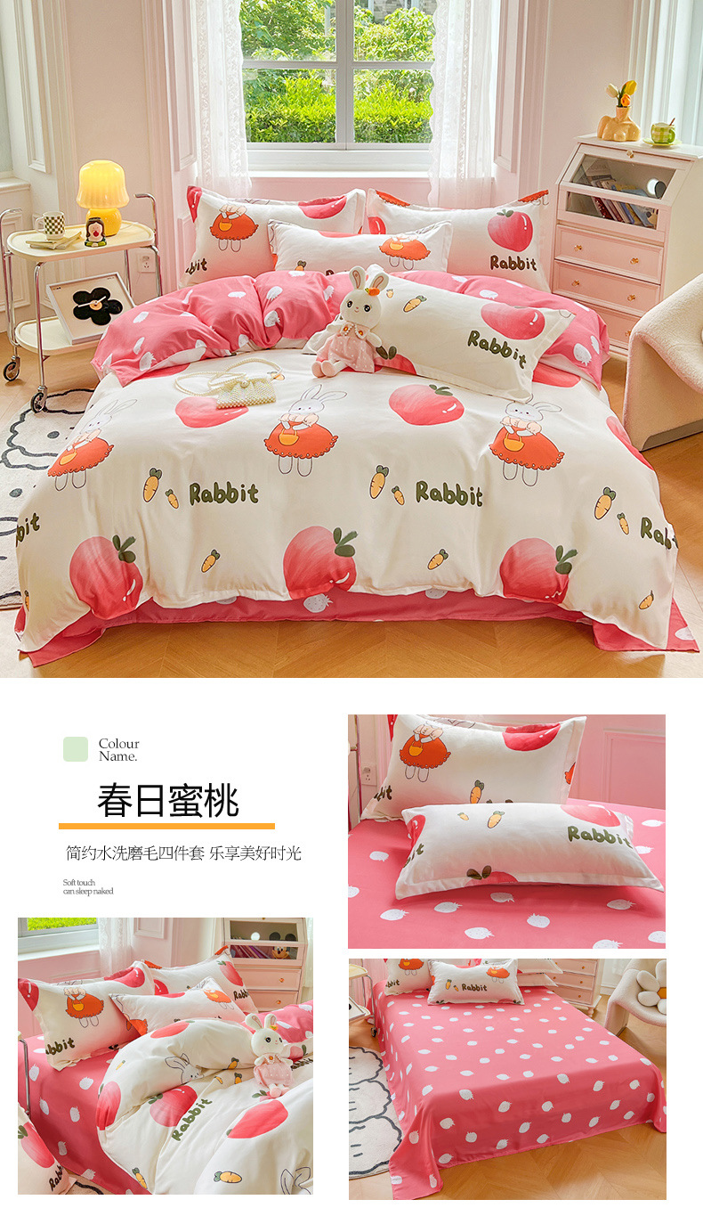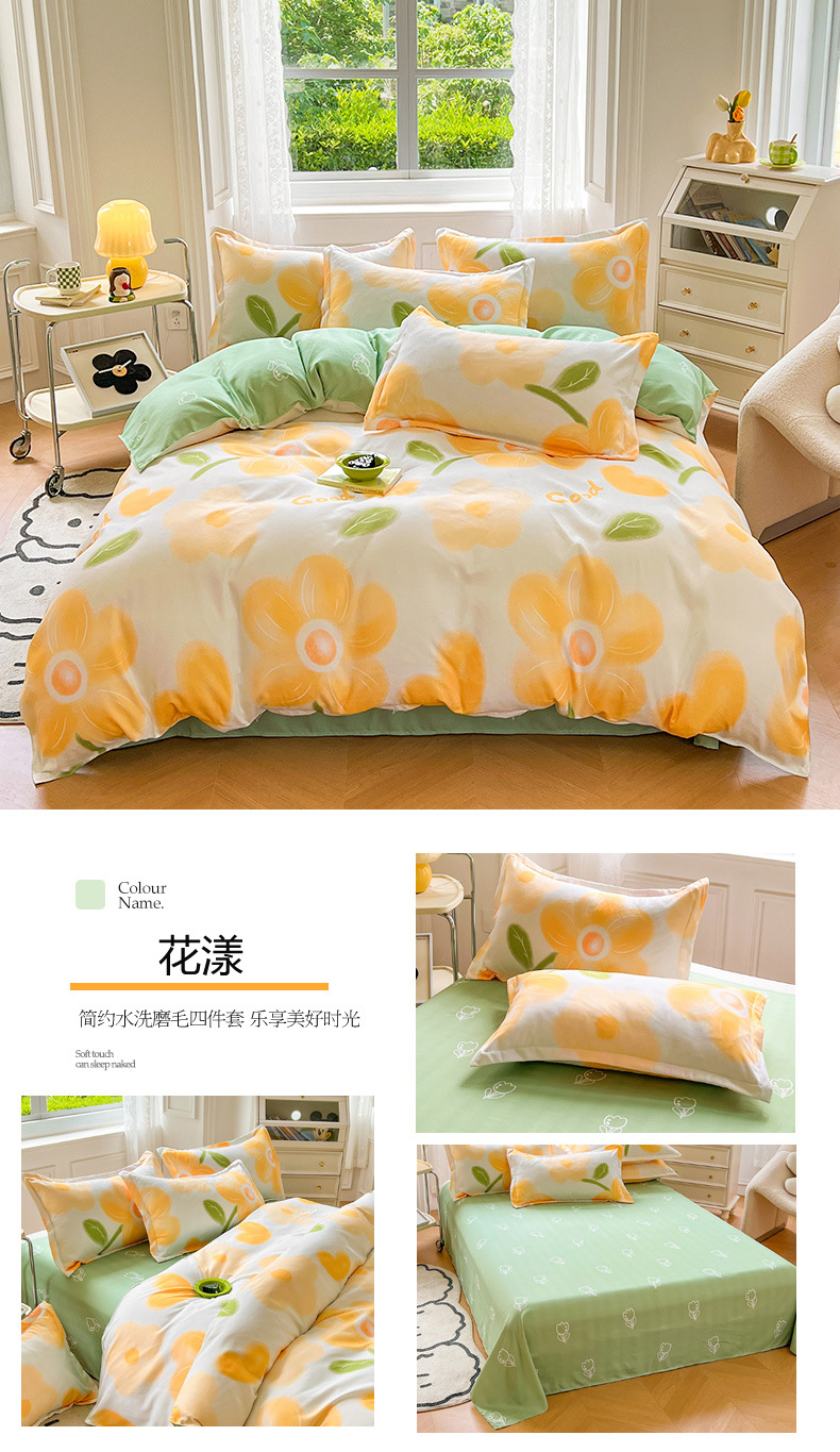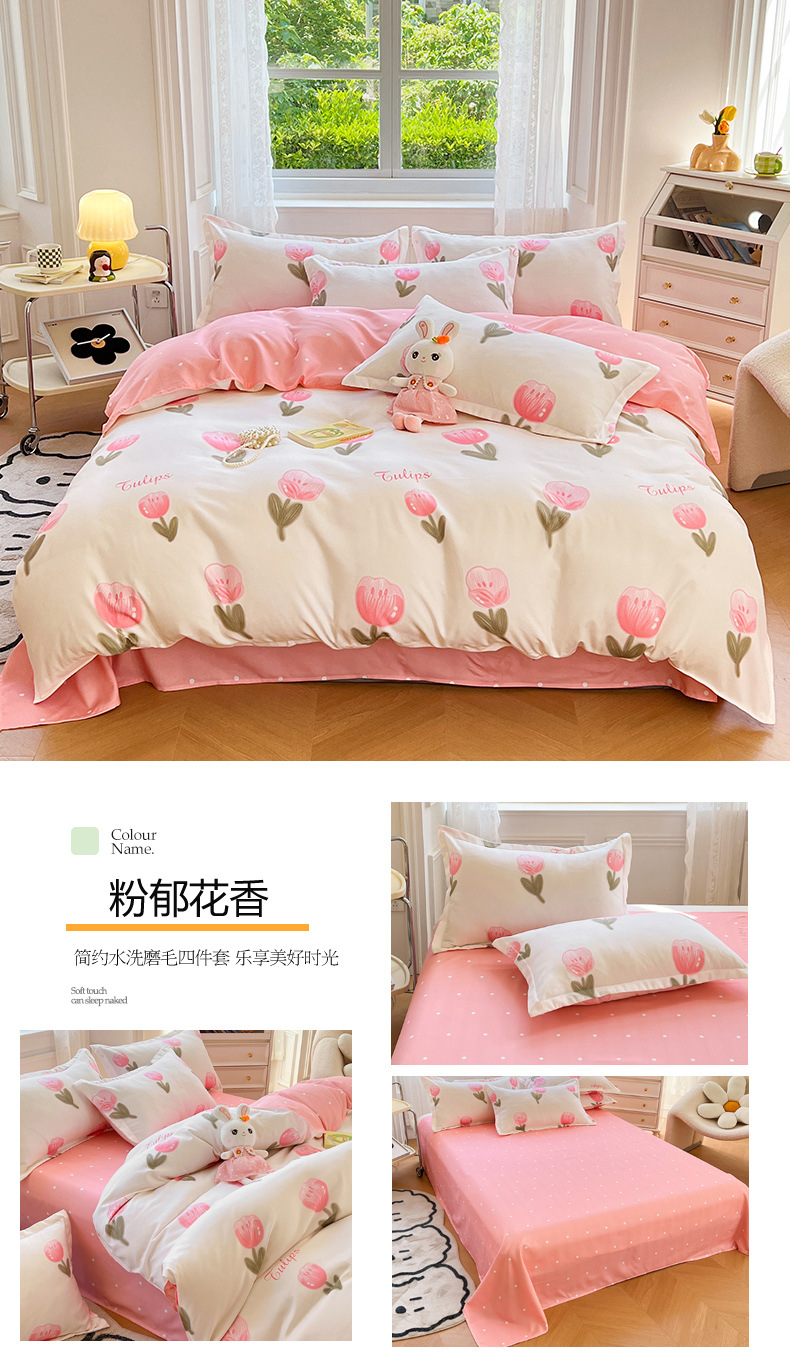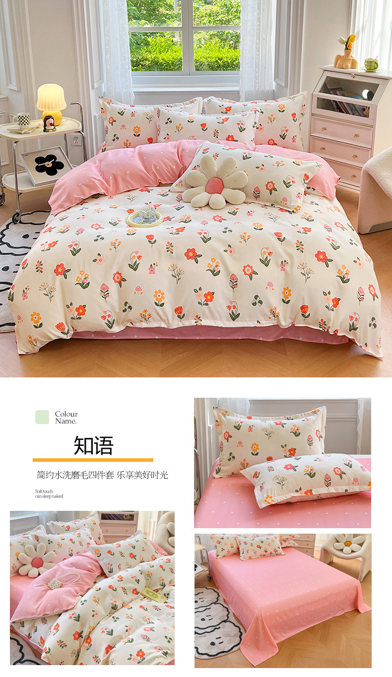 크림 Maillard 컬러 코튼 솔질 4 피스 세트 클래스 간단한 단색 가을과 겨울 따뜻한 두꺼운면 이불 커버스토어 가기