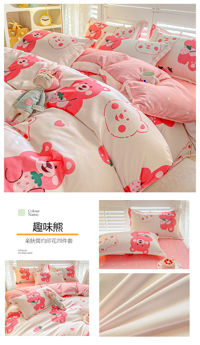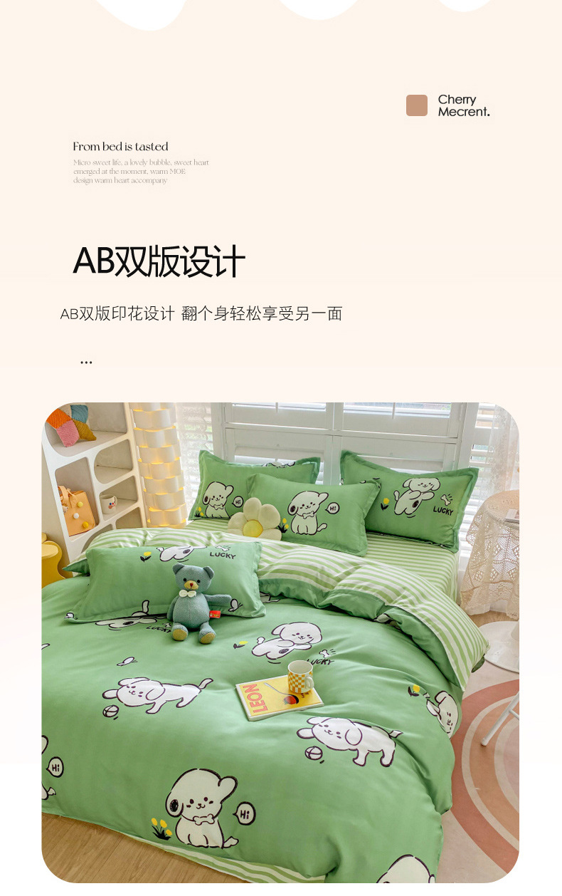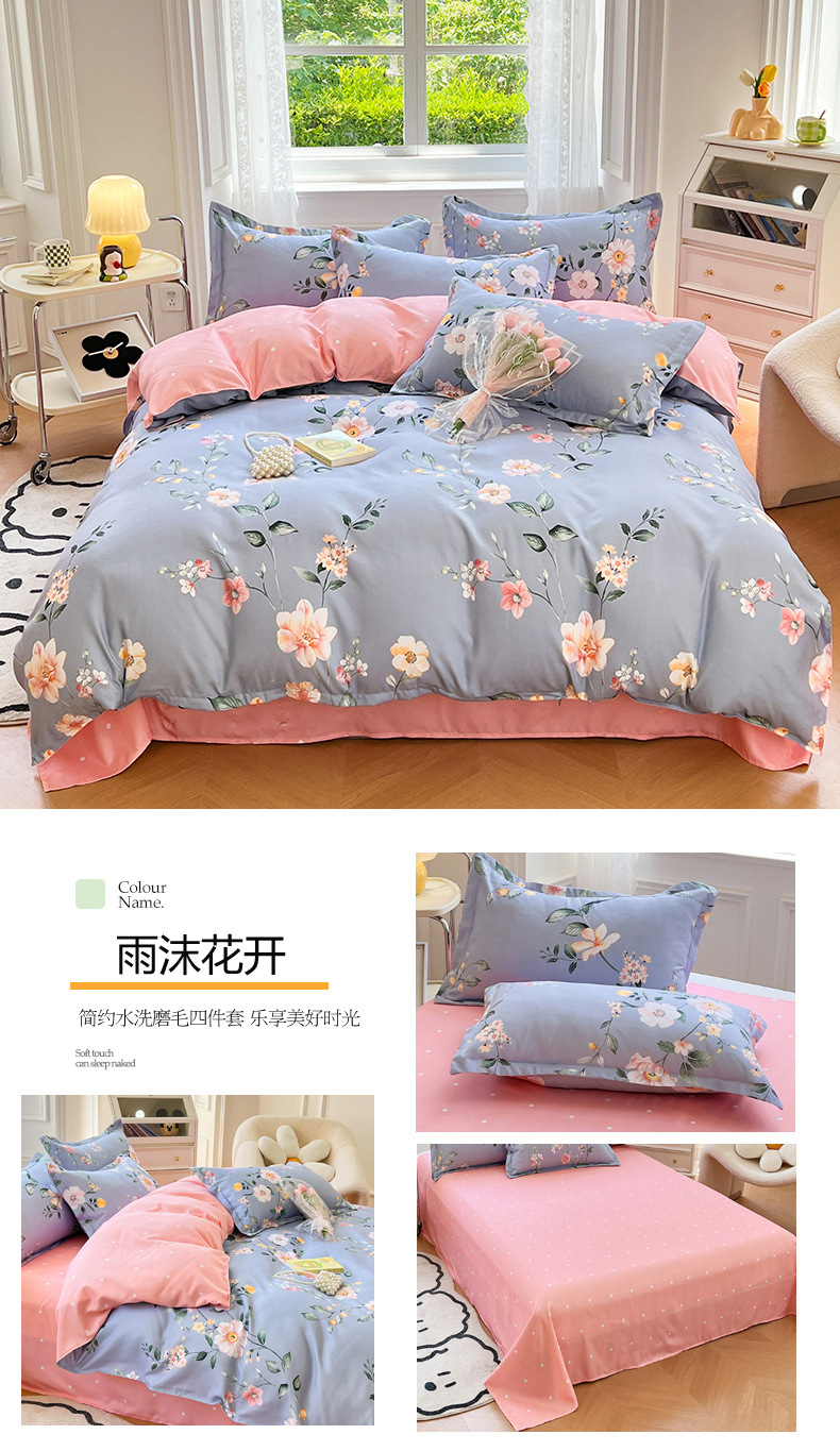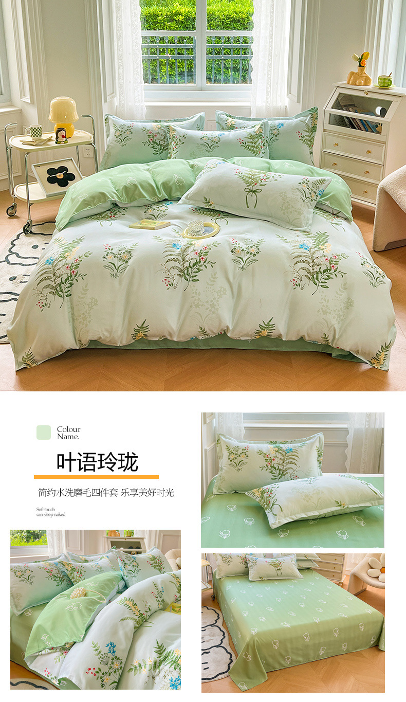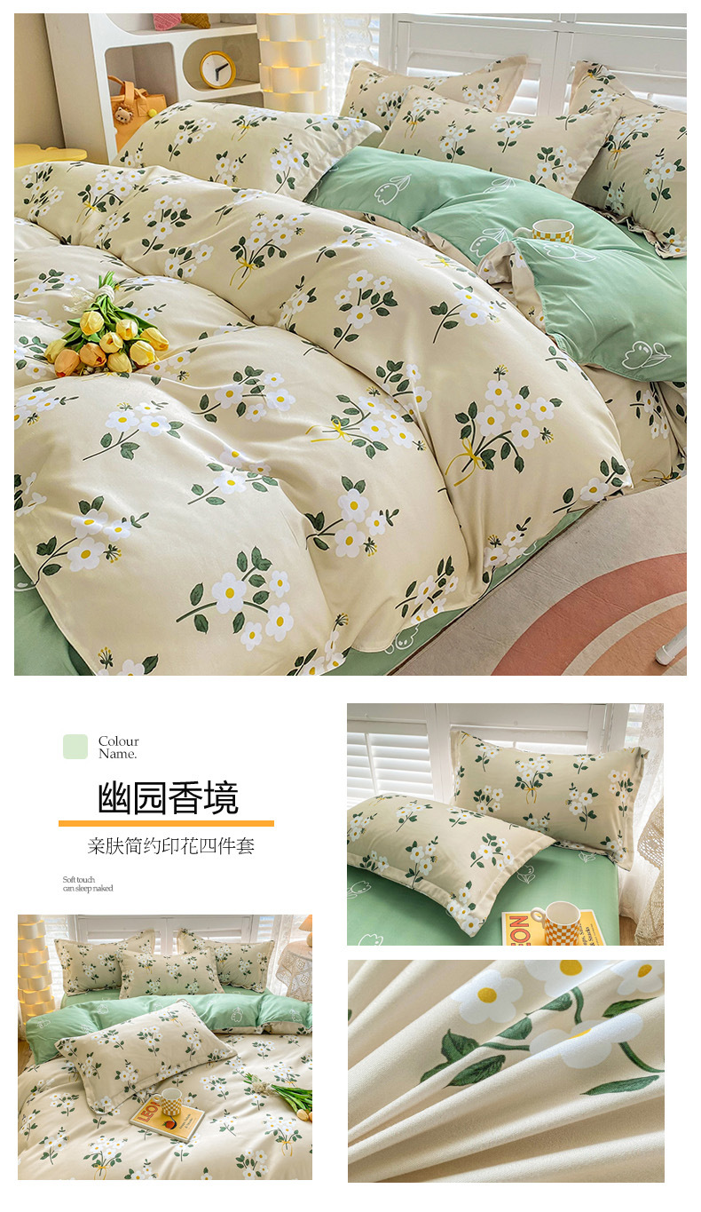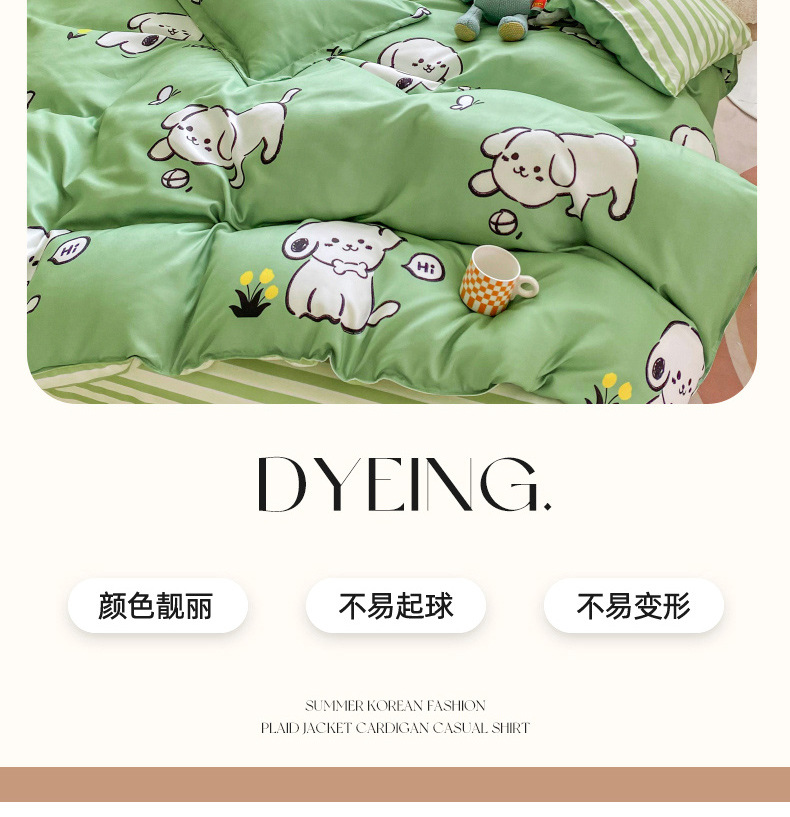 크림 Maillard 컬러 코튼 솔질 4 피스 세트 클래스 간단한 단색 가을과 겨울 따뜻한 두꺼운면 이불 커버스토어 가기