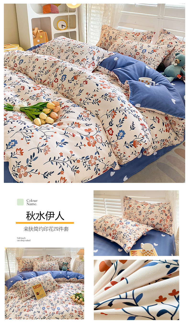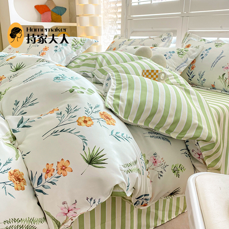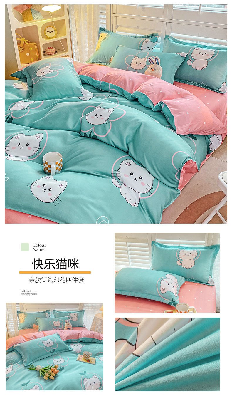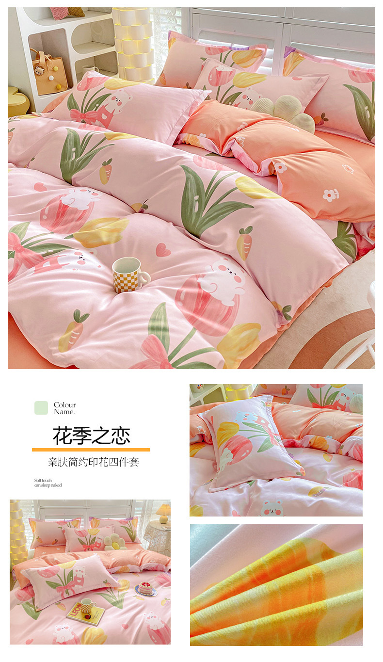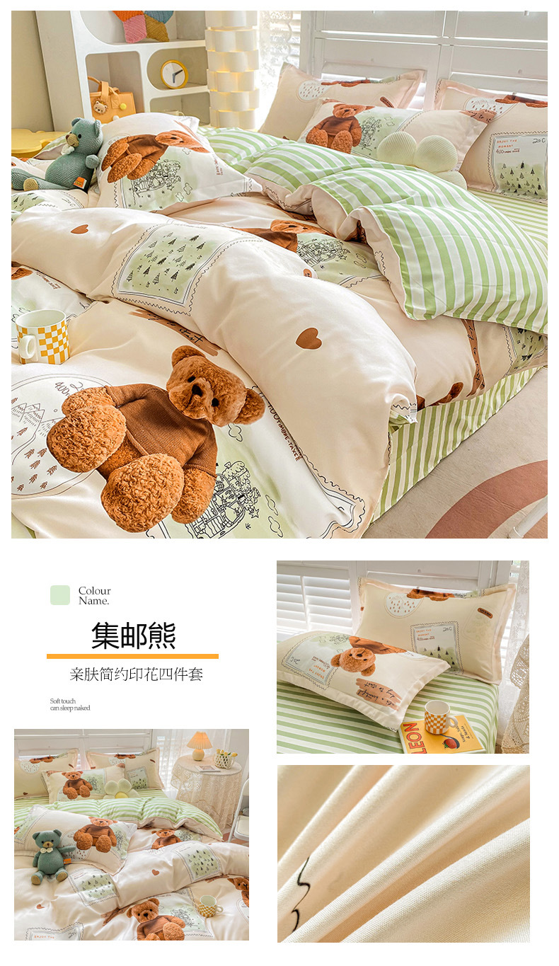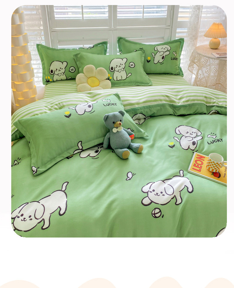 크림 Maillard 컬러 코튼 솔질 4 피스 세트 클래스 간단한 단색 가을과 겨울 따뜻한 두꺼운면 이불 커버스토어 가기