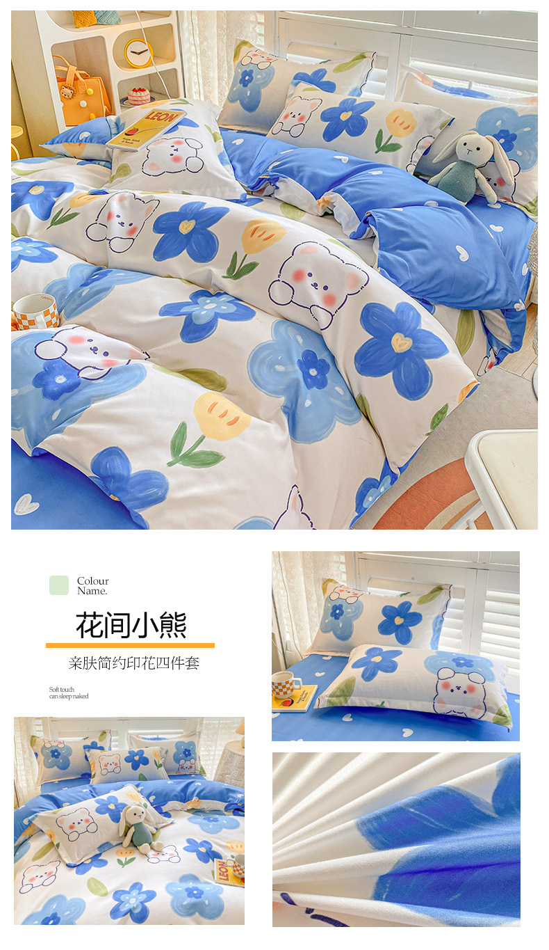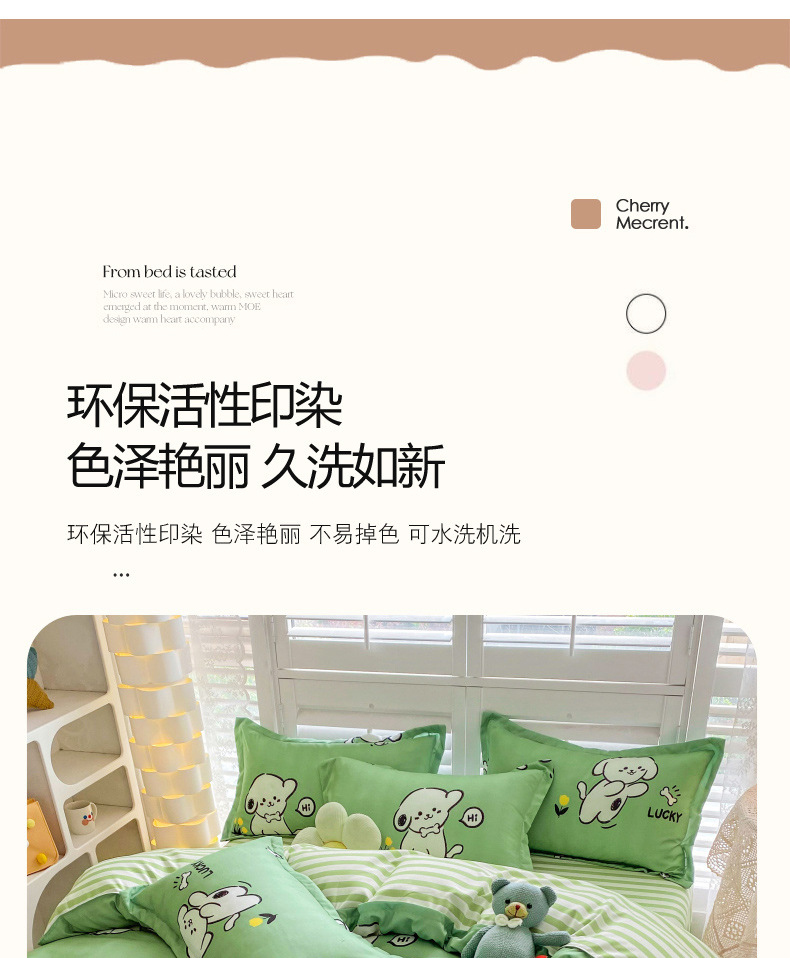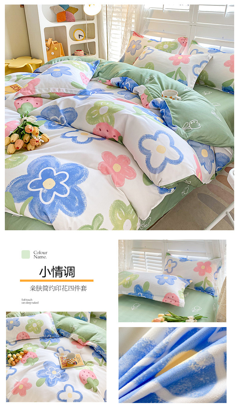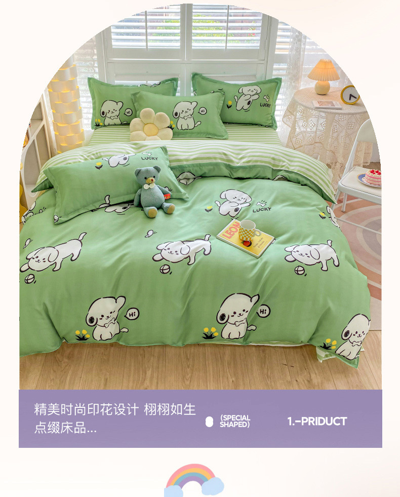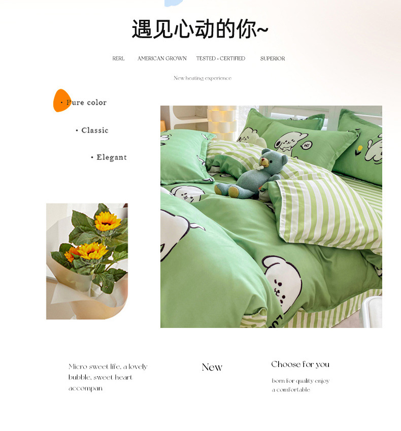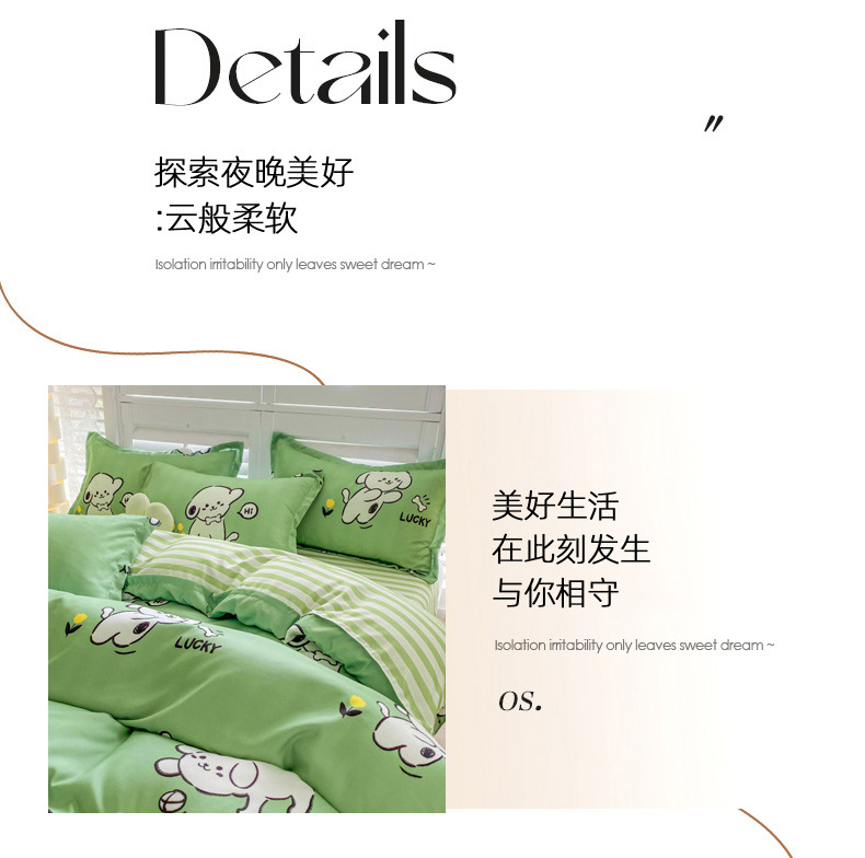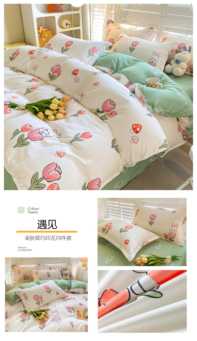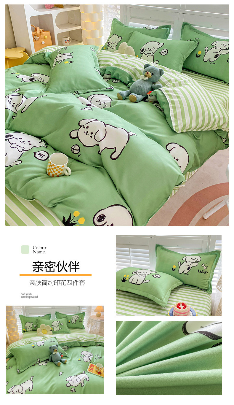 크림 Maillard 컬러 코튼 솔질 4 피스 세트 클래스 간단한 단색 가을과 겨울 따뜻한 두꺼운면 이불 커버스토어 가기