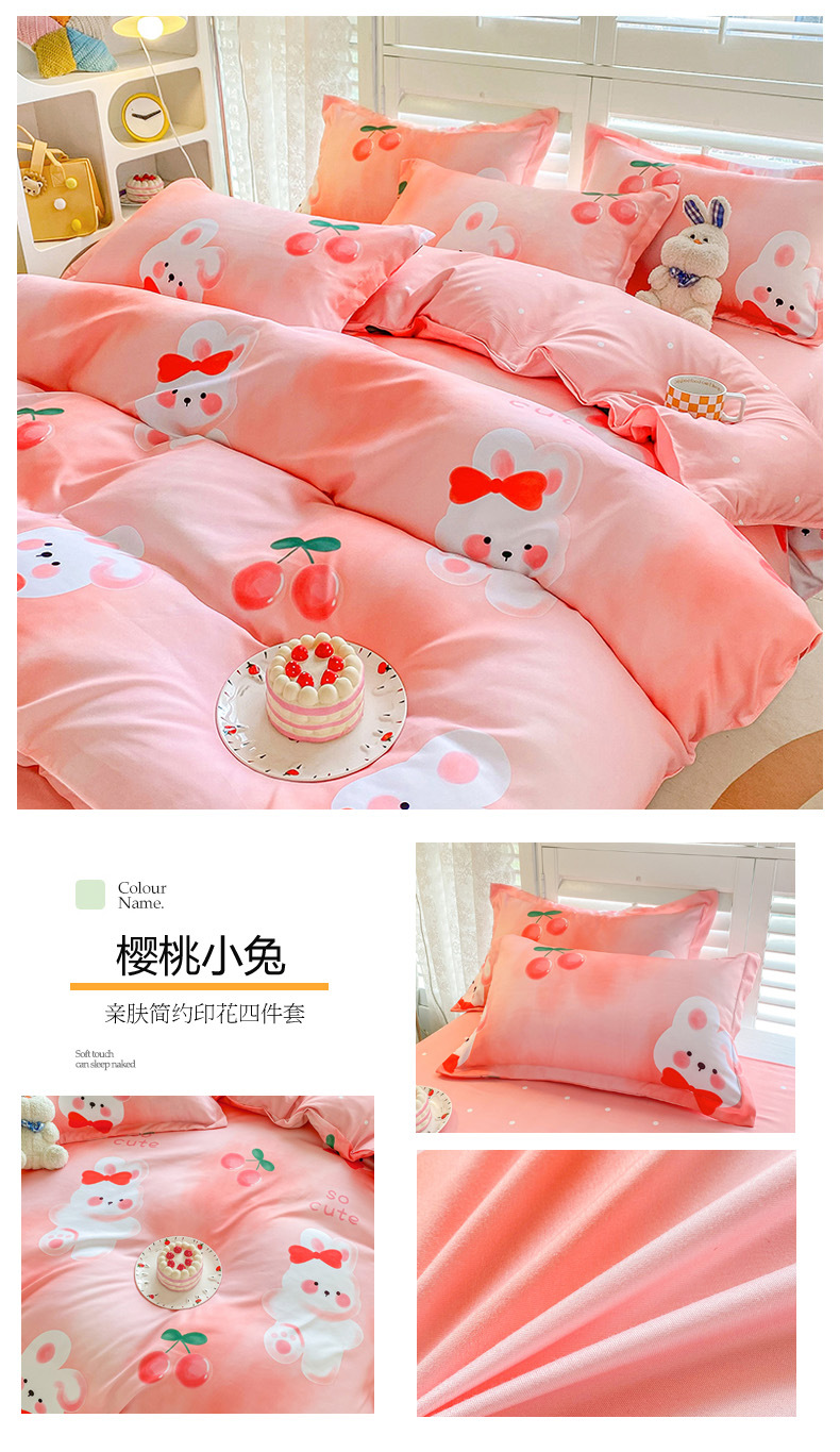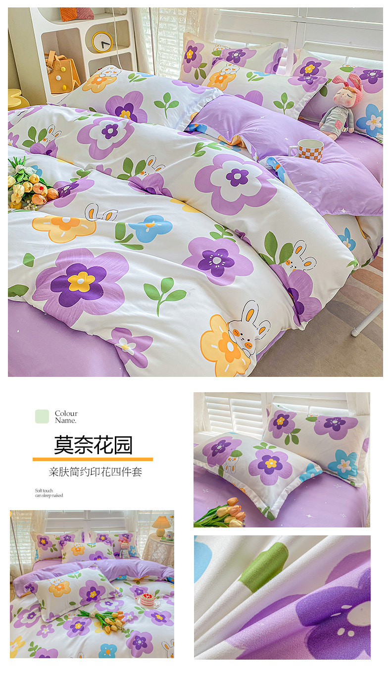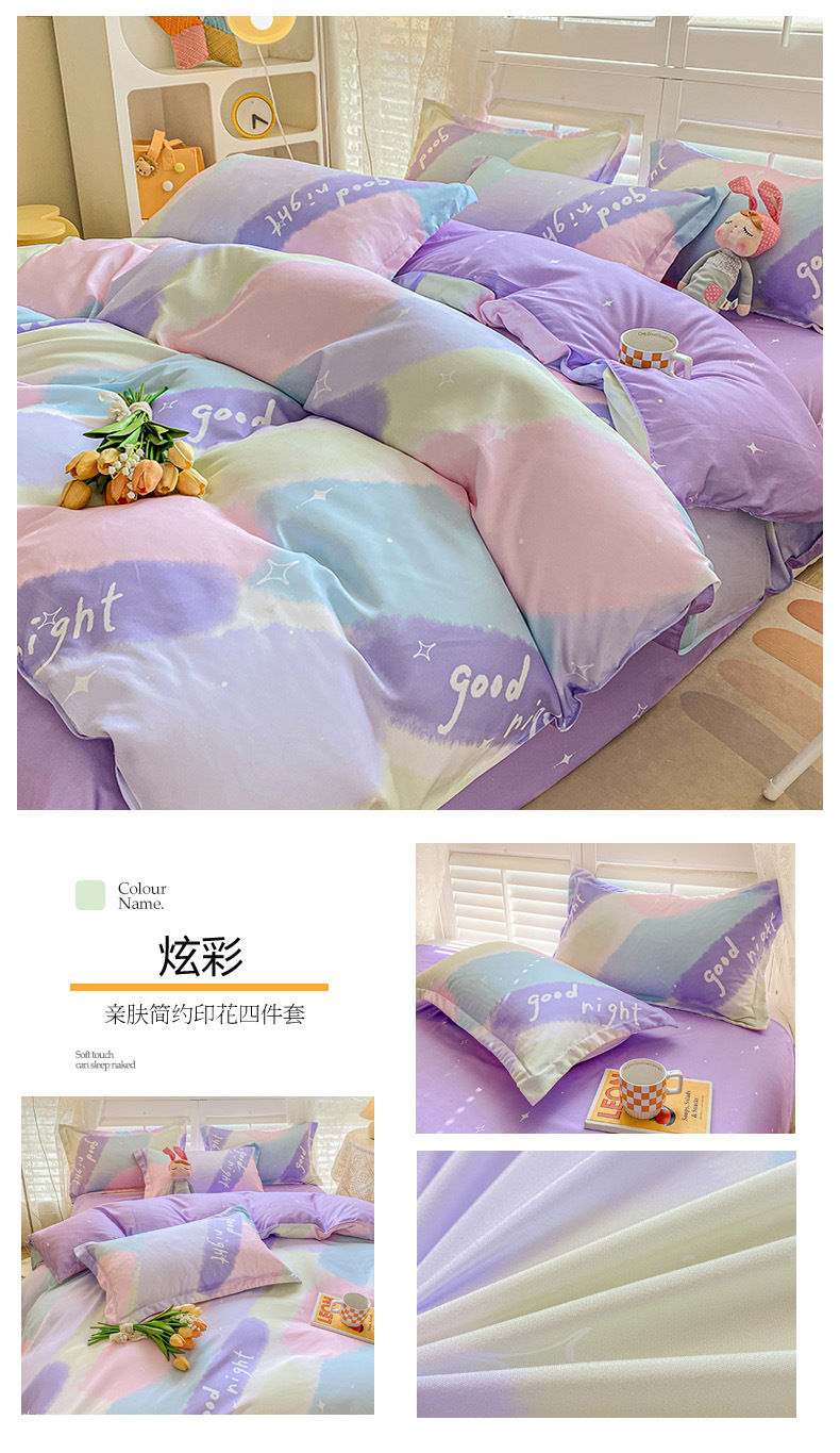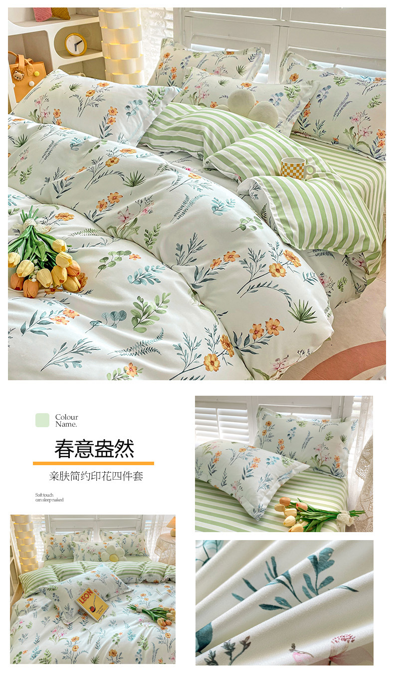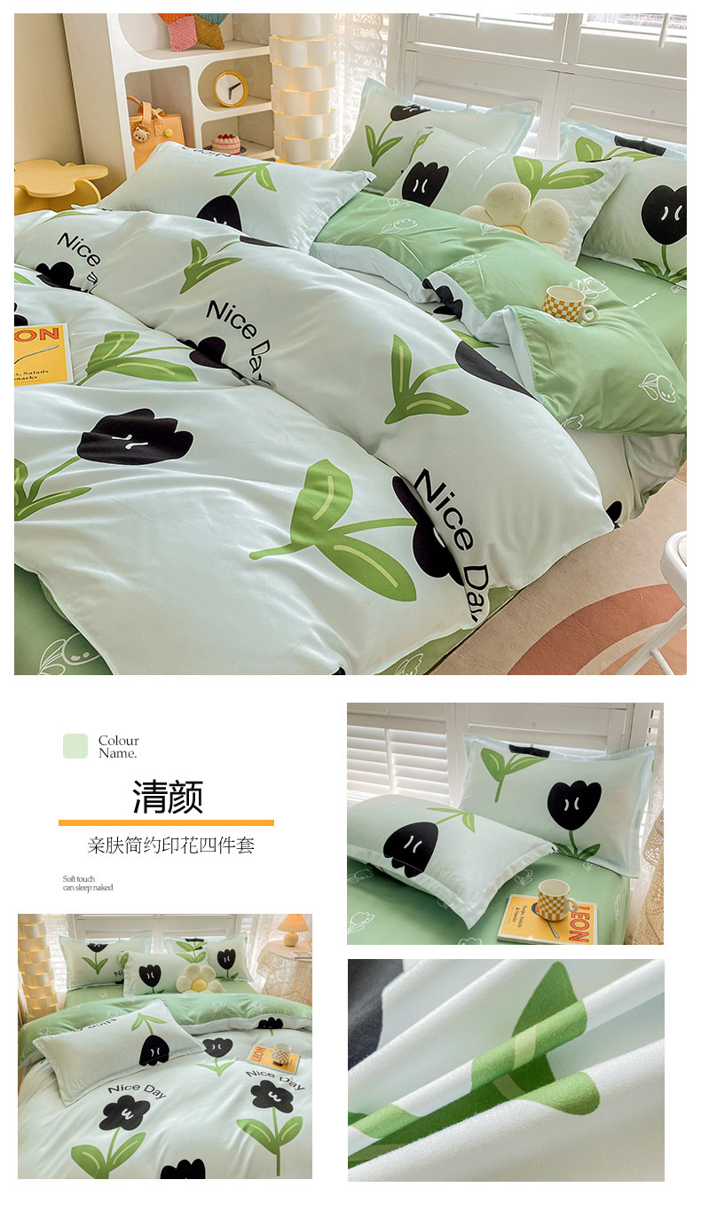 크림 Maillard 컬러 코튼 솔질 4 피스 세트 클래스 간단한 단색 가을과 겨울 따뜻한 두꺼운면 이불 커버스토어 가기