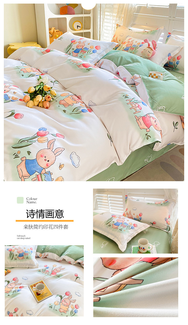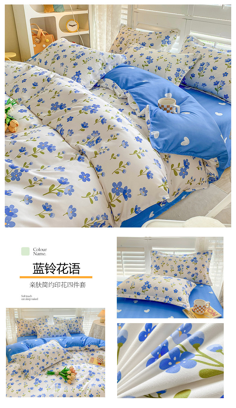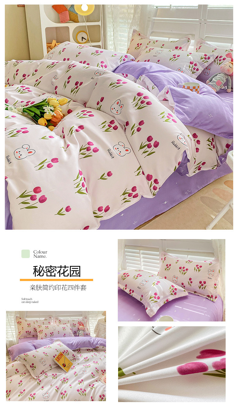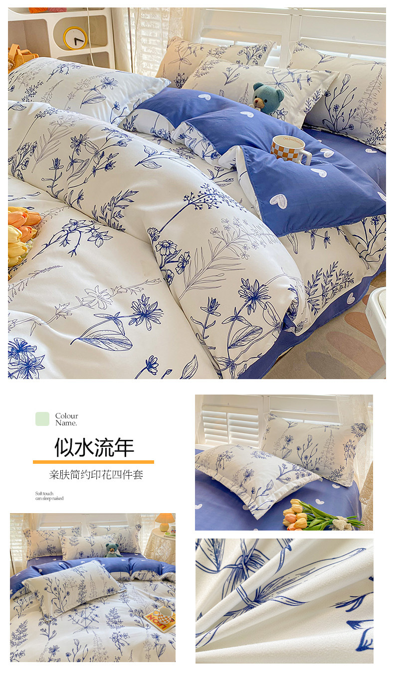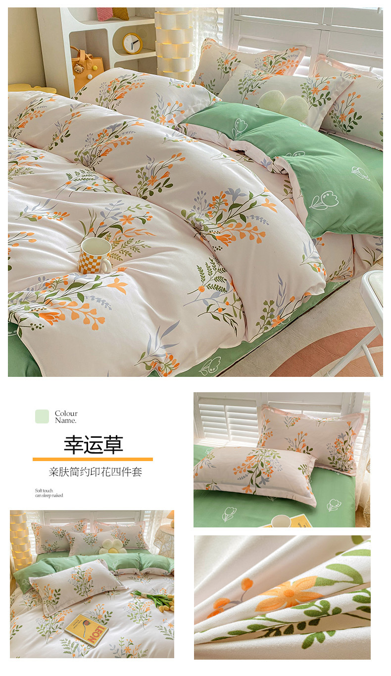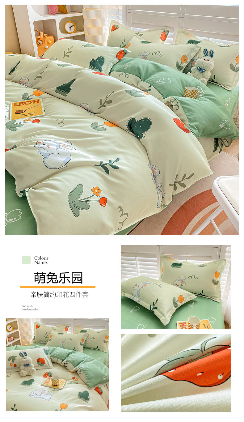 크림 Maillard 컬러 코튼 솔질 4 피스 세트 클래스 간단한 단색 가을과 겨울 따뜻한 두꺼운면 이불 커버스토어 가기