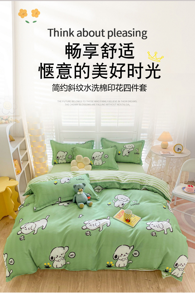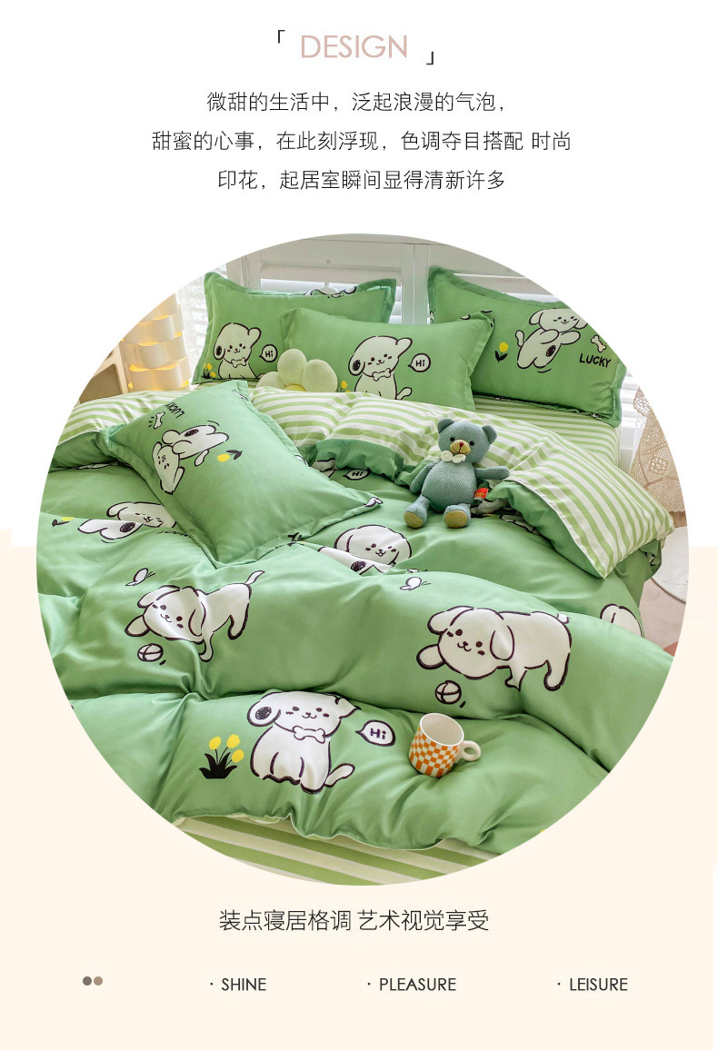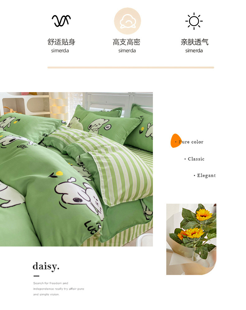 크림 Maillard 컬러 코튼 솔질 4 피스 세트 클래스 간단한 단색 가을과 겨울 따뜻한 두꺼운면 이불 커버