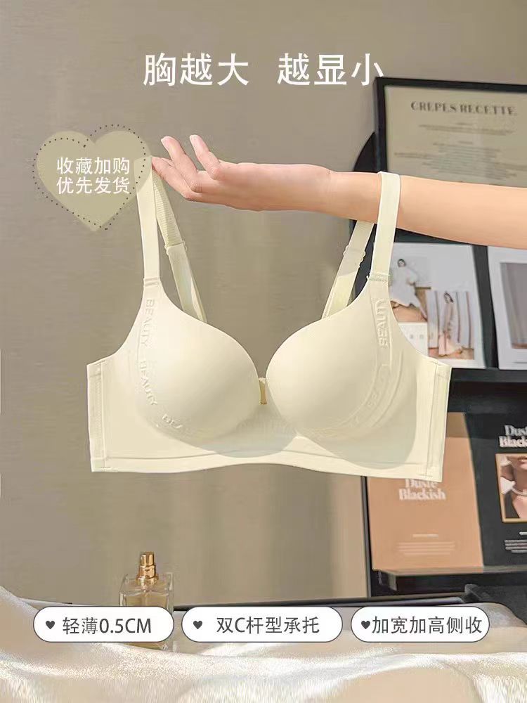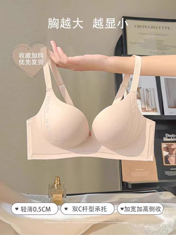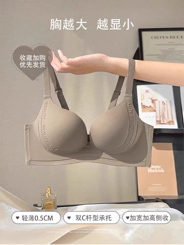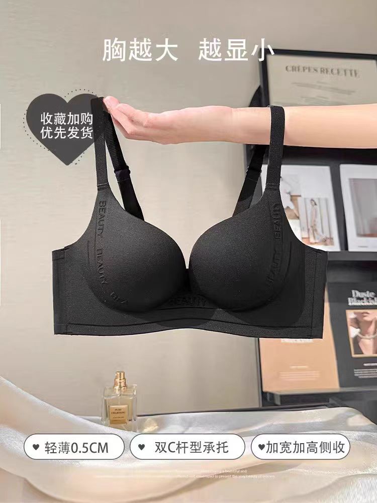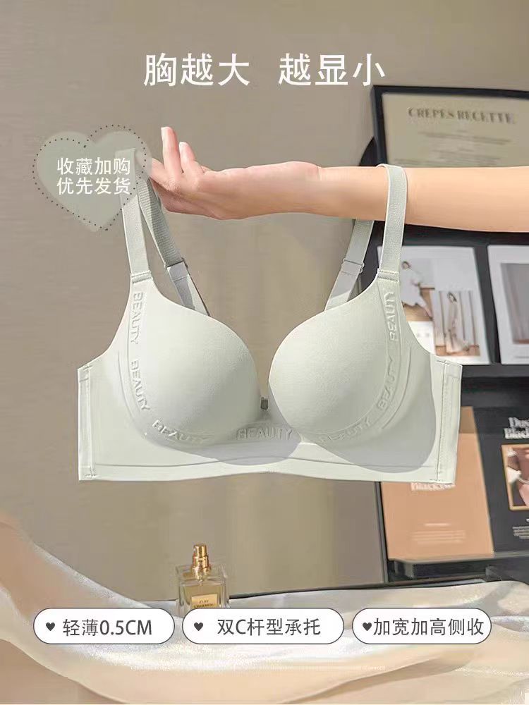 여성용 속옷 큰 가슴 작은 얇은 원활한 무선 푸시 업 유방 컬렉션 안티 처짐 상부지지 브래지어 세트스토어 가기