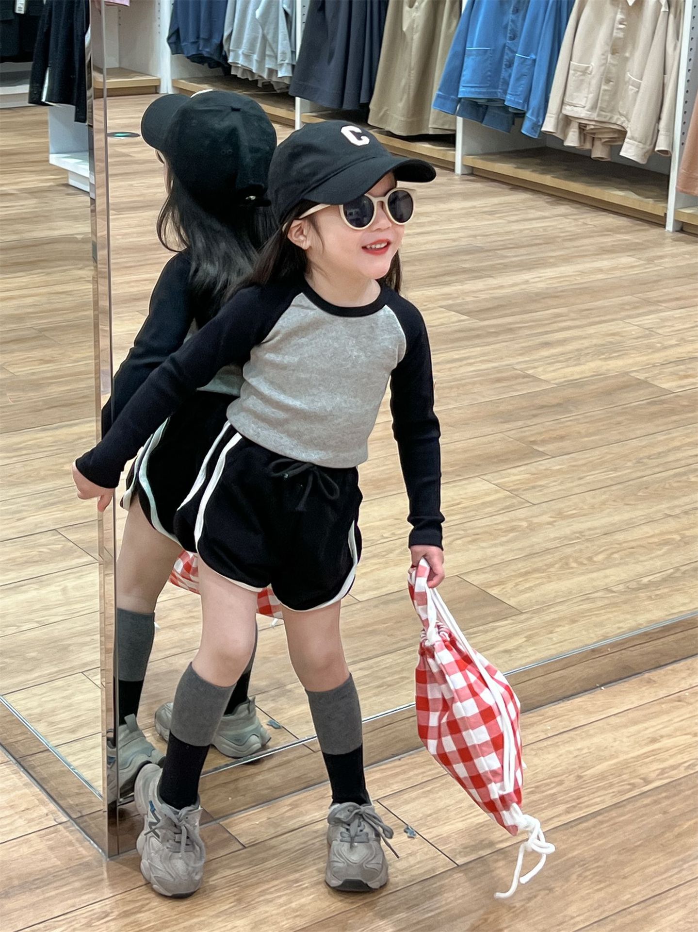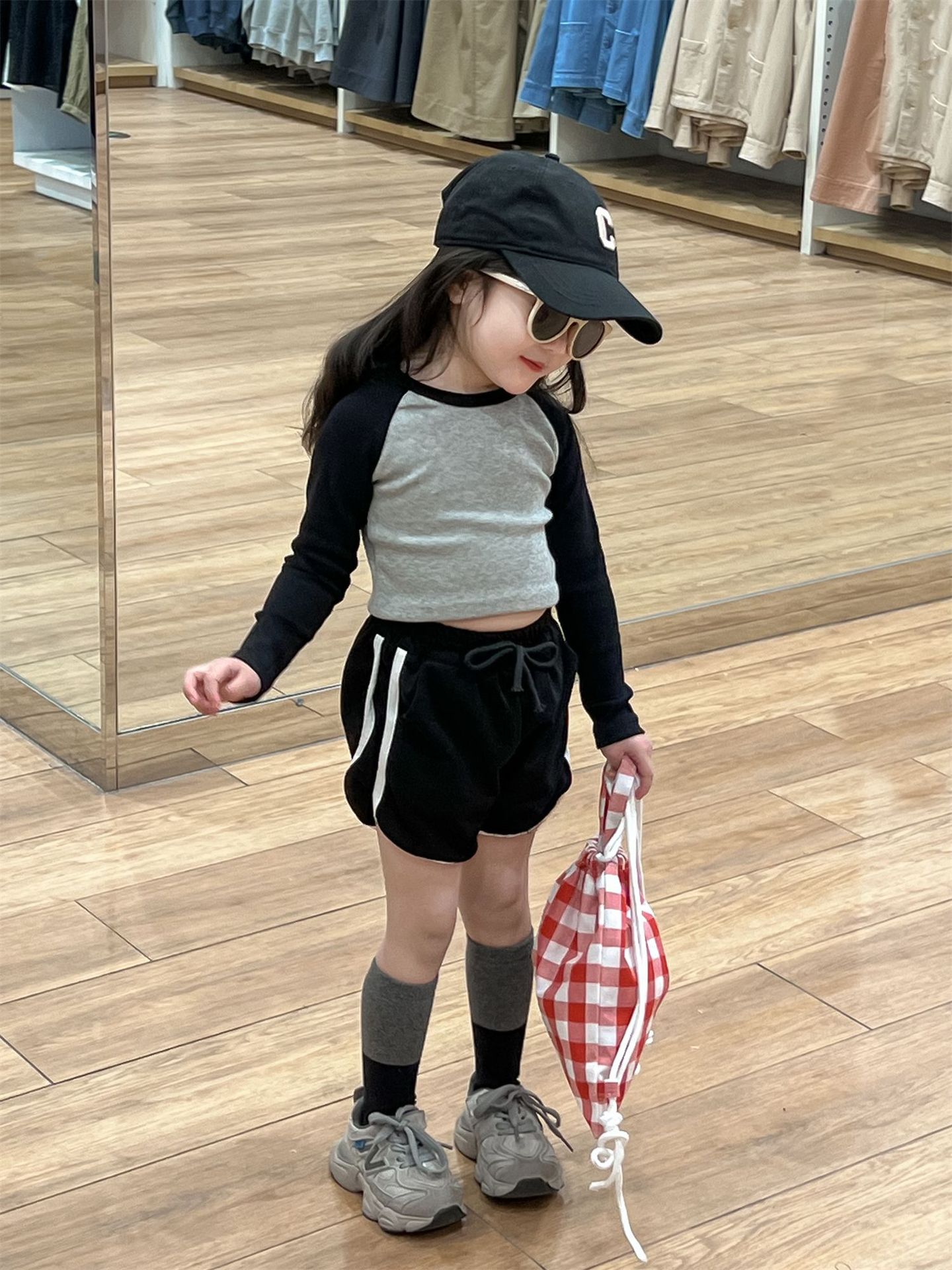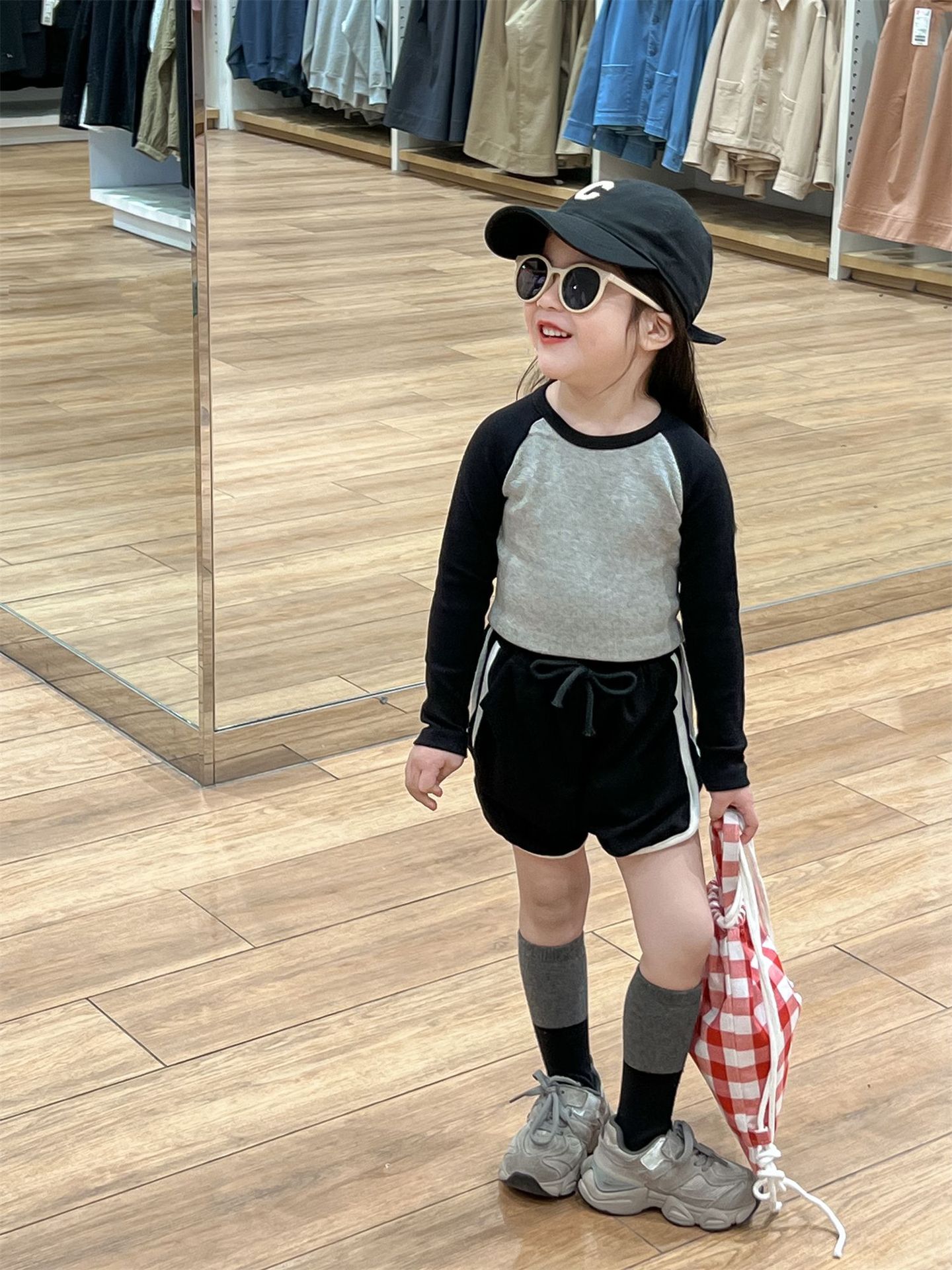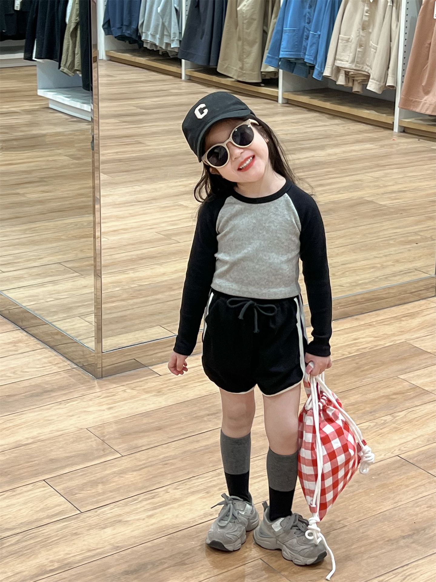 • 라글란 소매 블랙 + 그레이 티셔츠