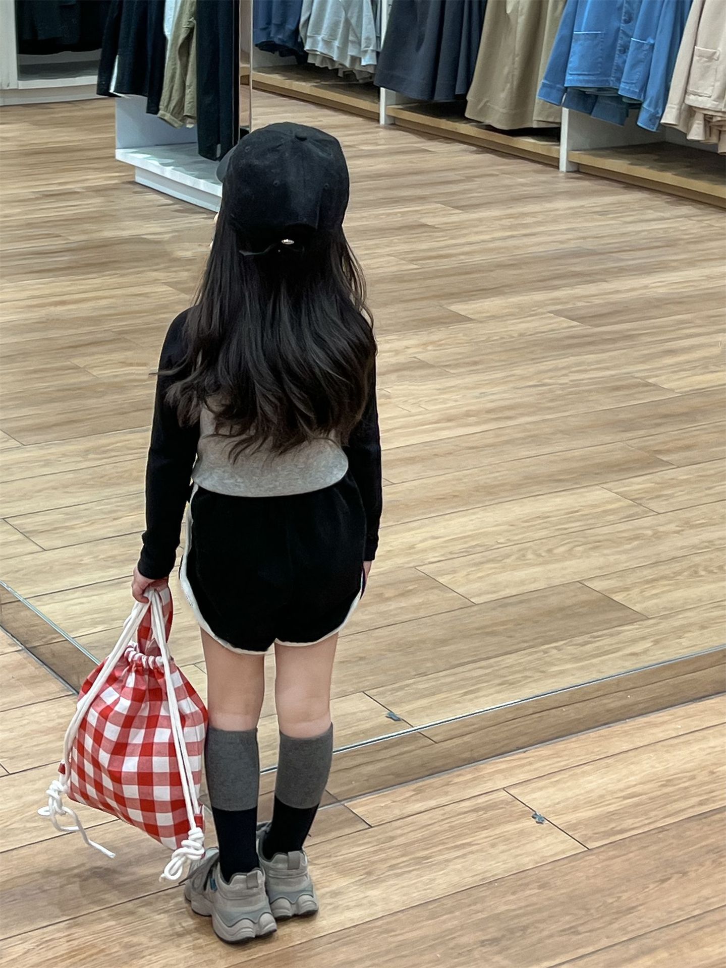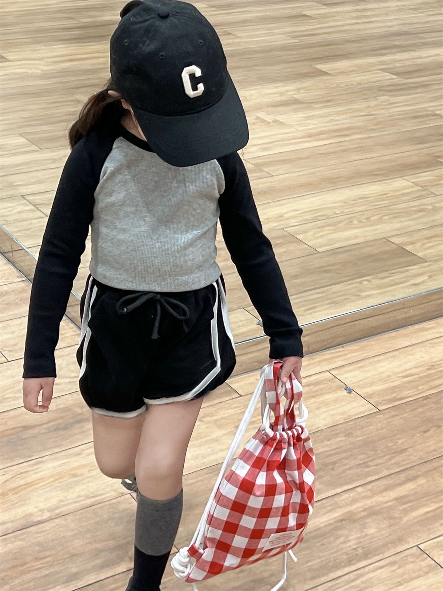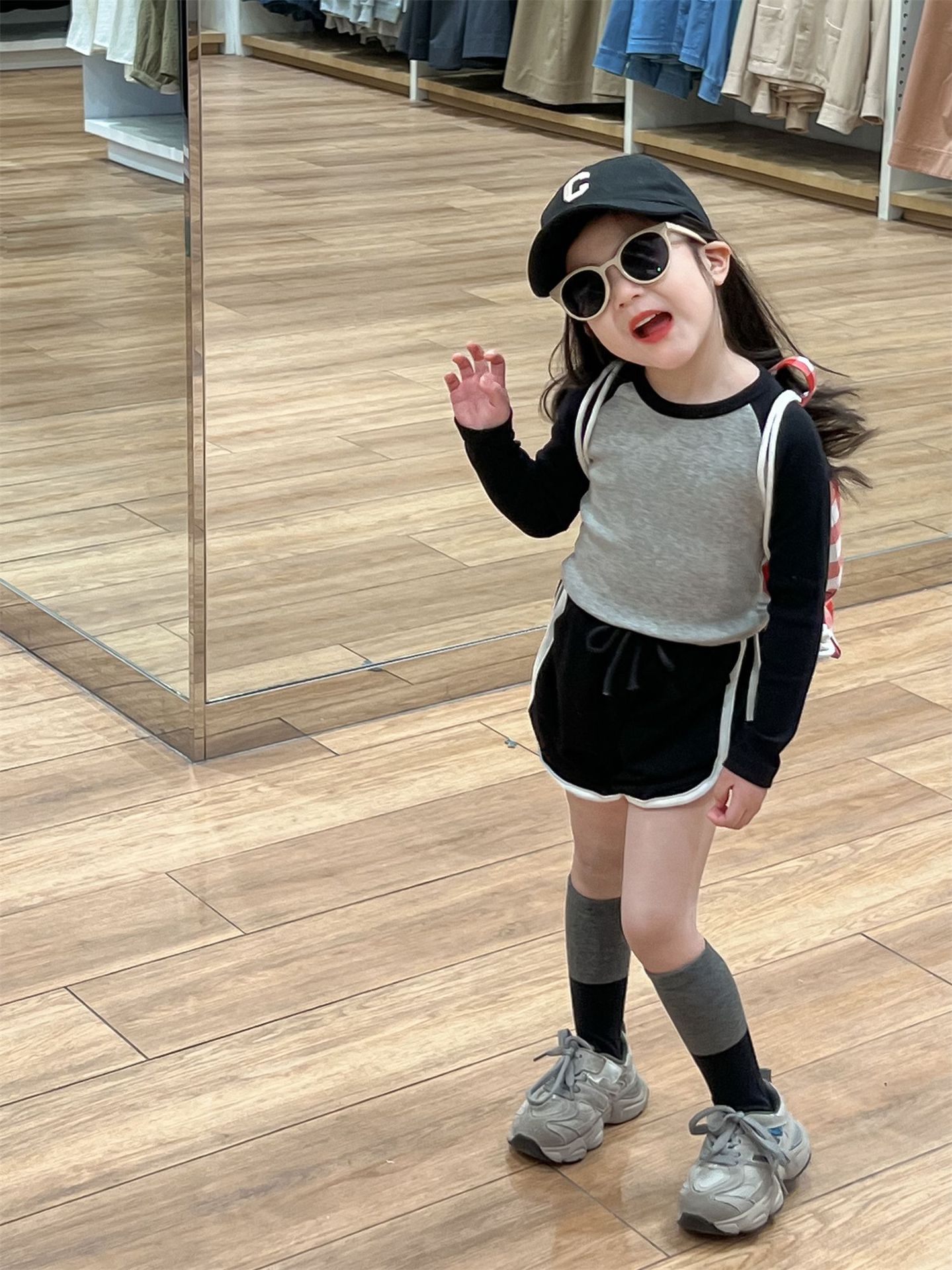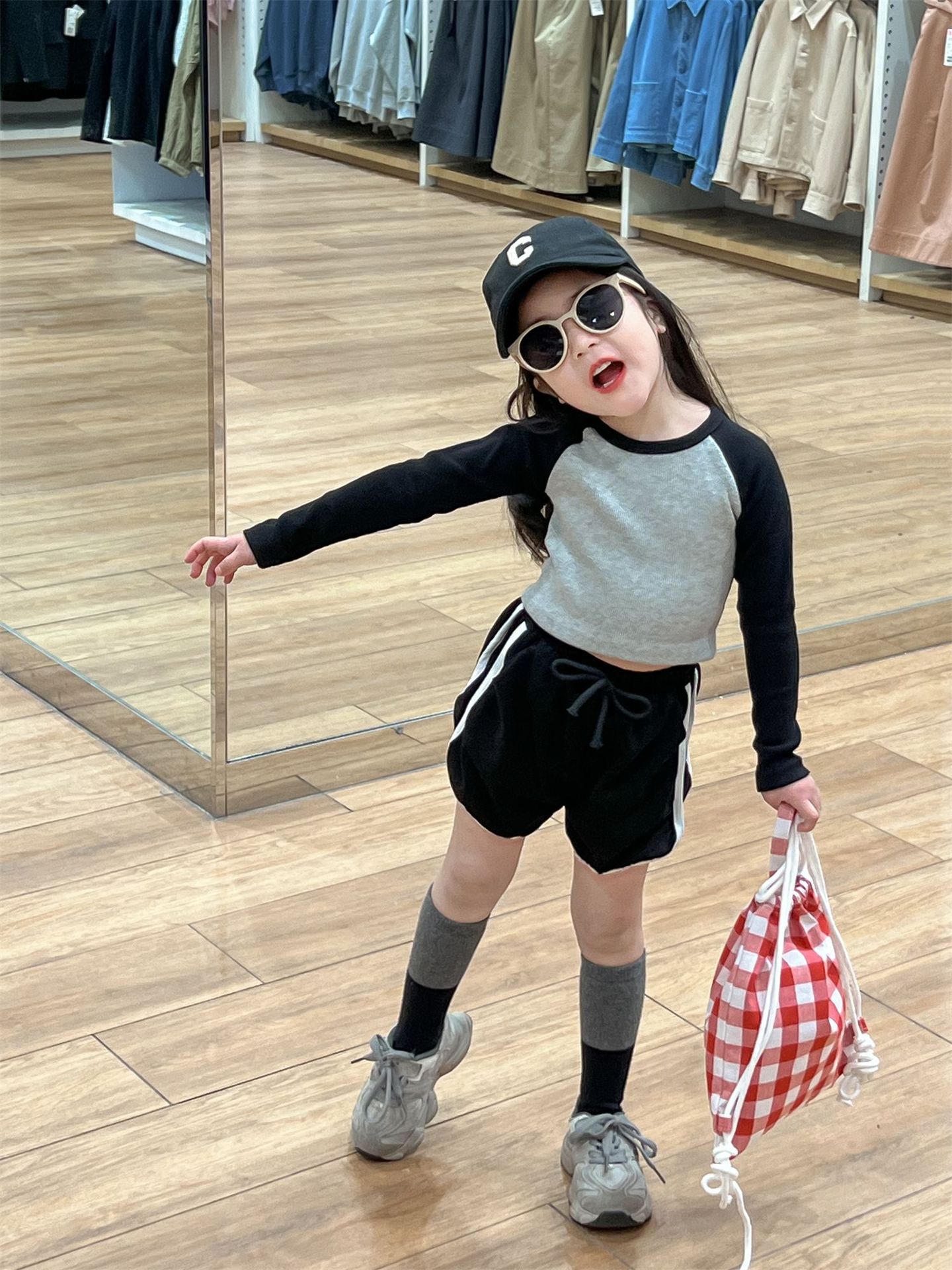 • 라글란 소매 블랙 + 그레이 티셔츠
