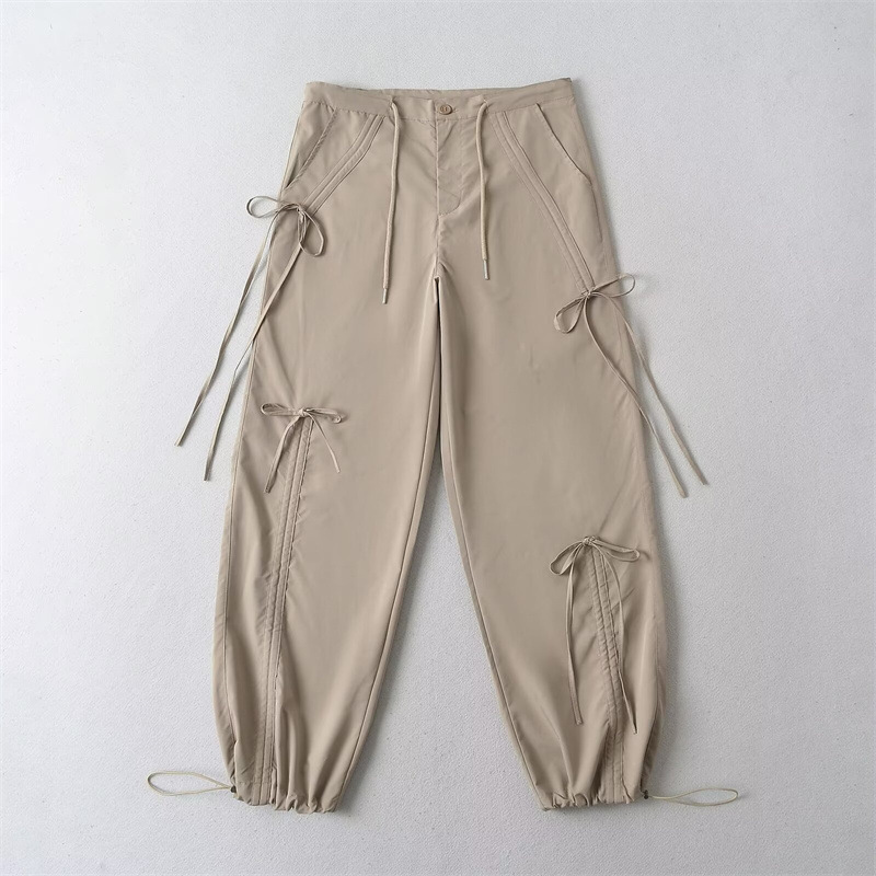 미국 힙합 디자인 느슨한 활 바지 여성의 뜨거운 소녀 스트레이트 충전 바지 캐주얼 우산 바지스토어 가기