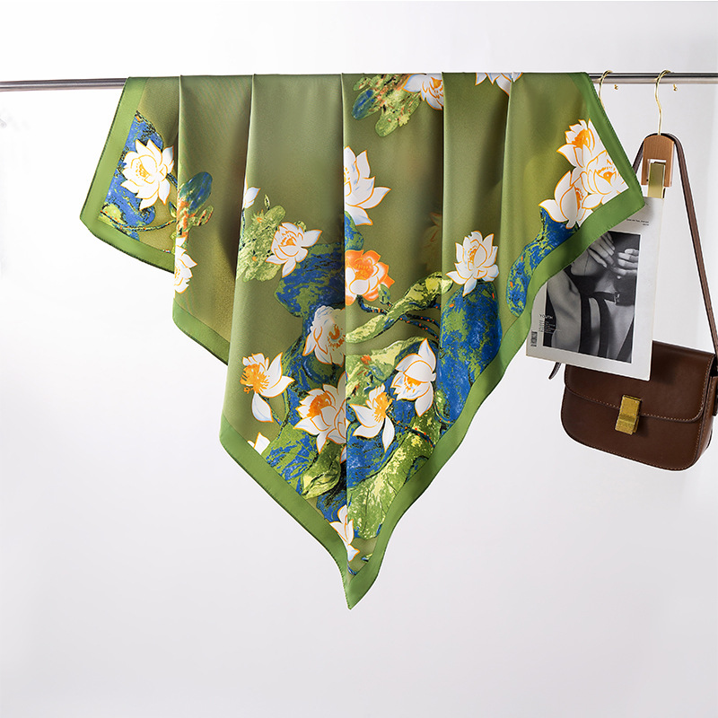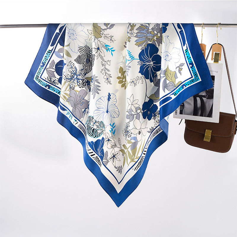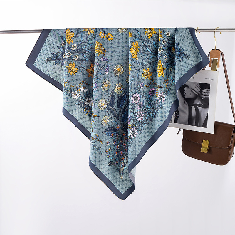 2024 새로운 실크 스카프 여성의 꽃 기하학적 봄과 가을 고급 매칭 목도리 90 스퀘어 스카프 패션 어머니 스카프스토어 가기