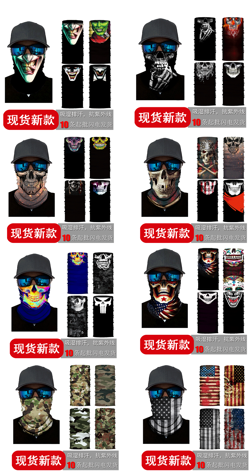 해골 시리즈 매직 스카프 원활한 스카프 야외 장비 마스크 차양 후드 아마존 두건