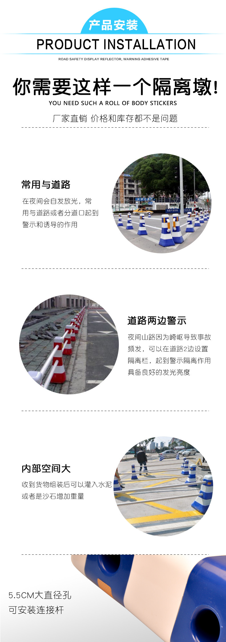 플라스틱 빨간색과 흰색 고립 부두 파란색과 흰색 격리 경고 부두 도로 장벽 울타리 충돌 방지 버킷 부두 전환 버킷 물 말스토어 가기