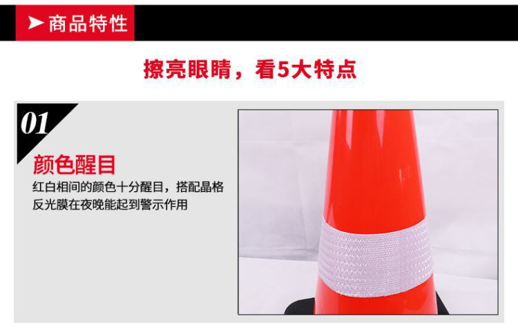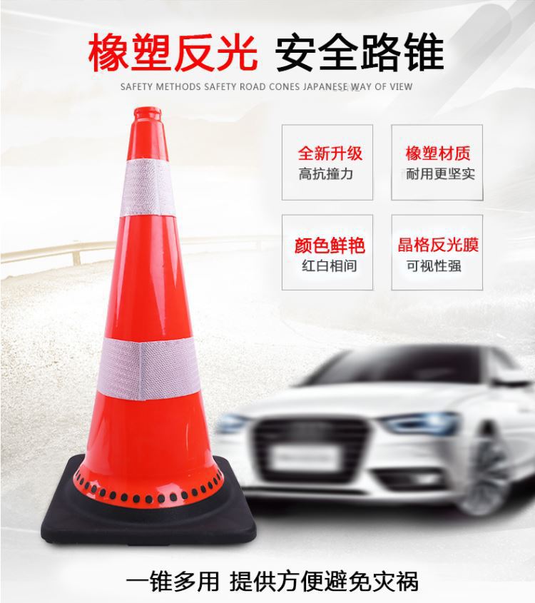 75CM PVC 반사 도로 콘 콘 아이스크림 튜브 압력 방지 도로 콘 고무 플라스틱 고무 베이스 PVC 장벽 경고 콘