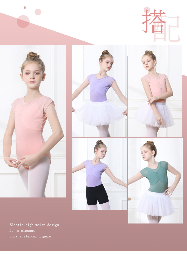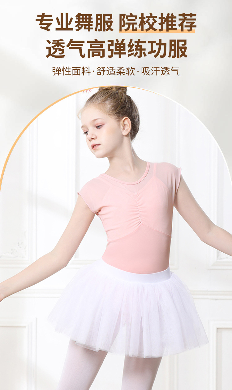 어린이 댄스 복 소녀 연습복 어린이 발레 스커트 짧은 소매 중국 댄스 아트 시험 춤 옷 체조 옷스토어 가기