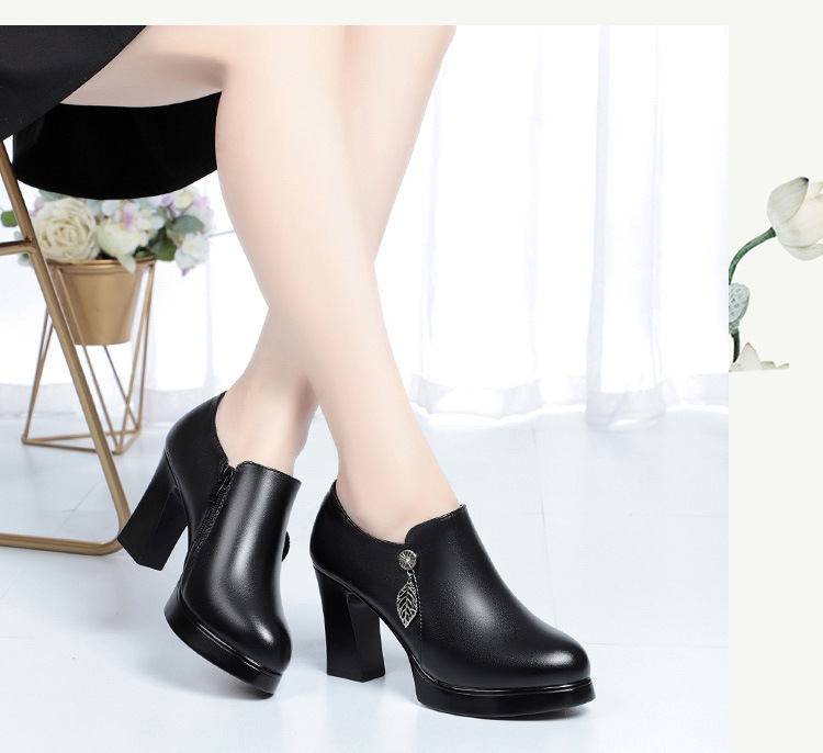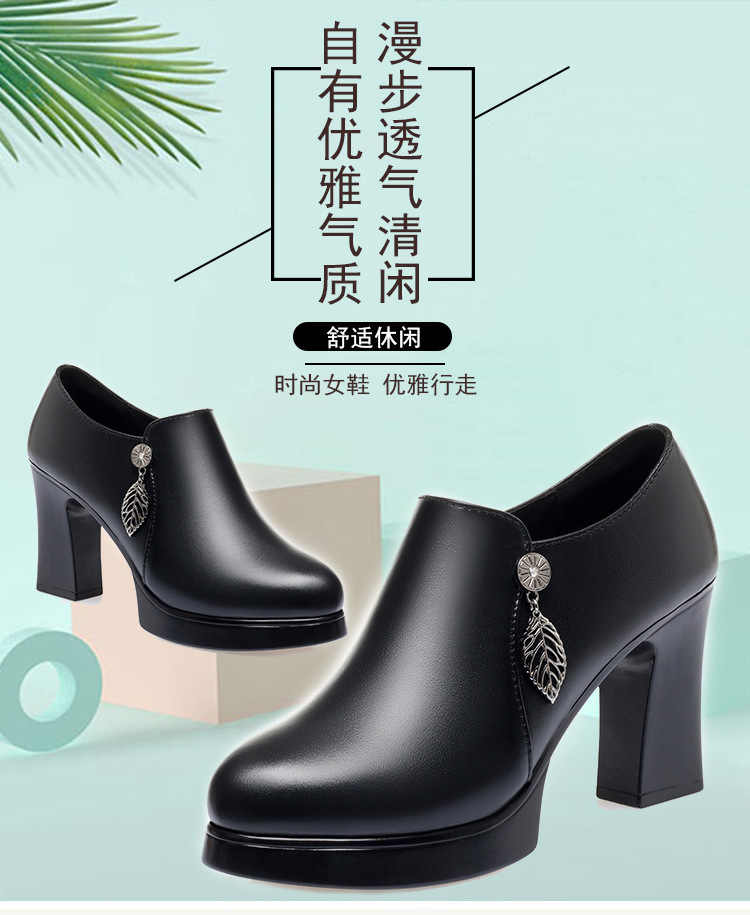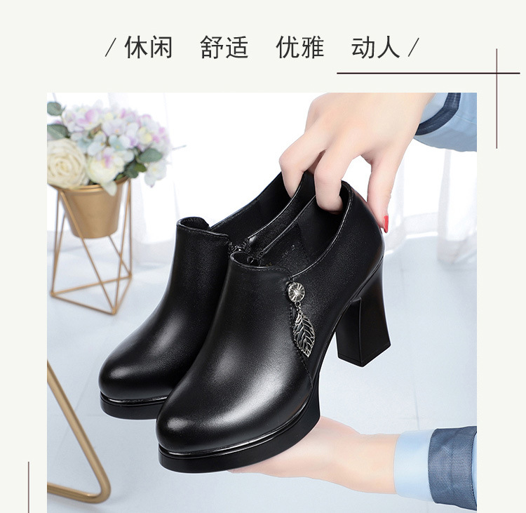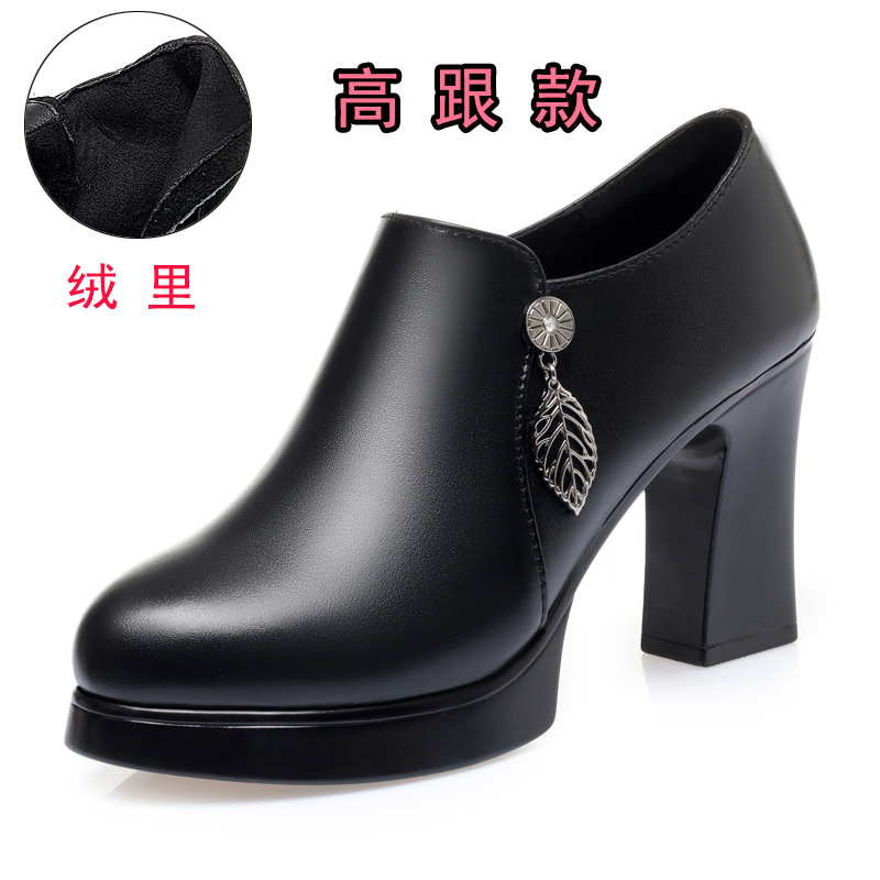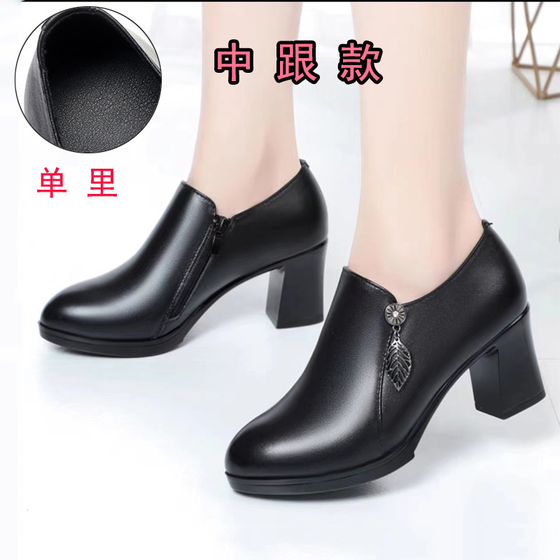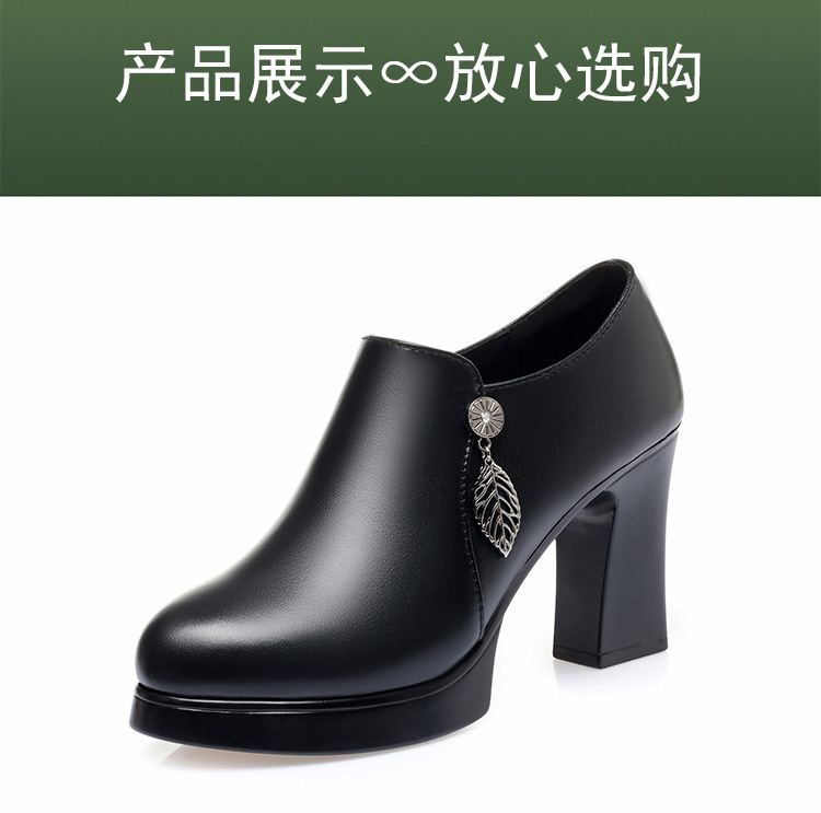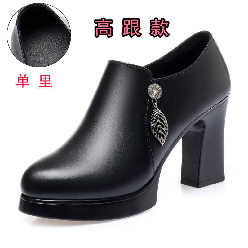 청삼 캣워크 신발 여성 하이힐은 피곤하지 않은 발 두꺼운 바닥 중년 여성 가죽 신발 어머니 깊은 입 싱글 레이어 신발 정품 가죽 여성 신발스토어 가기