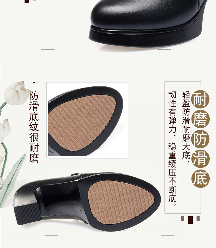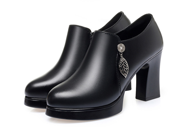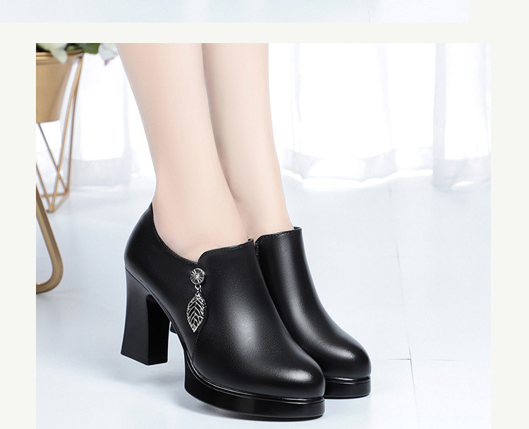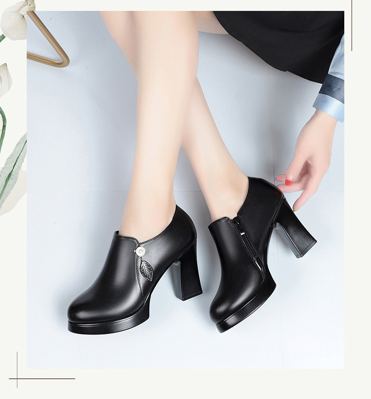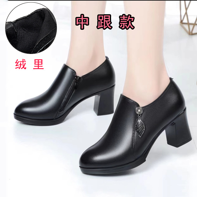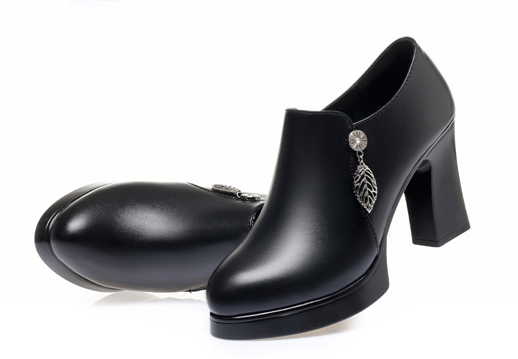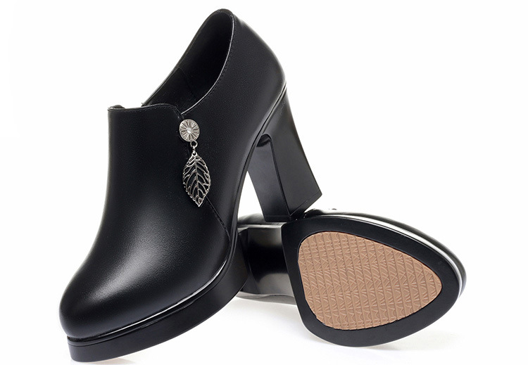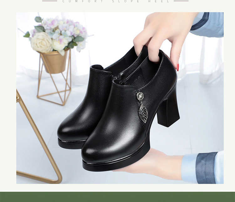 청삼 캣워크 신발 여성 하이힐은 피곤하지 않은 발 두꺼운 바닥 중년 여성 가죽 신발 어머니 깊은 입 싱글 레이어 신발 정품 가죽 여성 신발스토어 가기